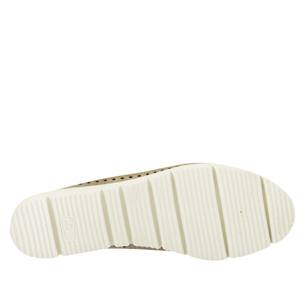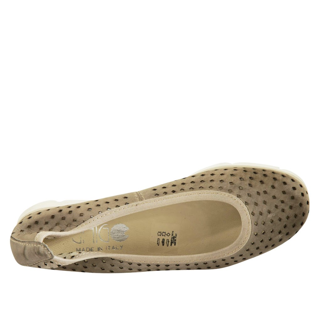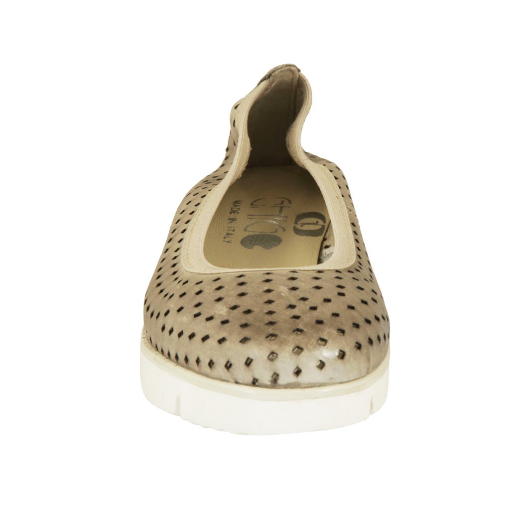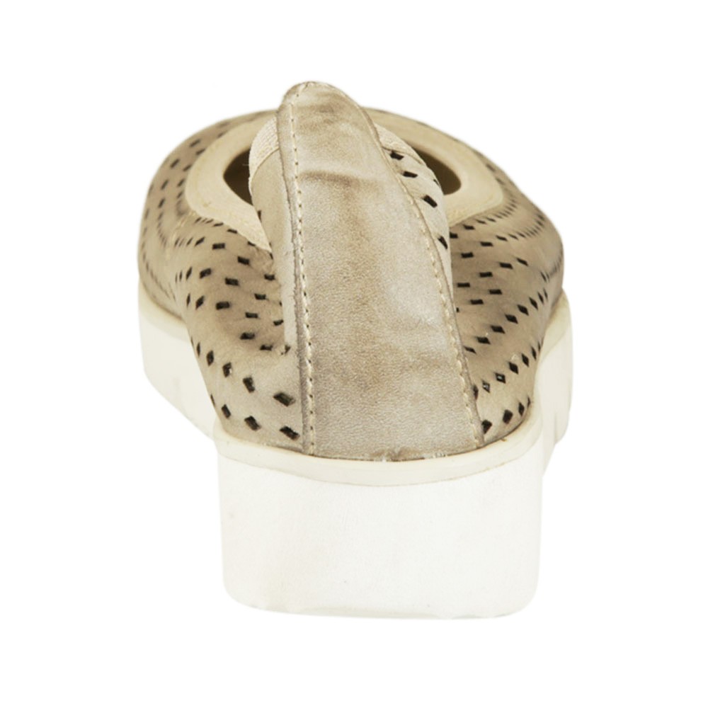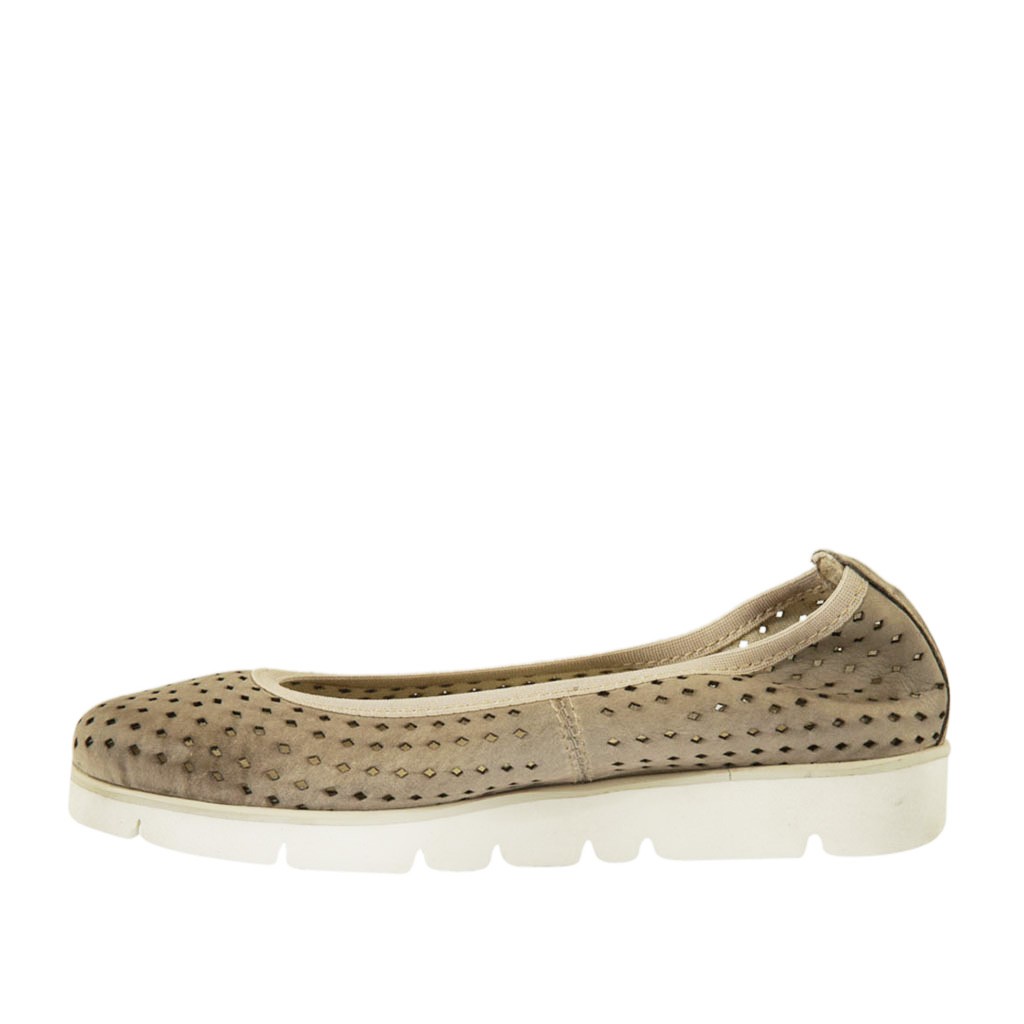 Damenballerinaschuh aus taupefarbenem perforiertem Leder Keilabsatz 3