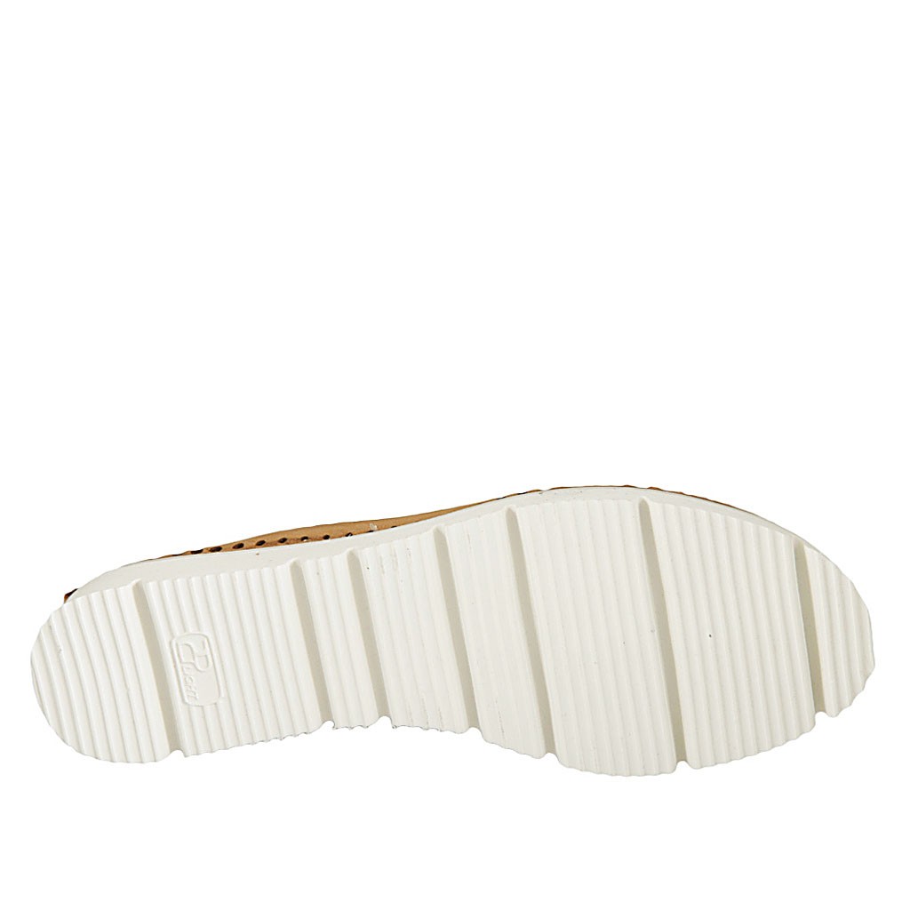 Damenballerinaschuh aus hellbraunem perforiertem Leder Keilabsatz 2