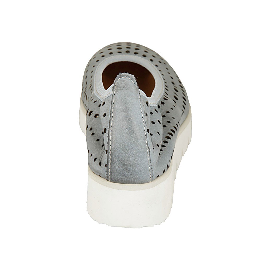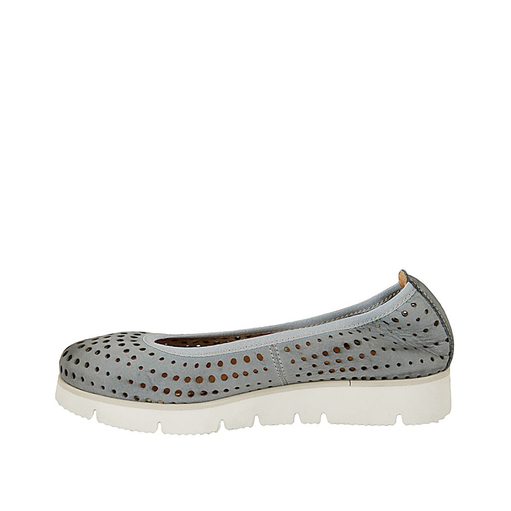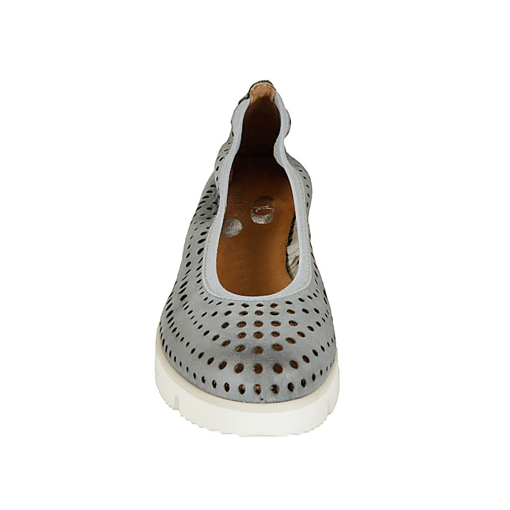 Damenballerinaschuh aus blaugrauem perforiertem Leder Keilabsatz 2