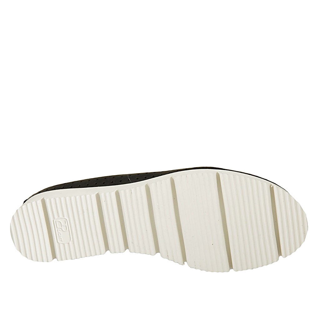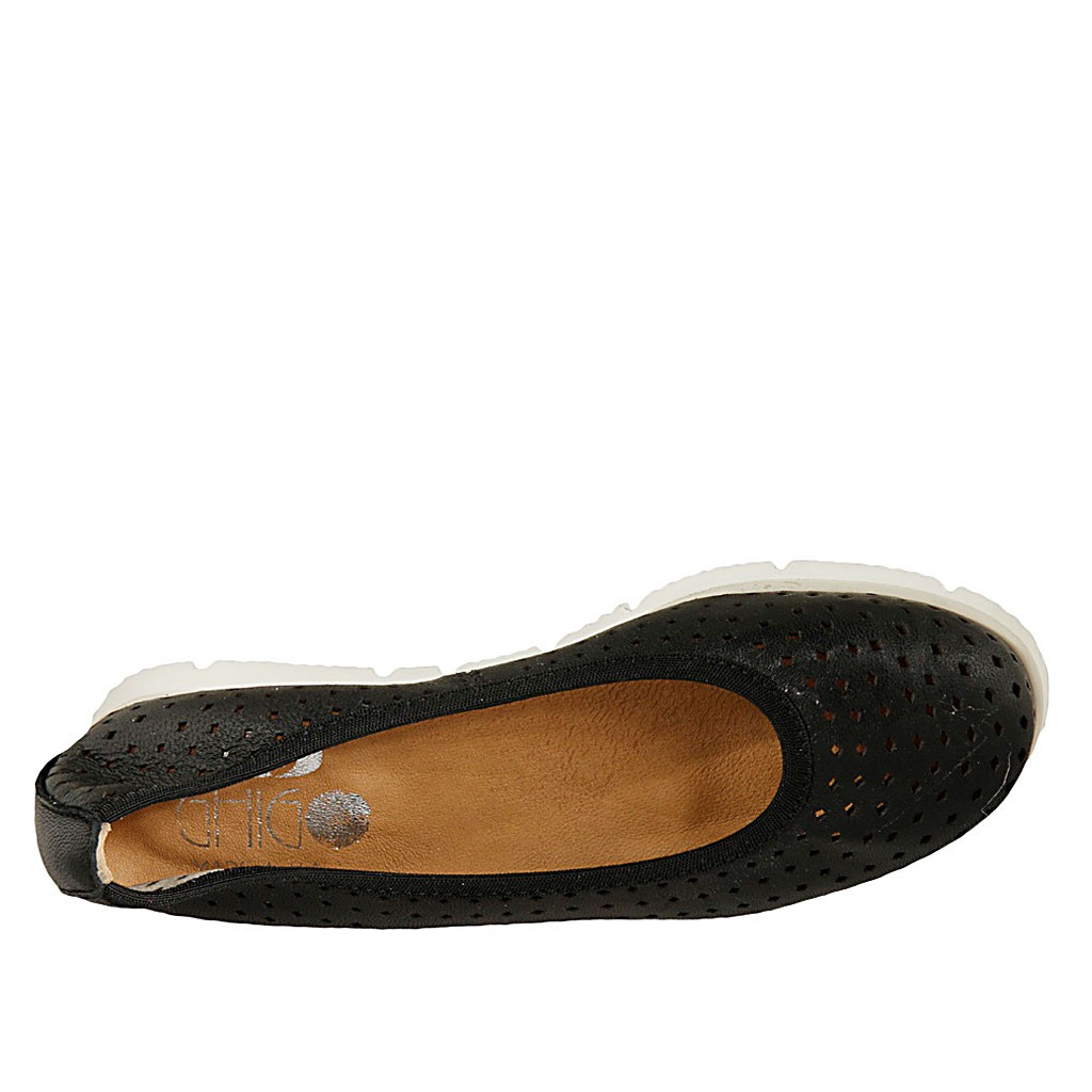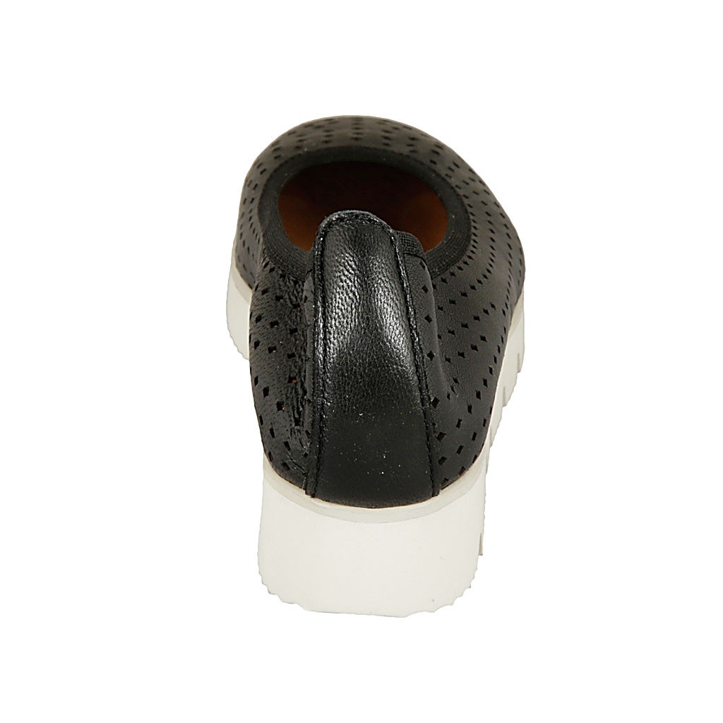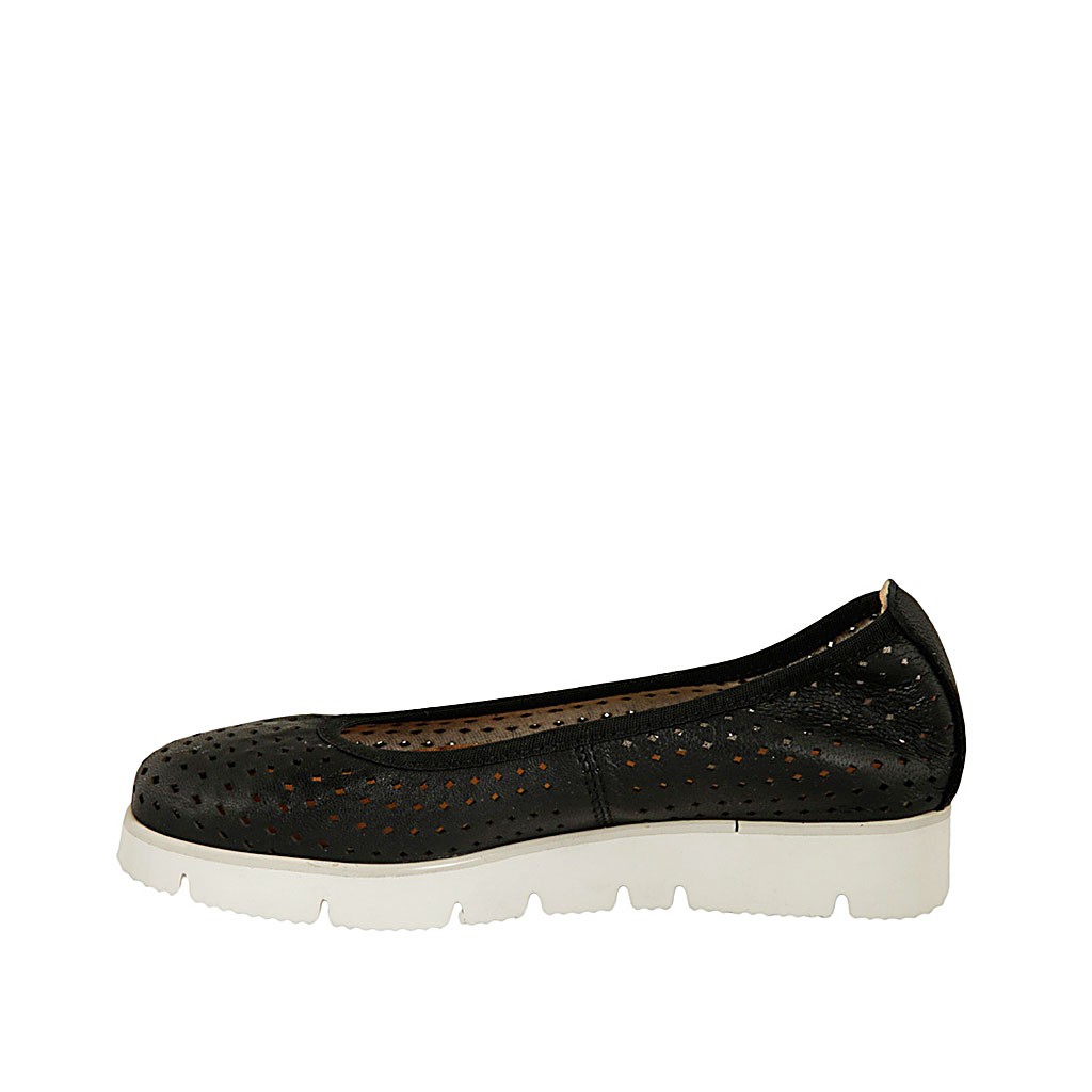 Damenballerinaschuh aus schwarzem perforiertem Leder Keilabsatz 2