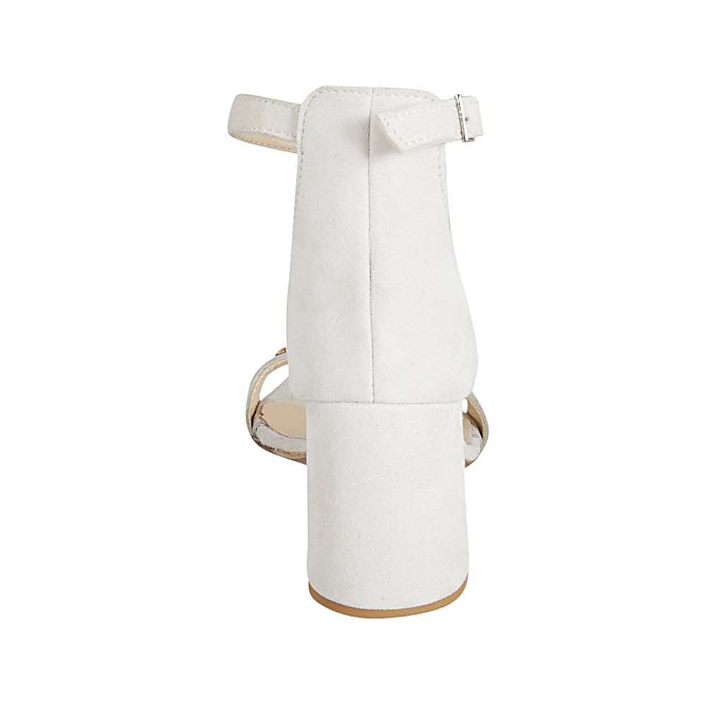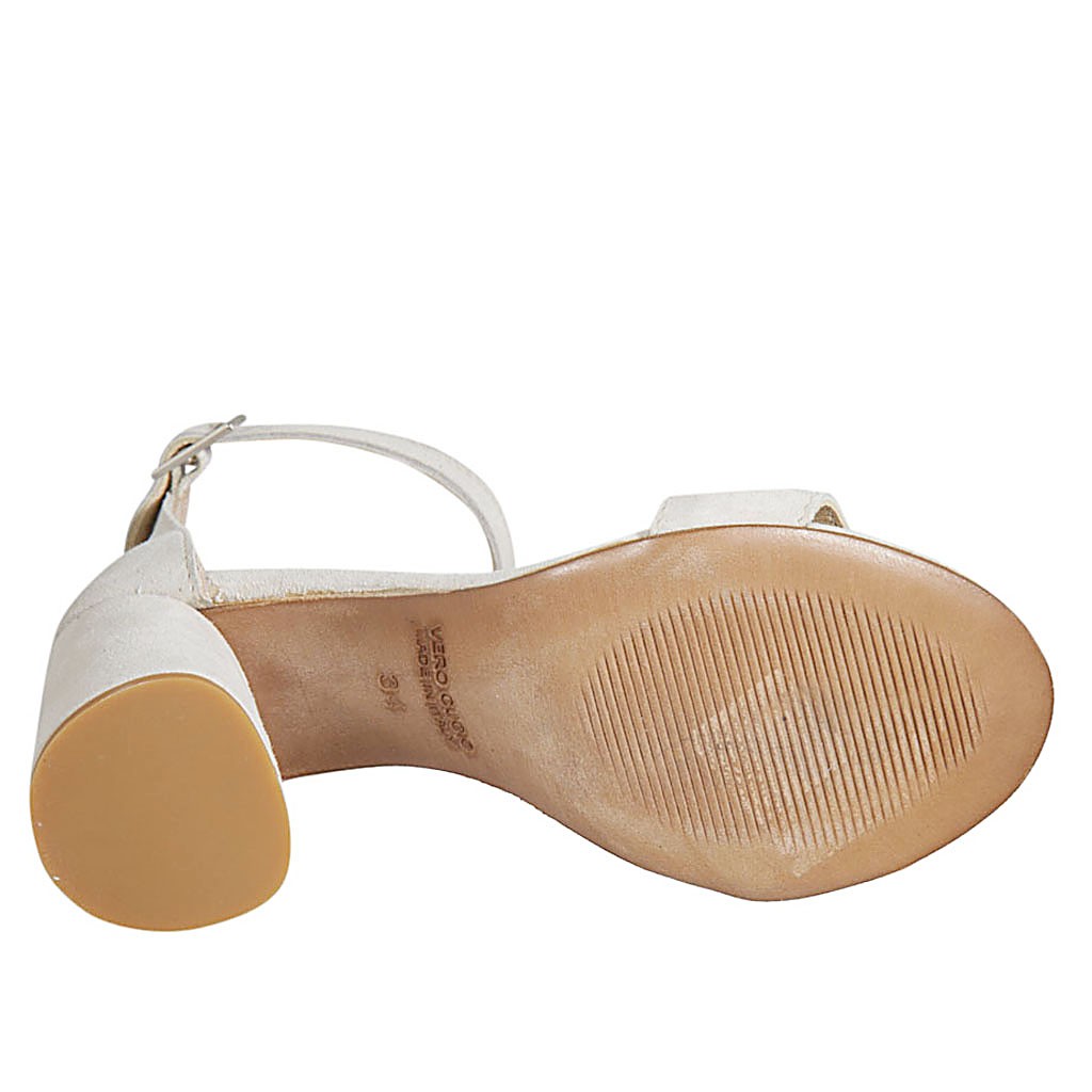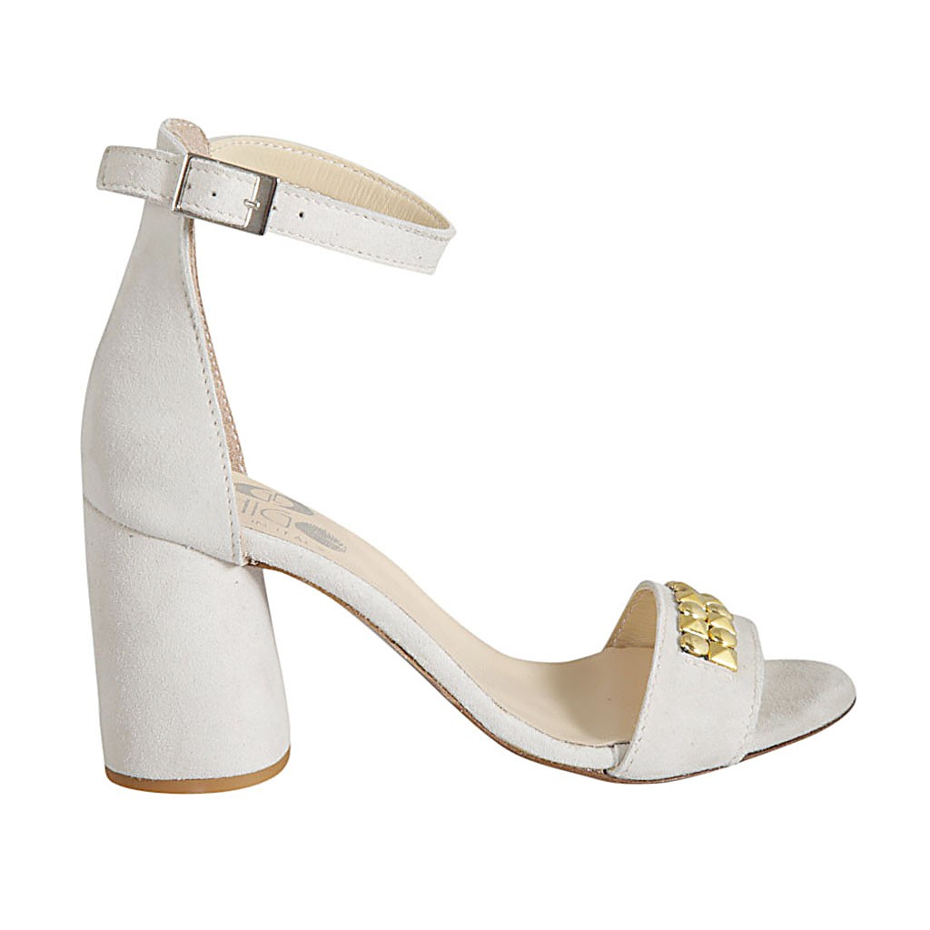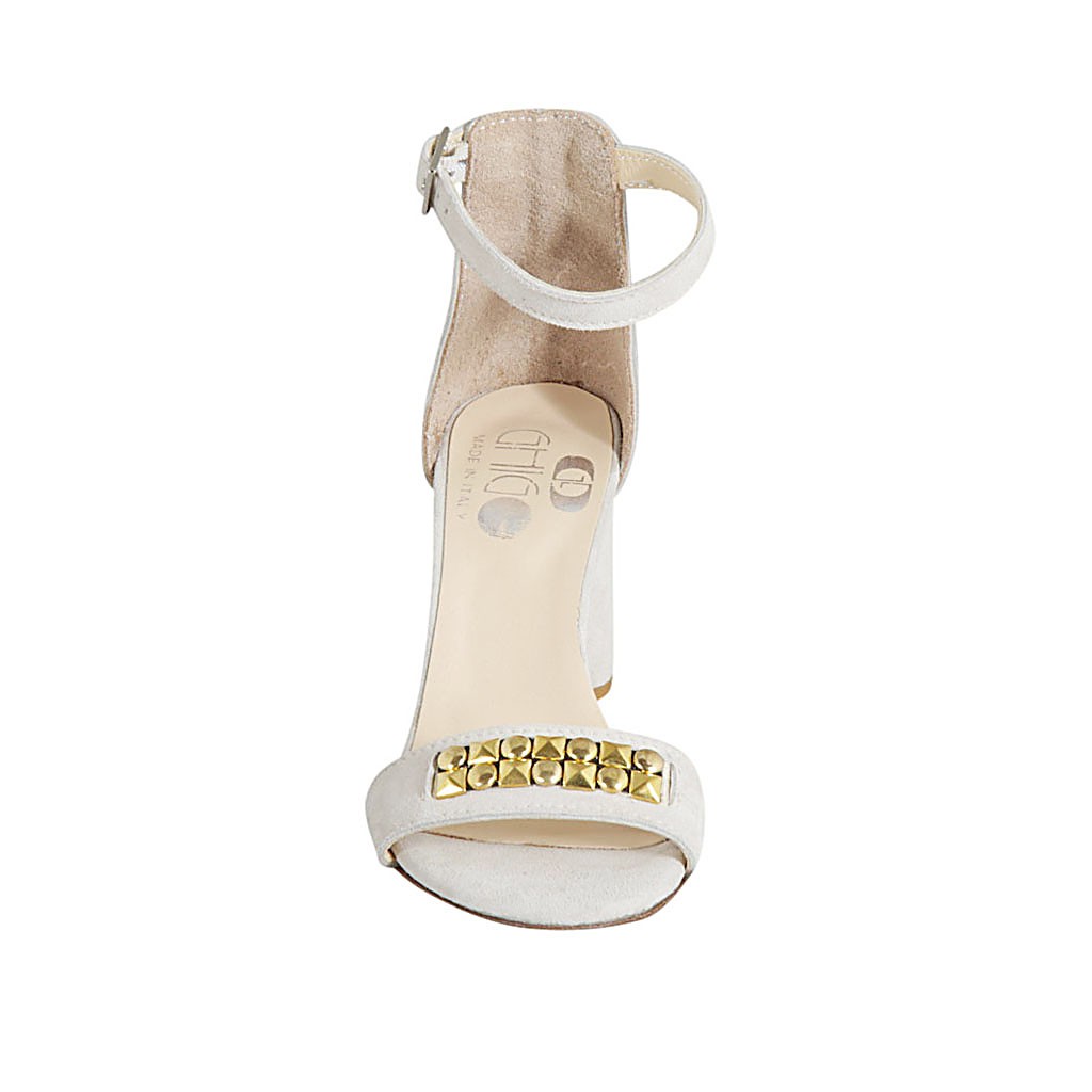 Offener Damenschuh mit Knöchelriem und Nieten aus beigem Wildleder Absatz 7