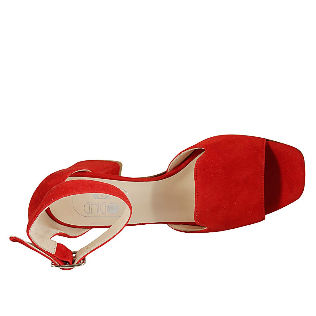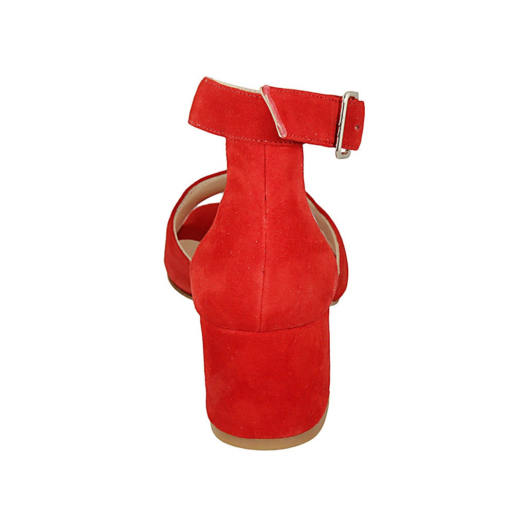 Offener Damenschuh mit Riem aus rotem Wildleder Absatz 6