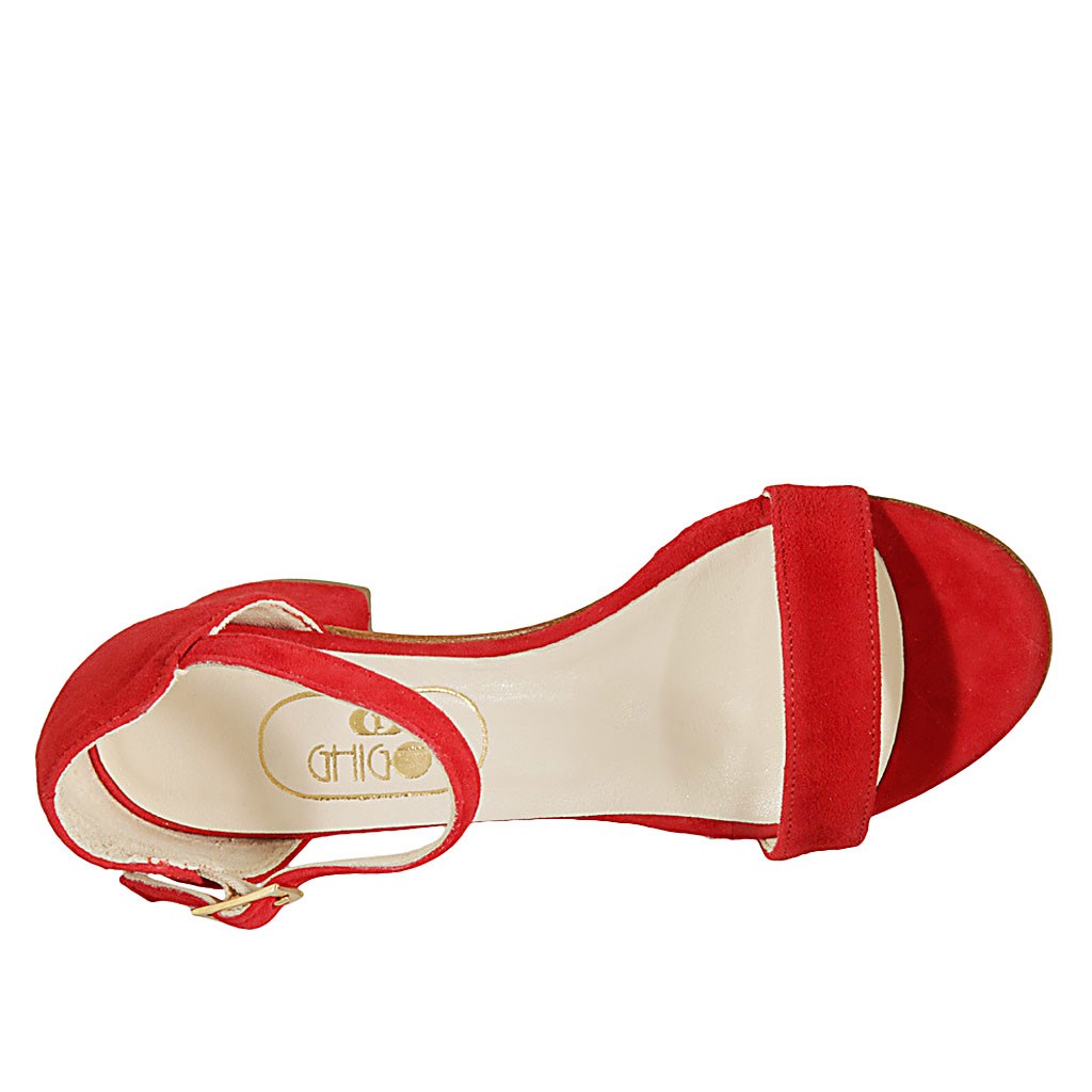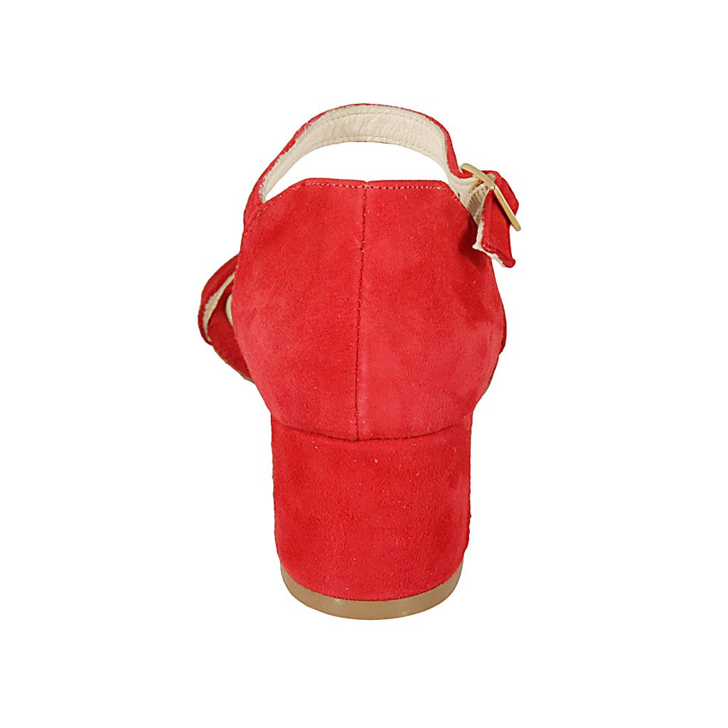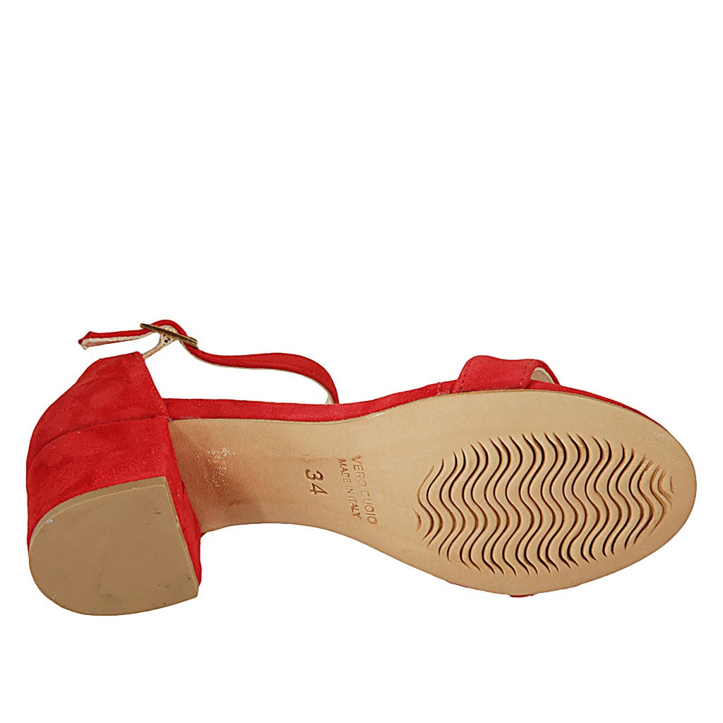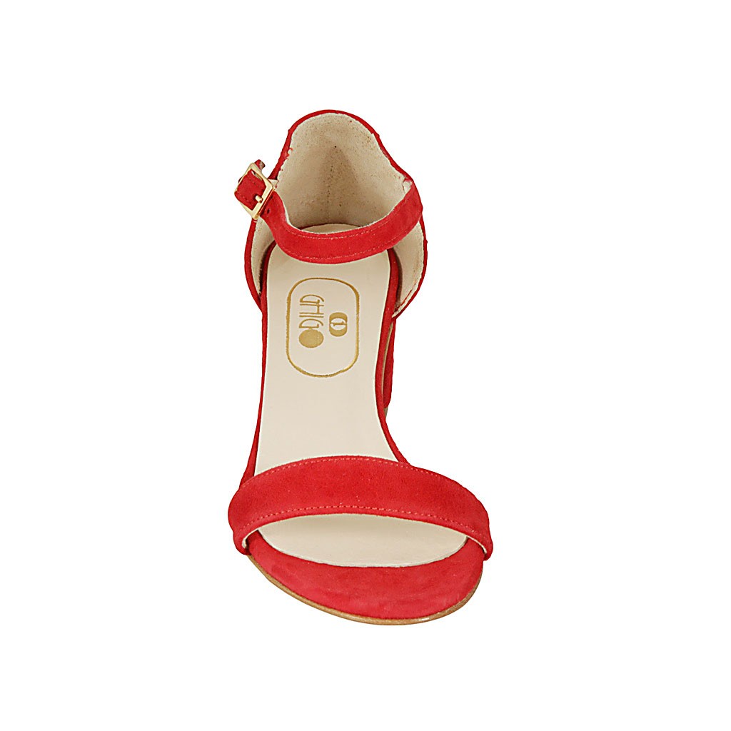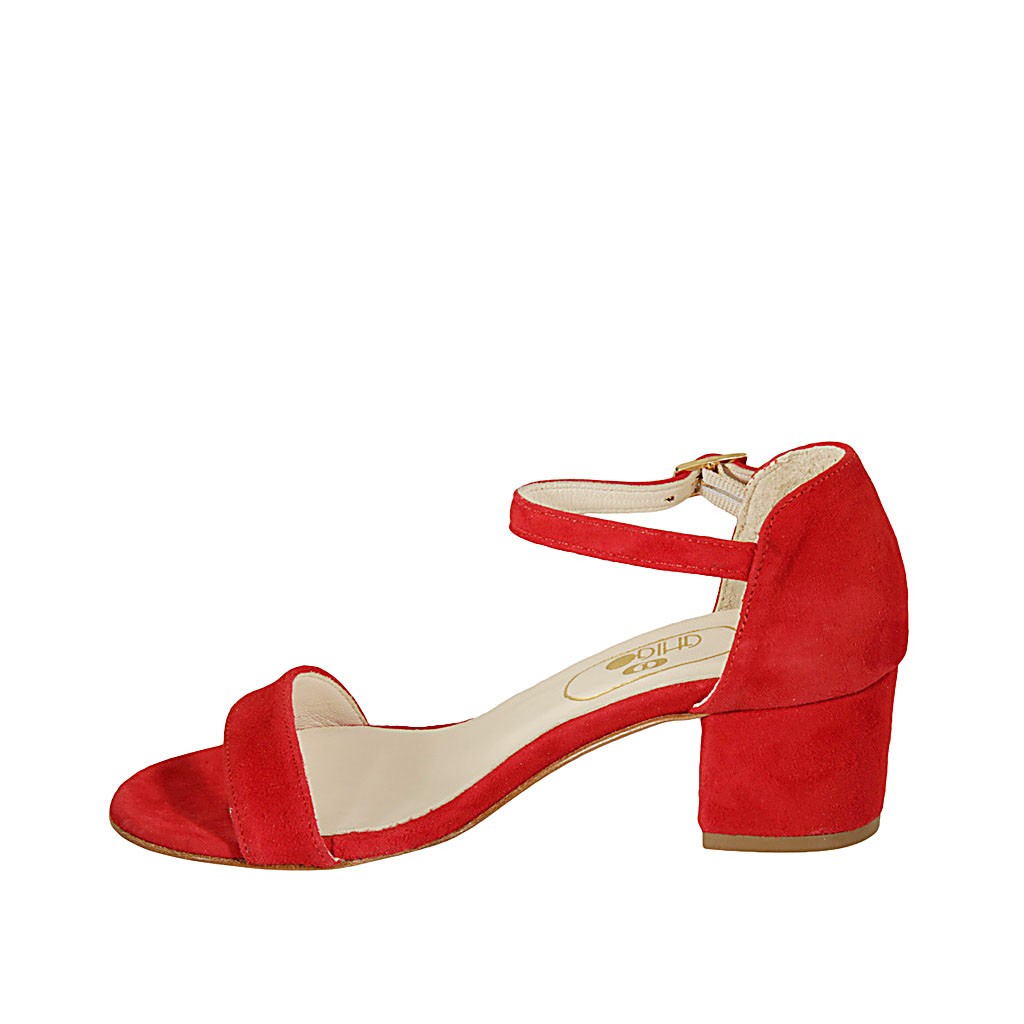 Offener Damenschuh aus rotem Wildleder mit Riem Absatz 5