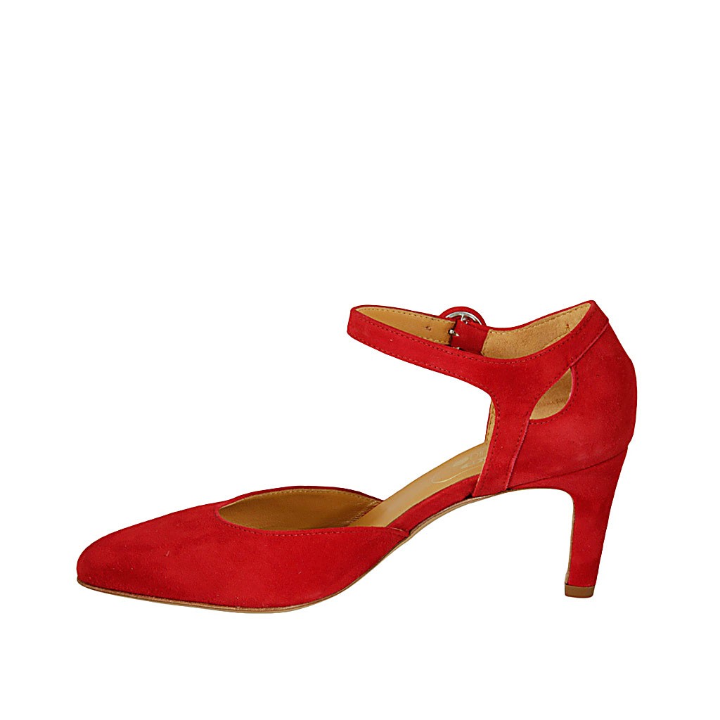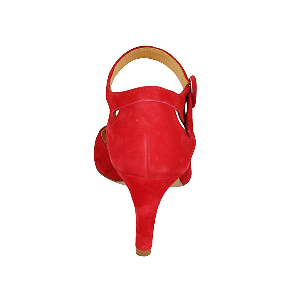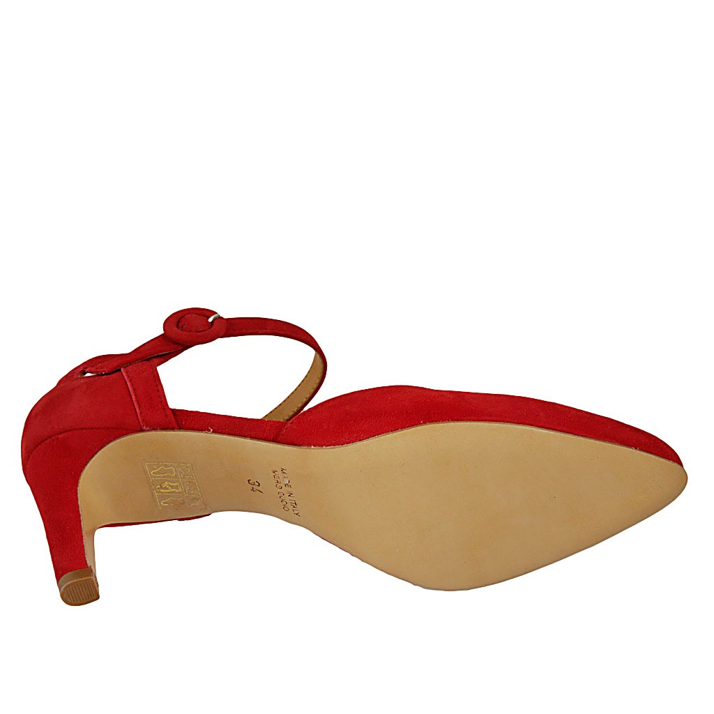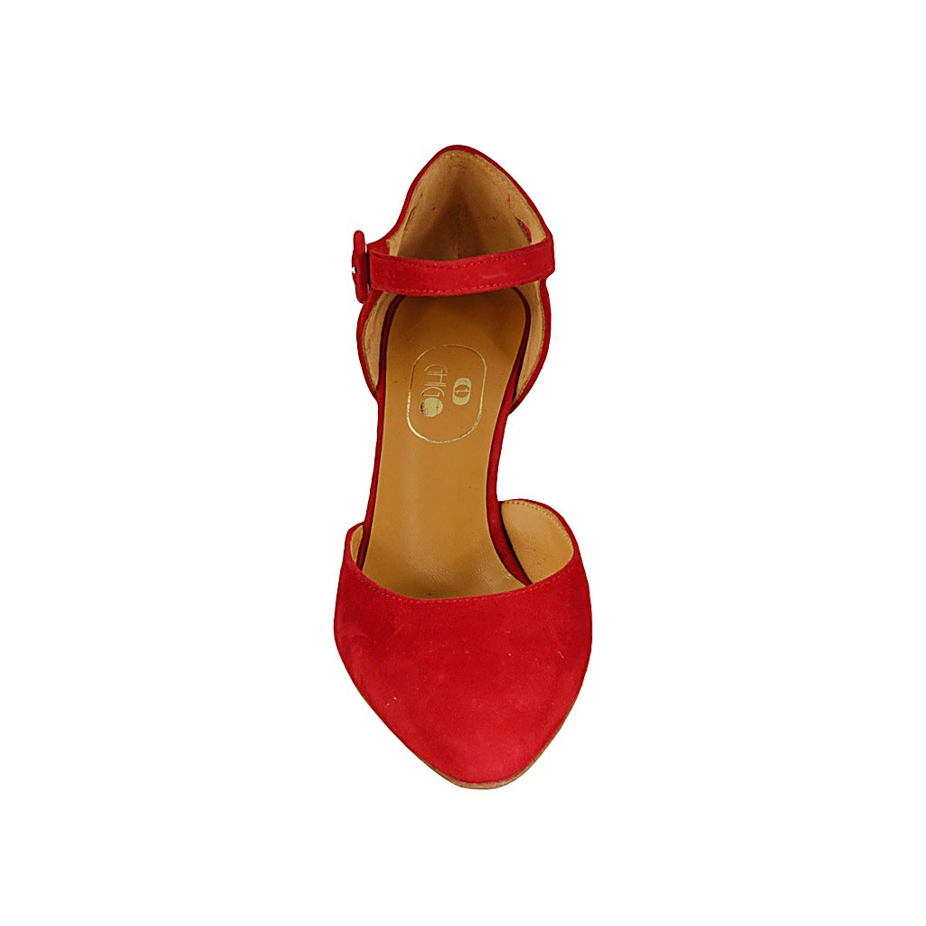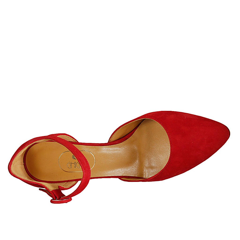 Offener Damenschuh mit Riem aus rotem Wildleder Absatz 7