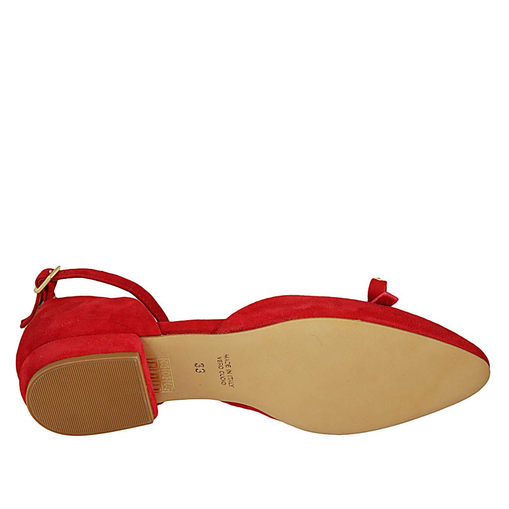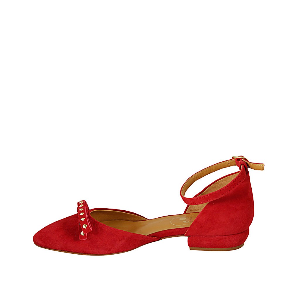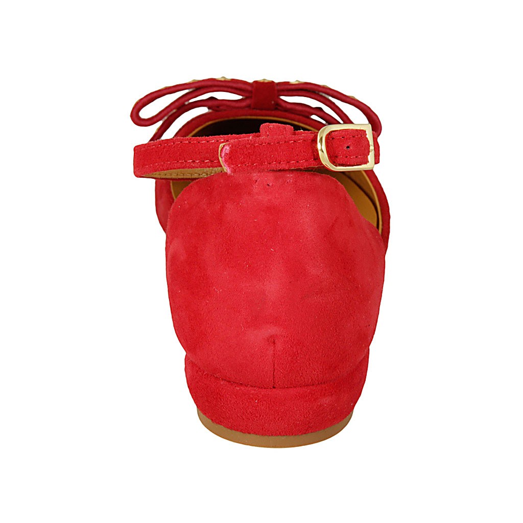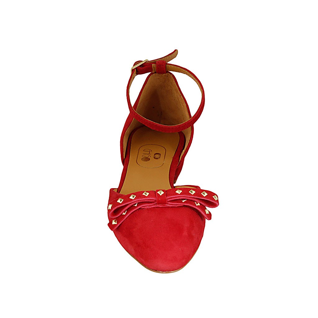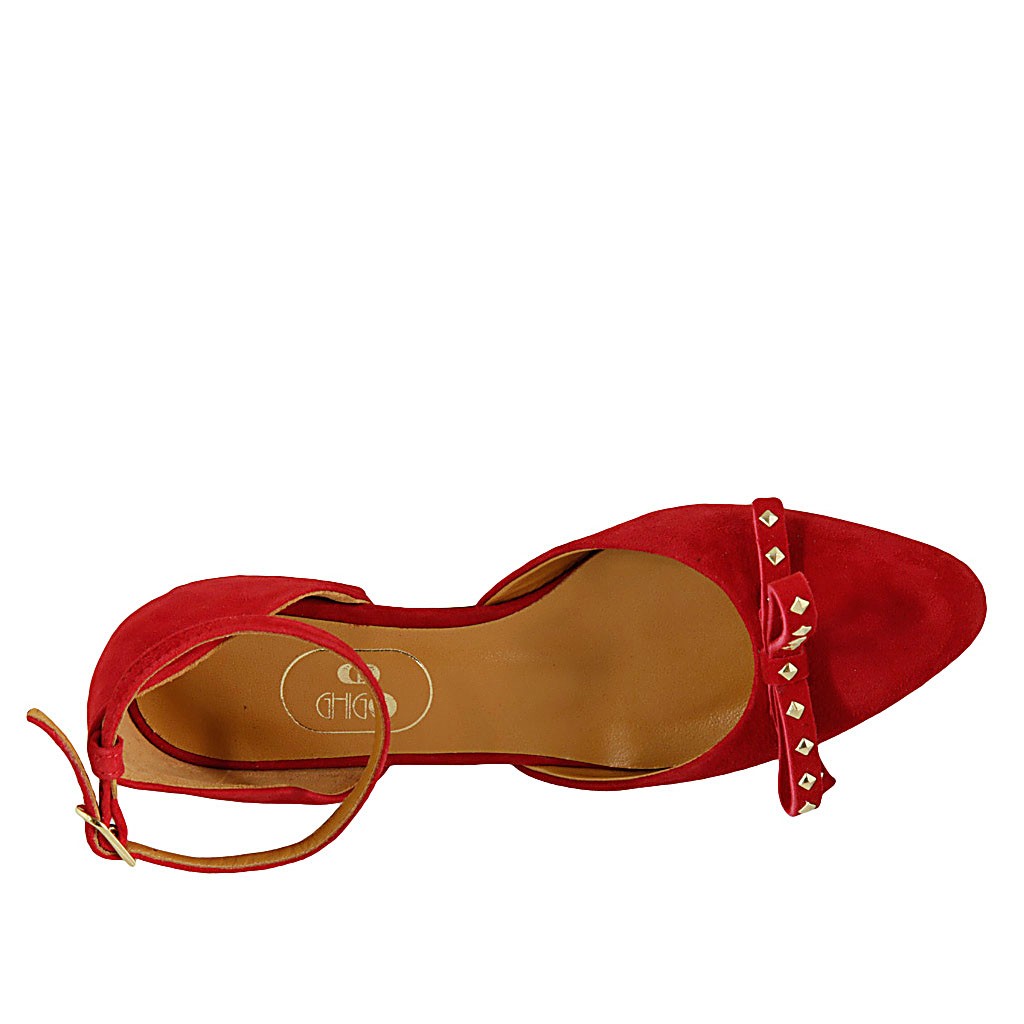 Offener Damenschuh aus schwarzem Wildleder mit Riem, Schleife und Nieten Absatz 2