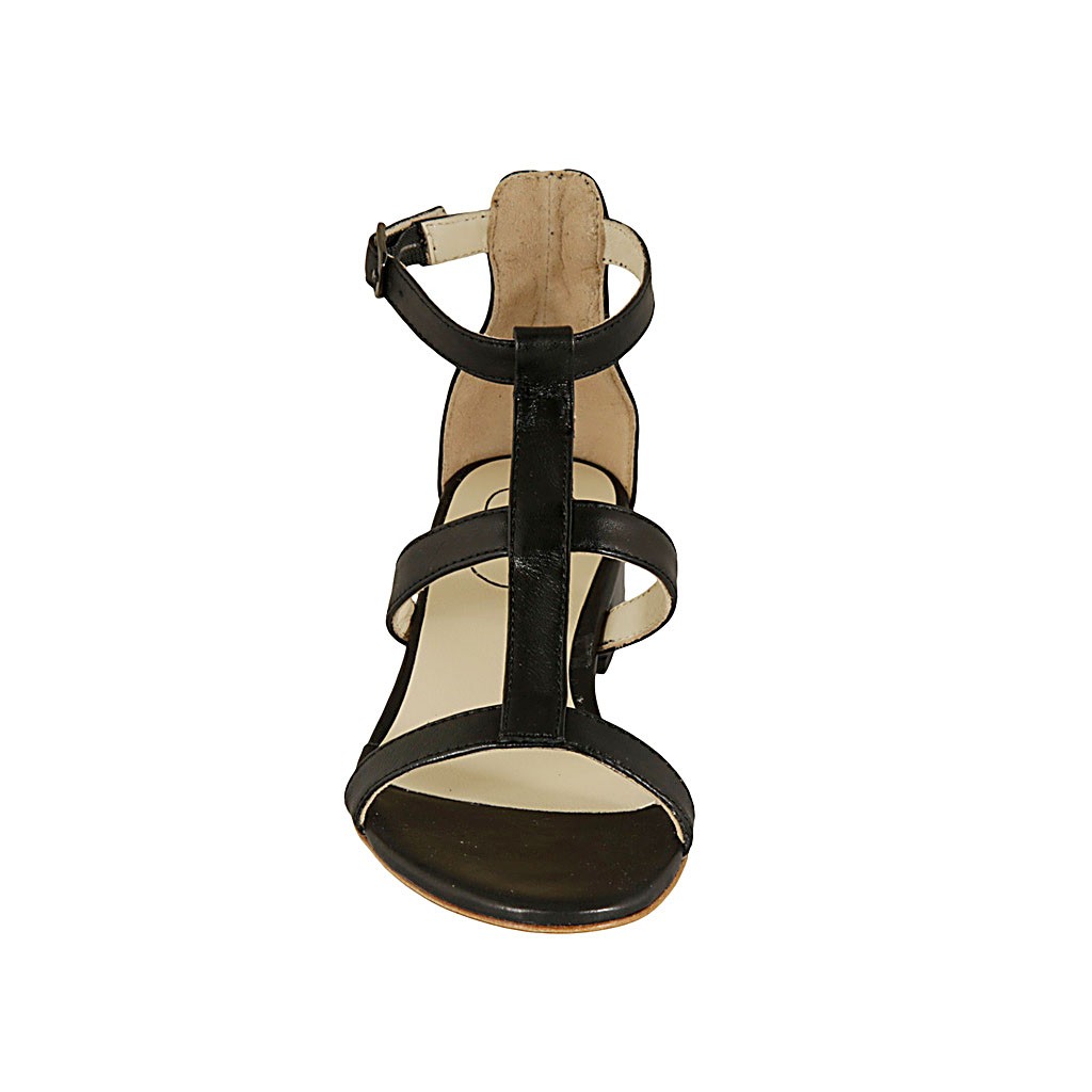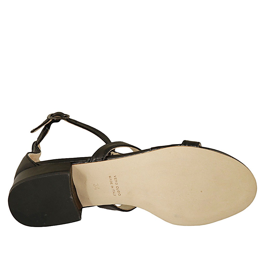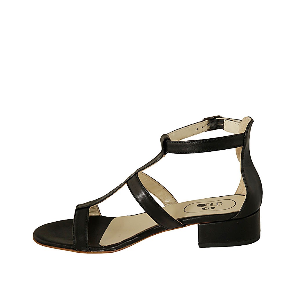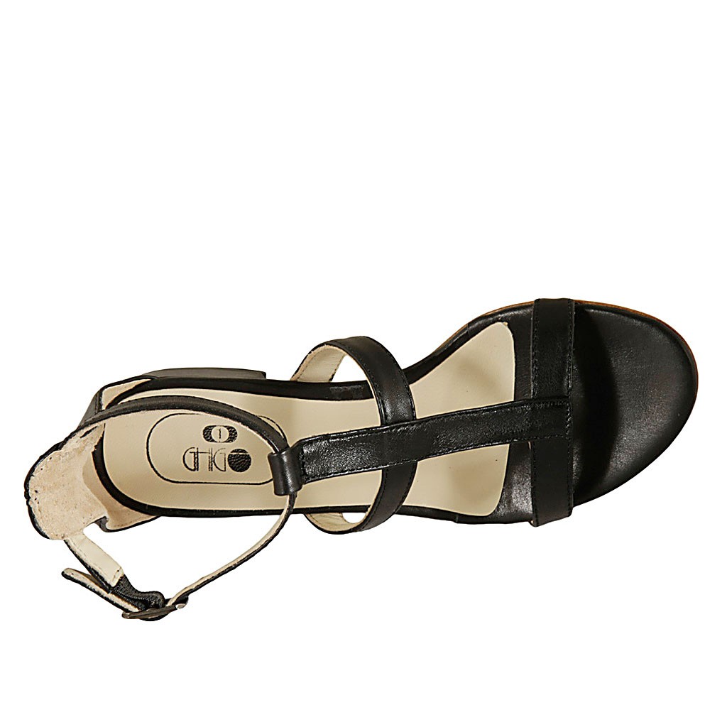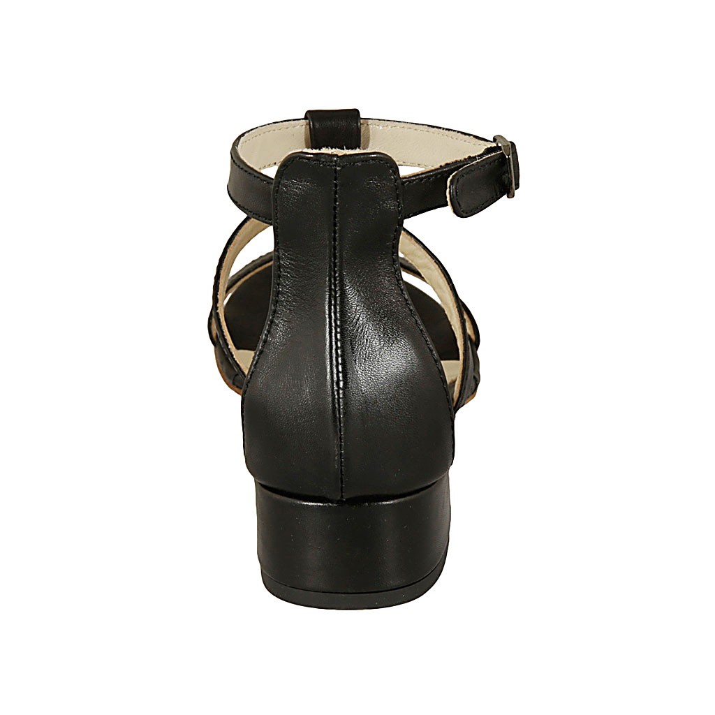 Offener Damenschuh mit Riem aus schwarzem Leder Absatz 3