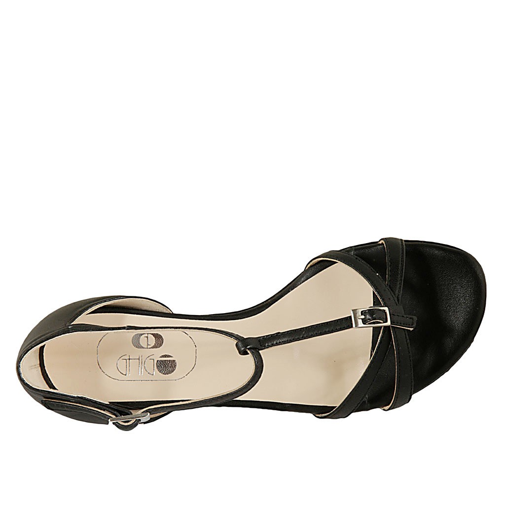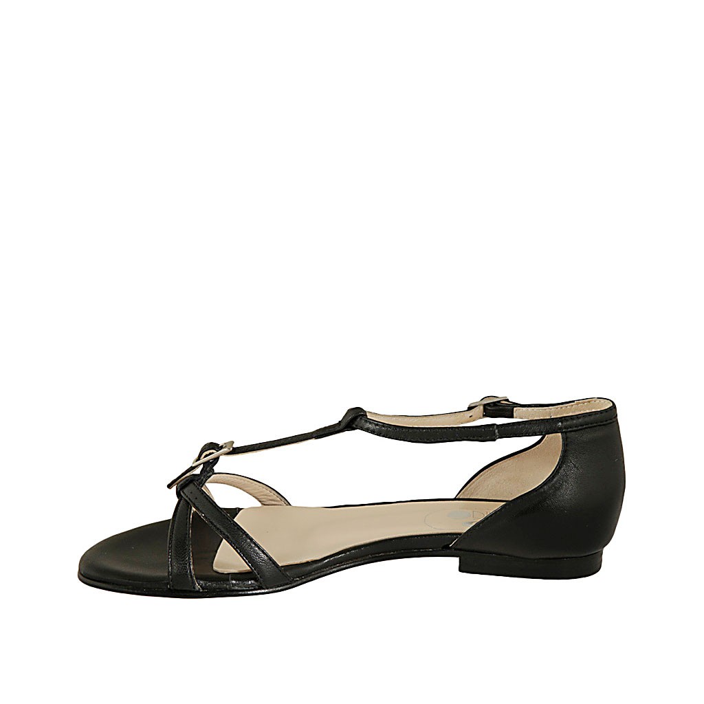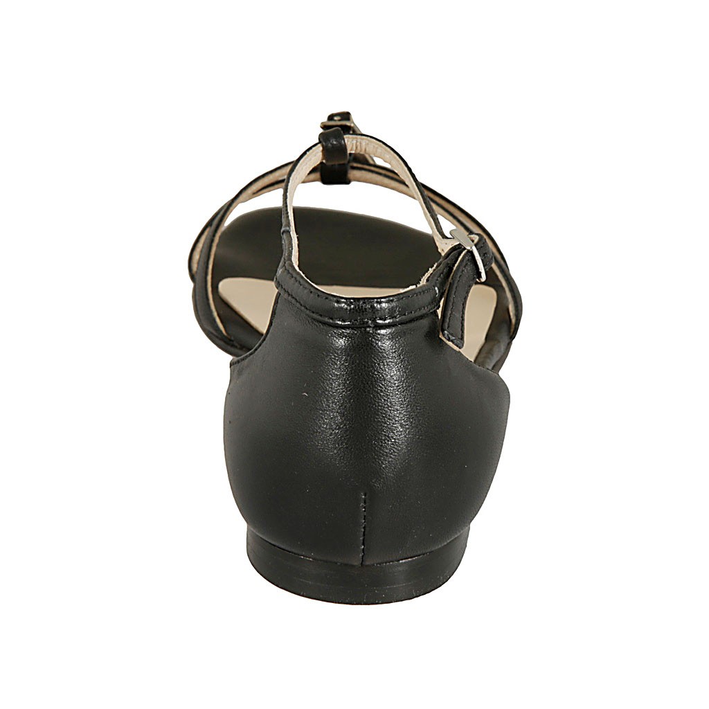 Offener Damenschuh mit regulierbaren Schnallen aus schwarzem Leder Absatz 1