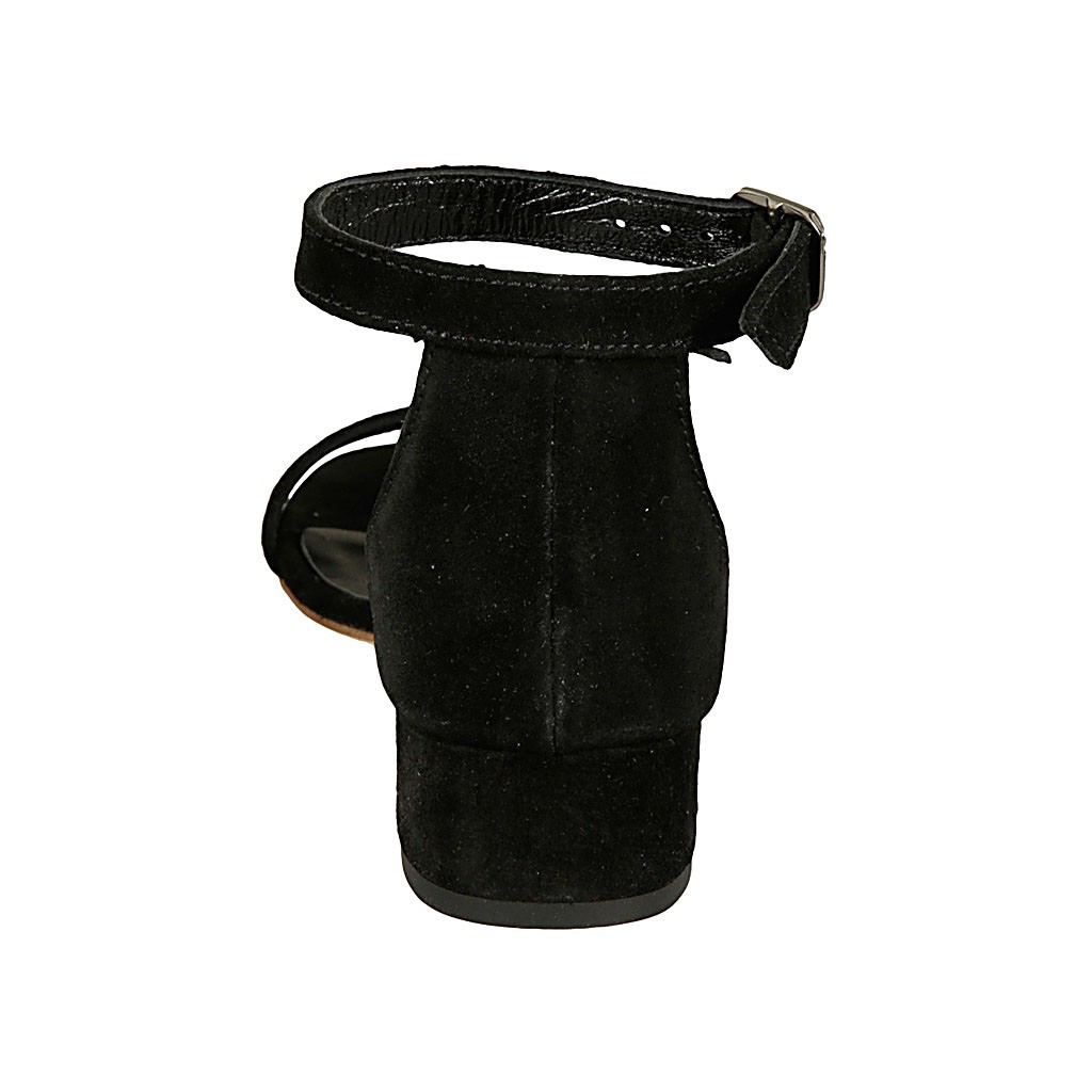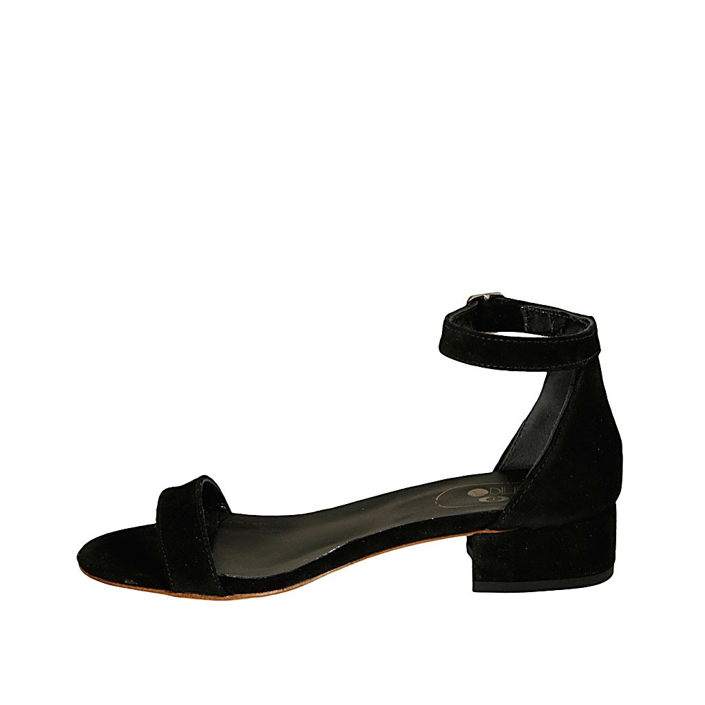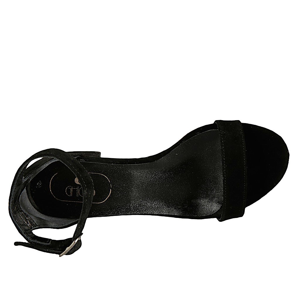 Offener Damenschuh mit Riem aus schwarzem Wildleder Absatz 3