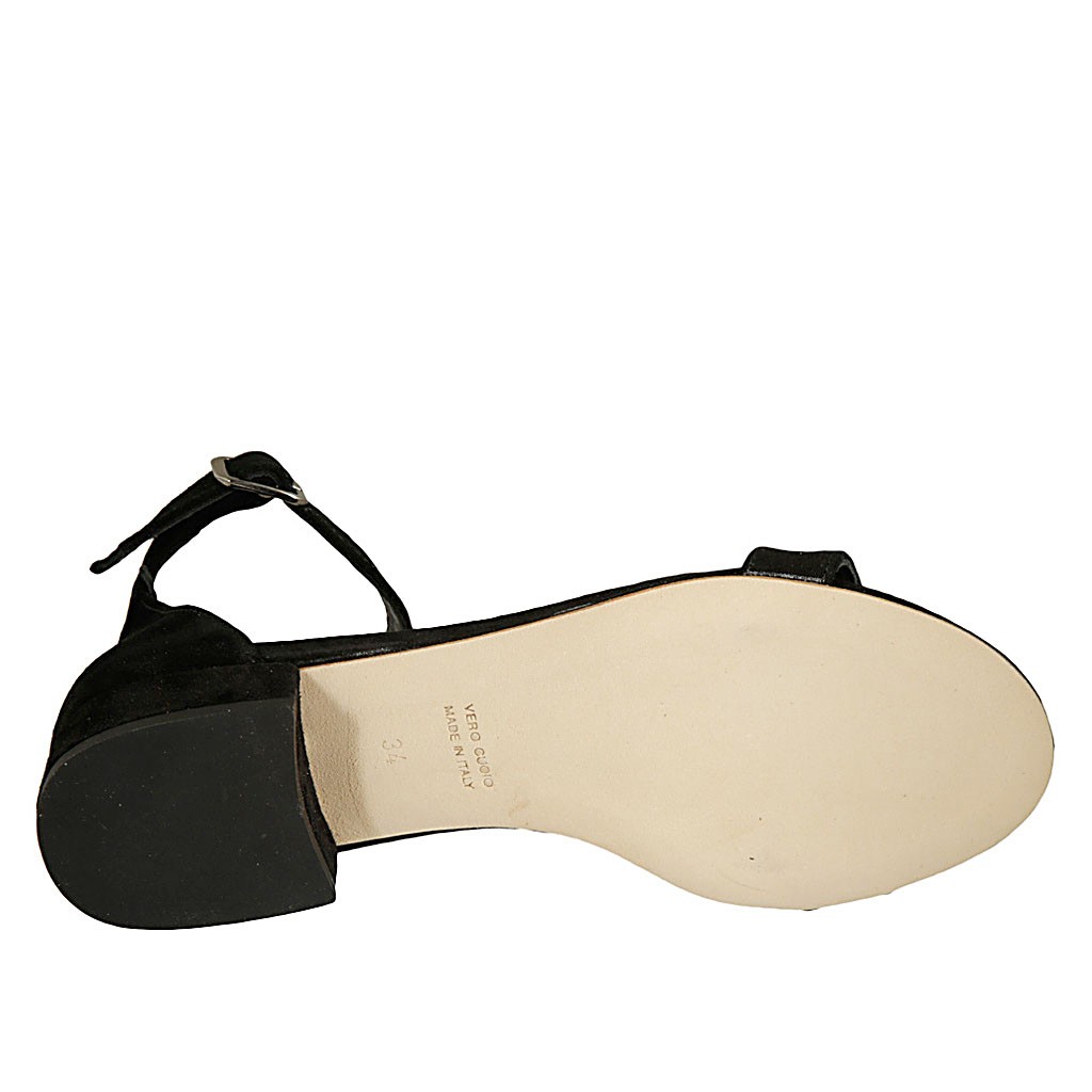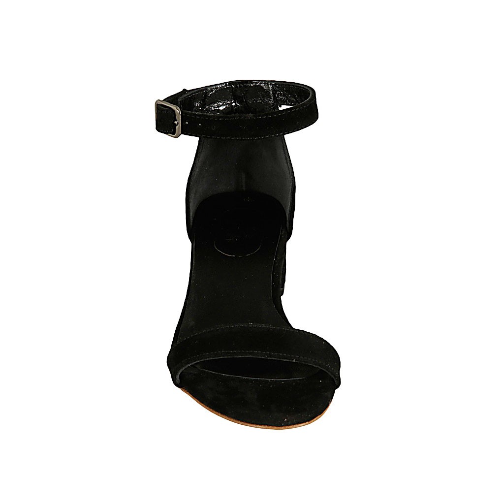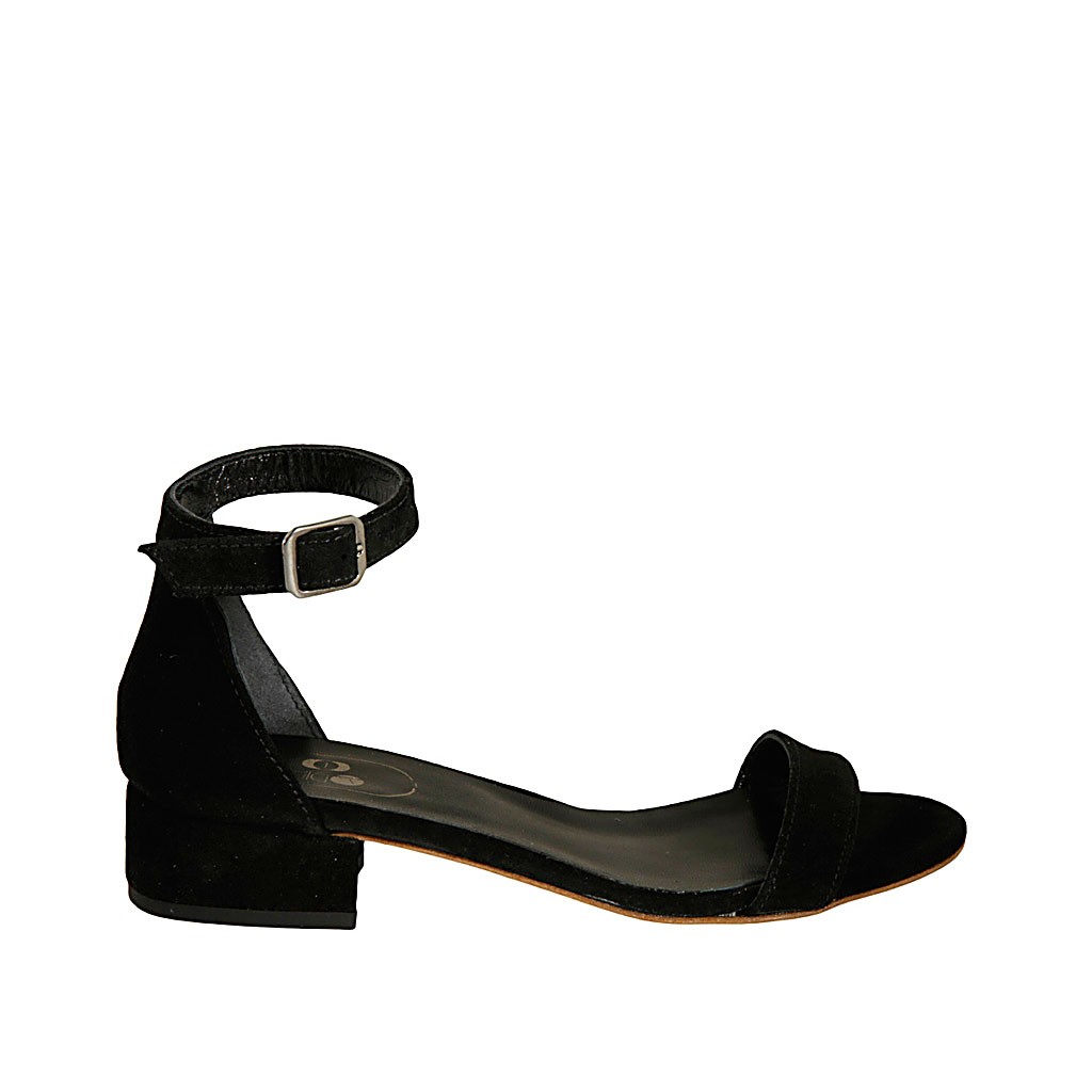 Offener Damenschuh mit Riem aus schwarzem Wildleder Absatz 3
