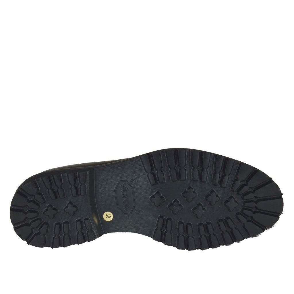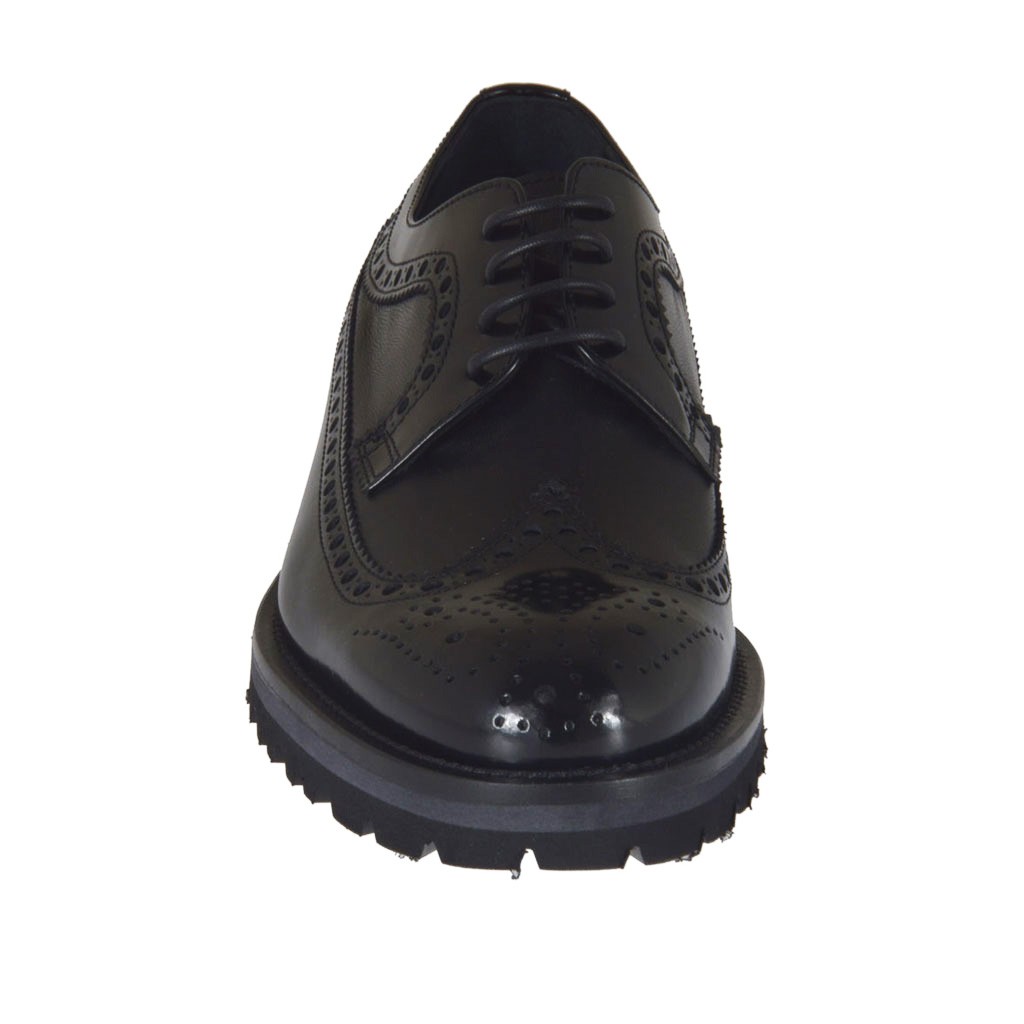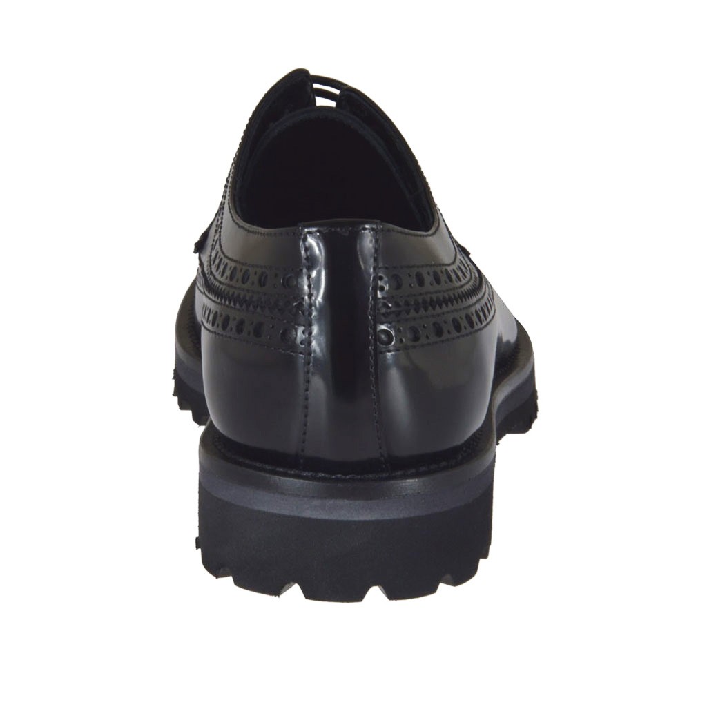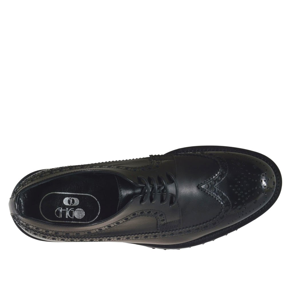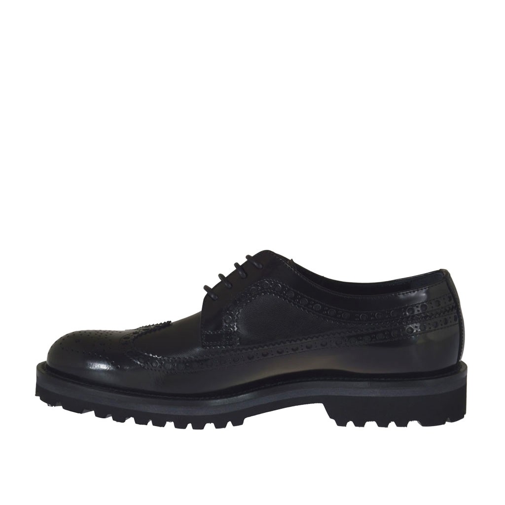 Derbyschuh mit Schnürsenkeln und Broguemuster für Herren aus schwarzem Leder und gebürstetem Leder