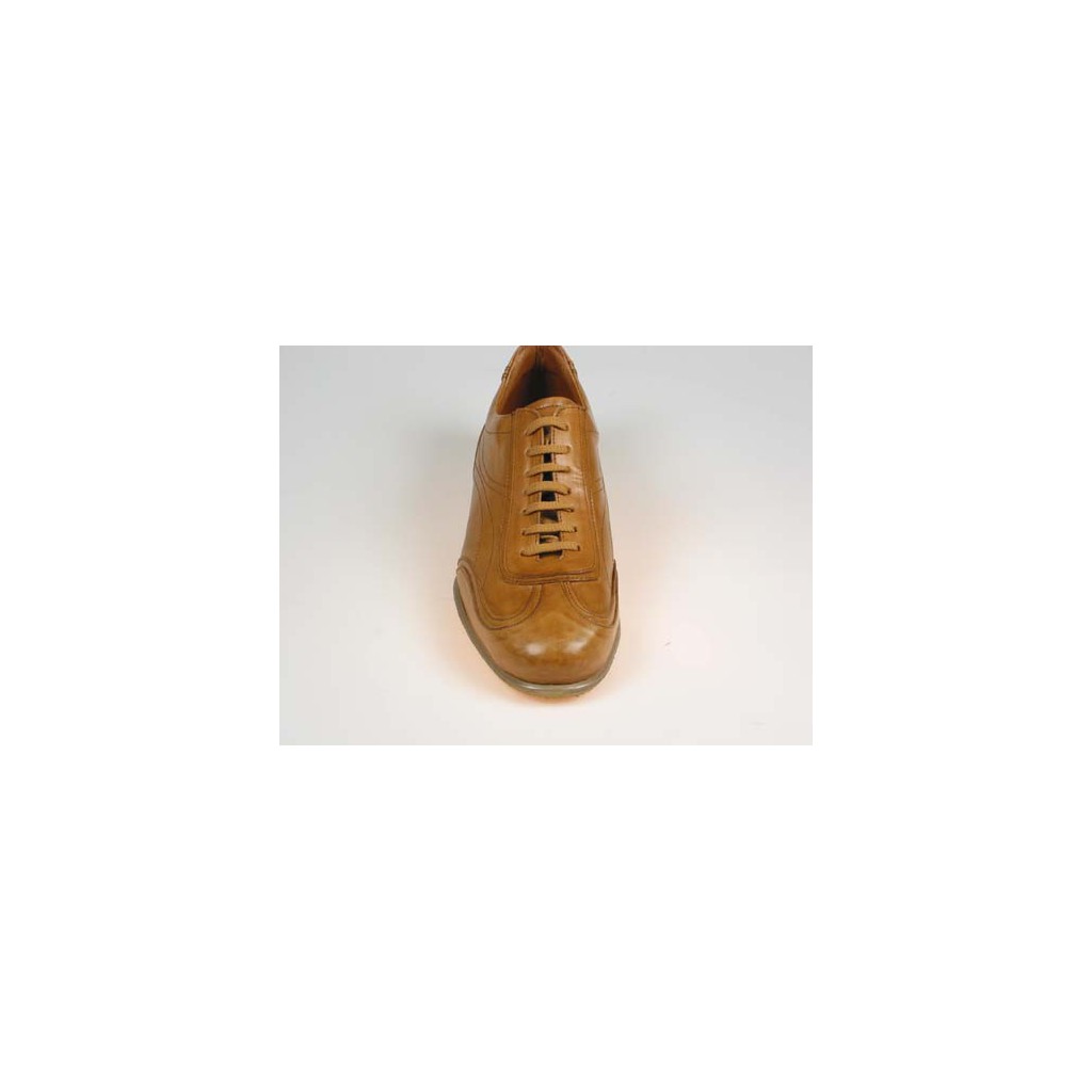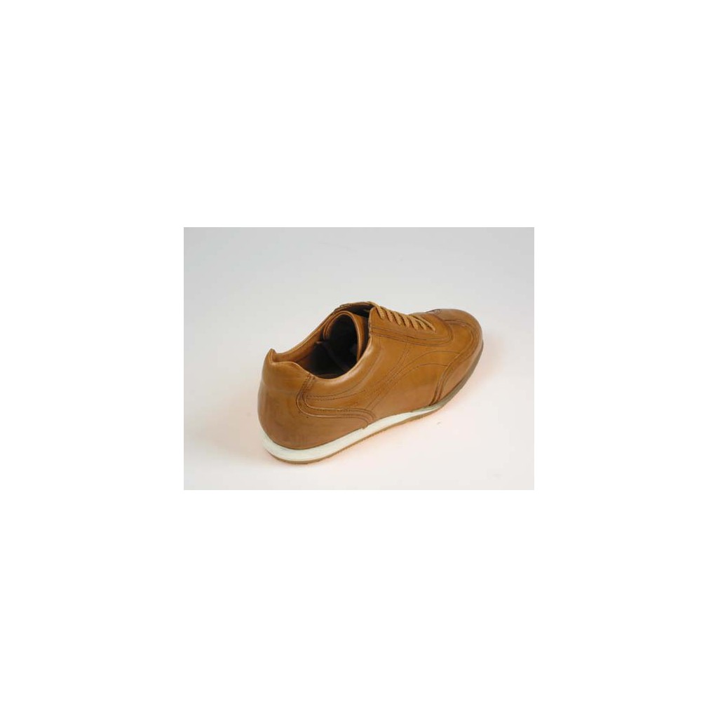 Sportlicher Herrenfreizeitschuh mit Schnürsenkel, aus hellbraunfarbigem Leder, Gummisohle, Lederfutter.