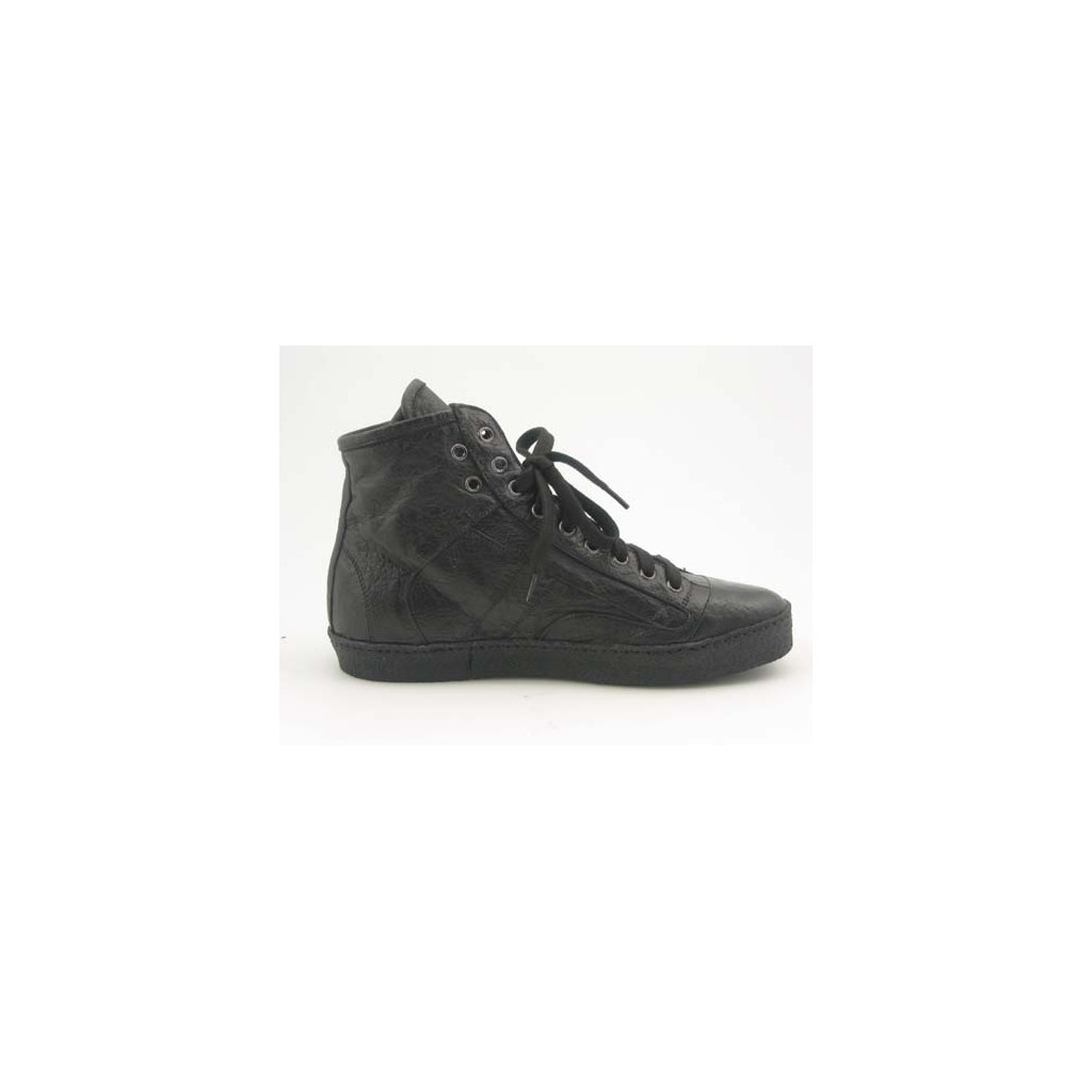Knöchelhoher sportlicher Herrenschuh mit Schnürsenkeln aus schwarzem Leder