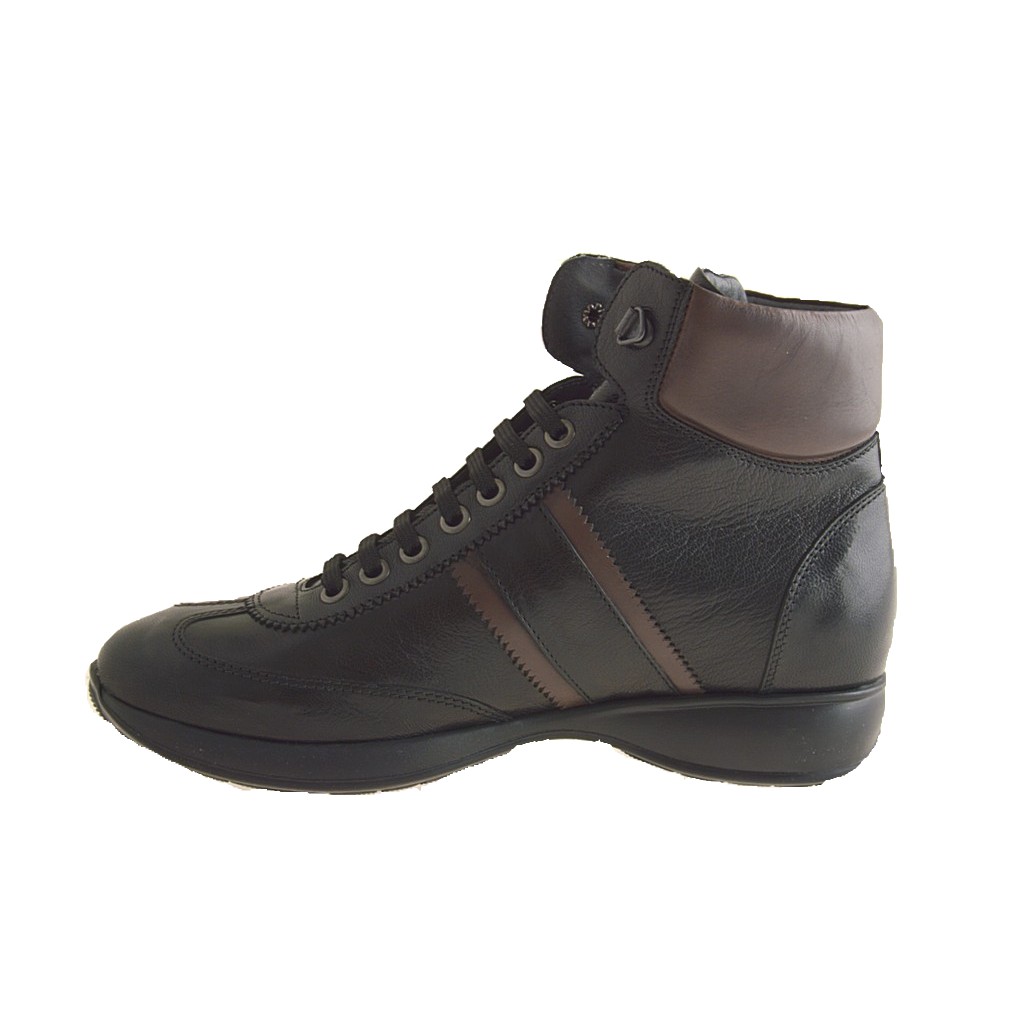 Herrenstiefelette mit Schnürsenkel aus schwarzem und braunem Leder