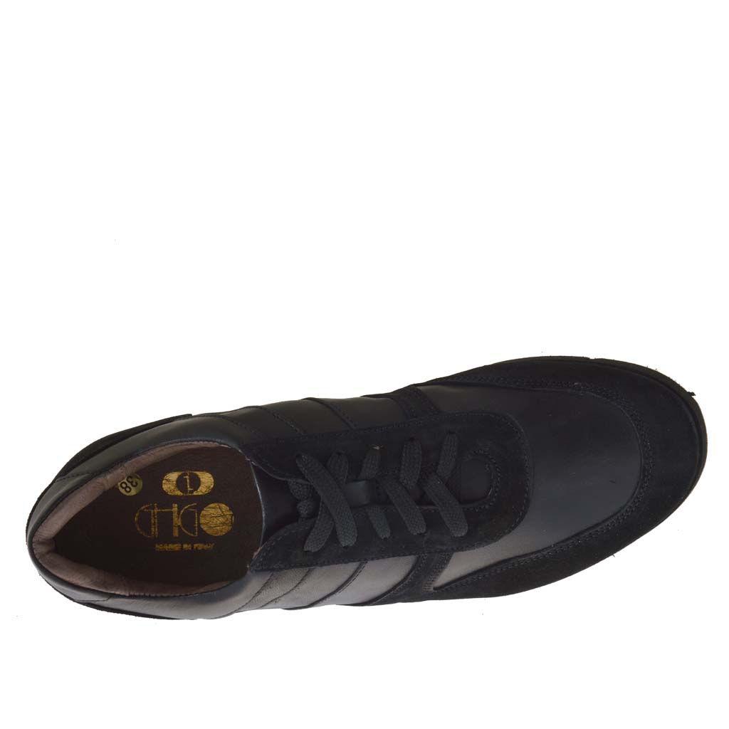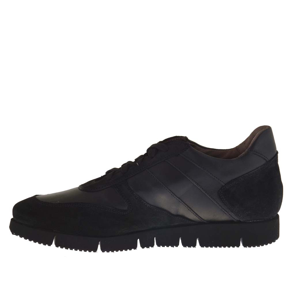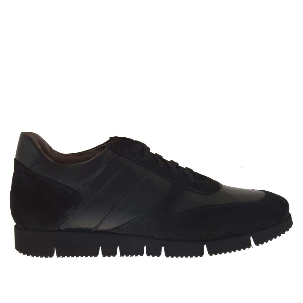 Freizeitherrenschuh mit Schnürsenkeln aus schwarzem Leder und Wildleder
