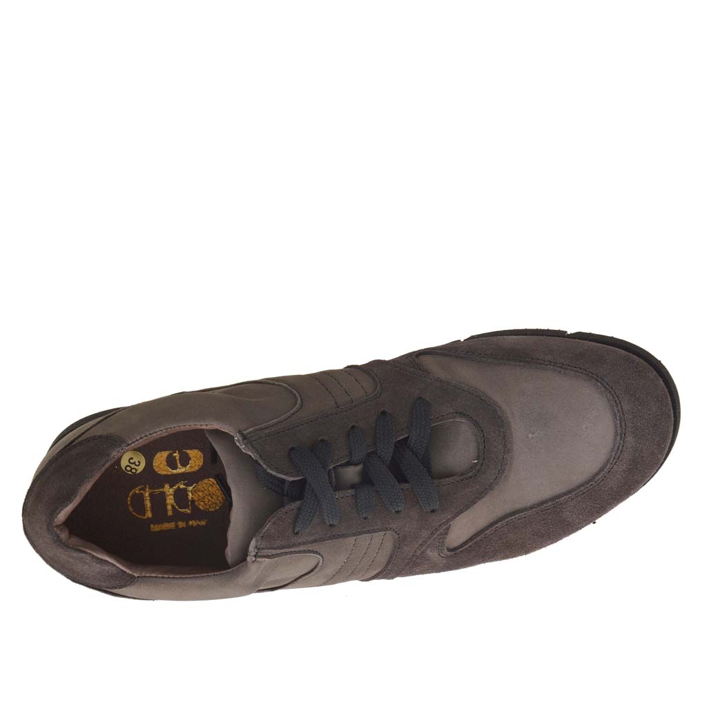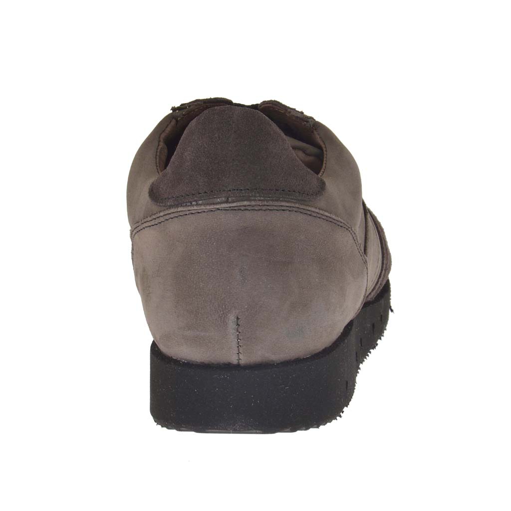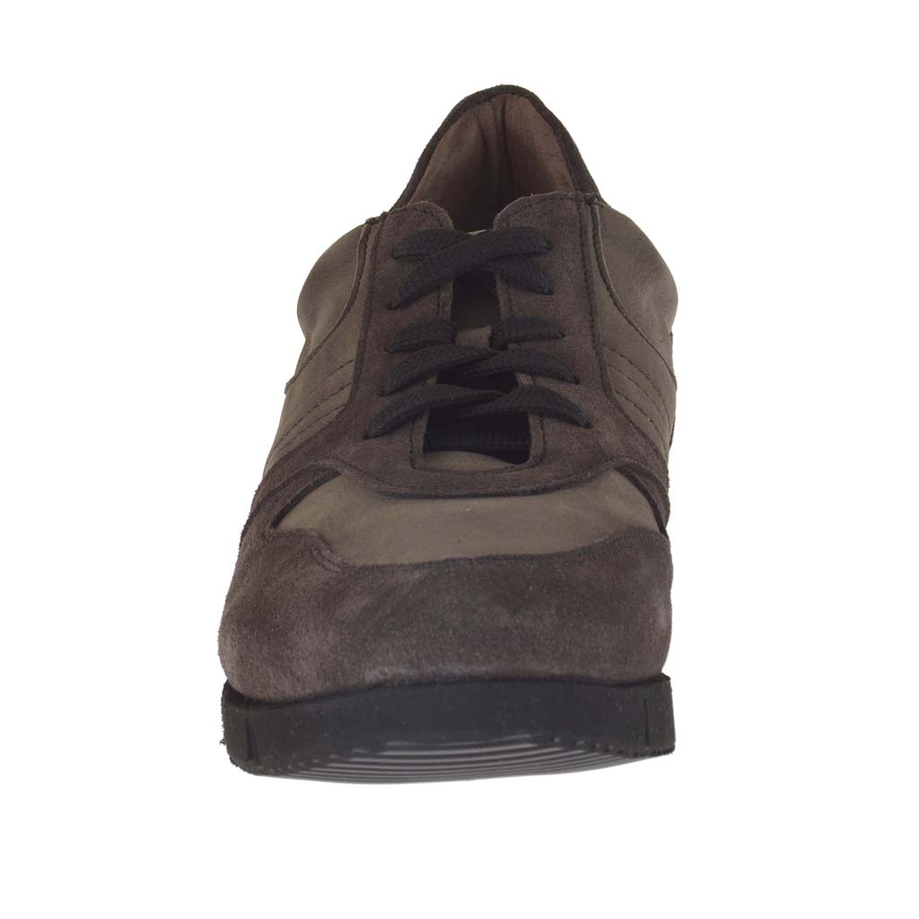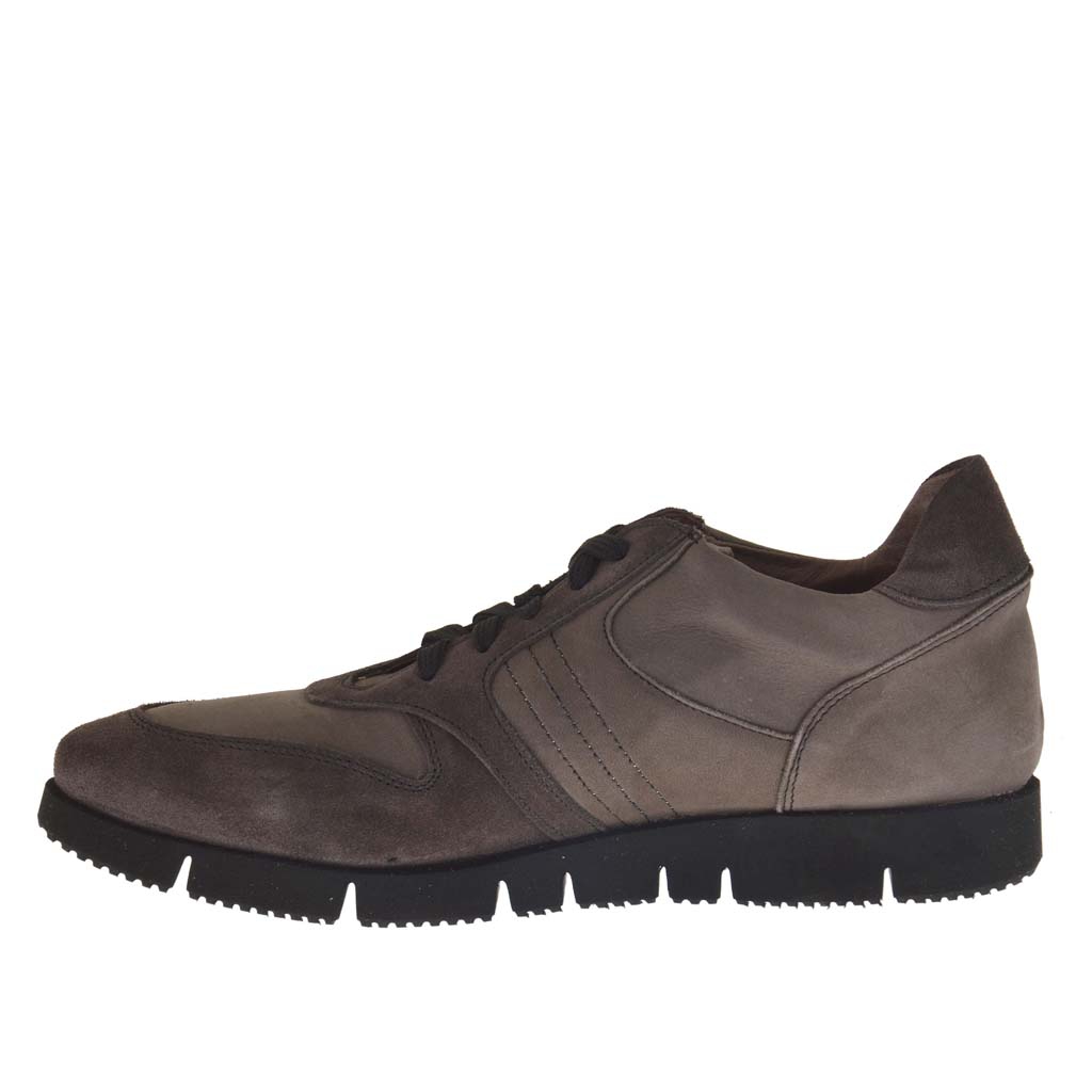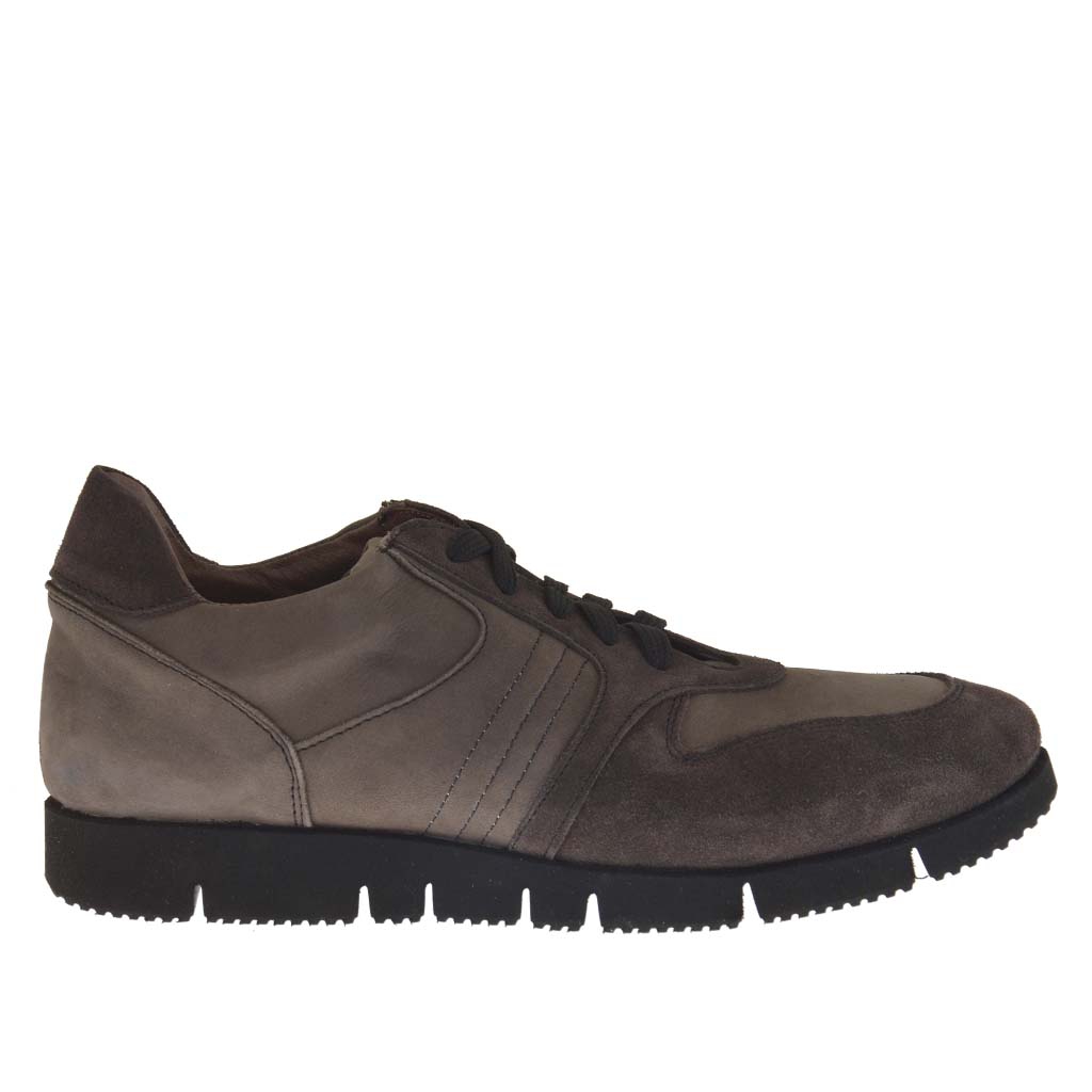 Freizeitschuh für Herren mit Schnürsenkeln aus grauem und taupefarbenem Wild- und Nubukleder