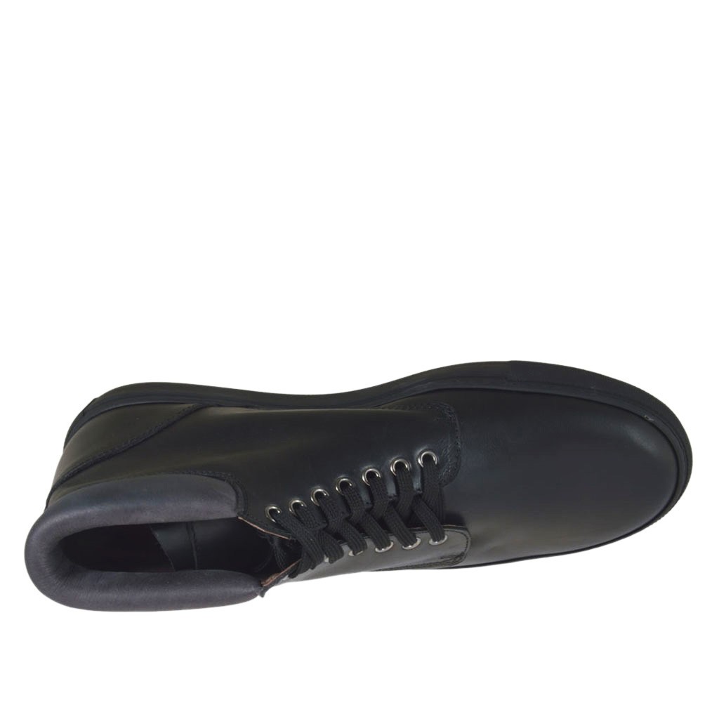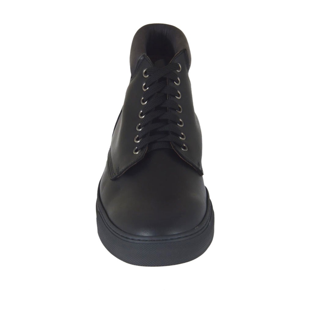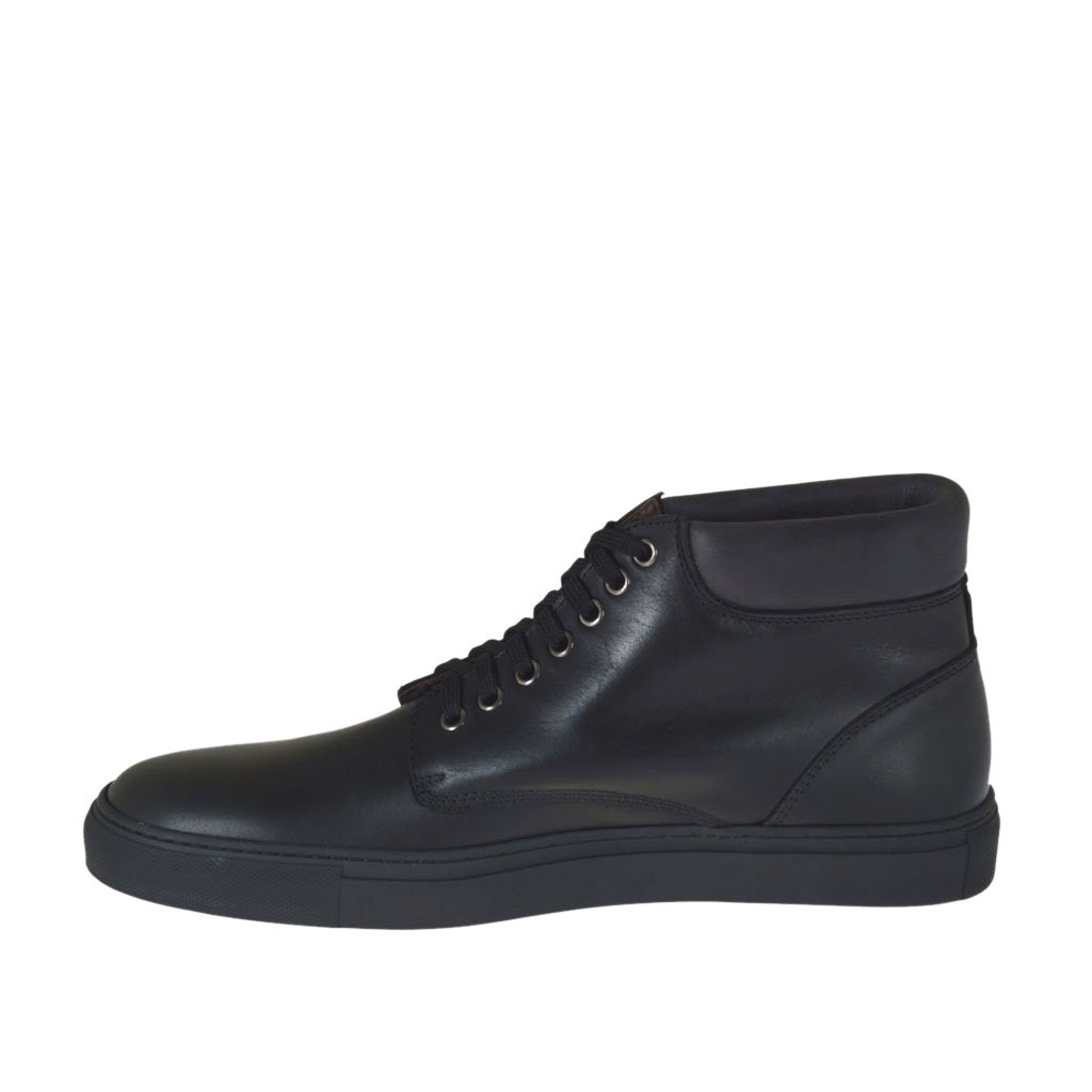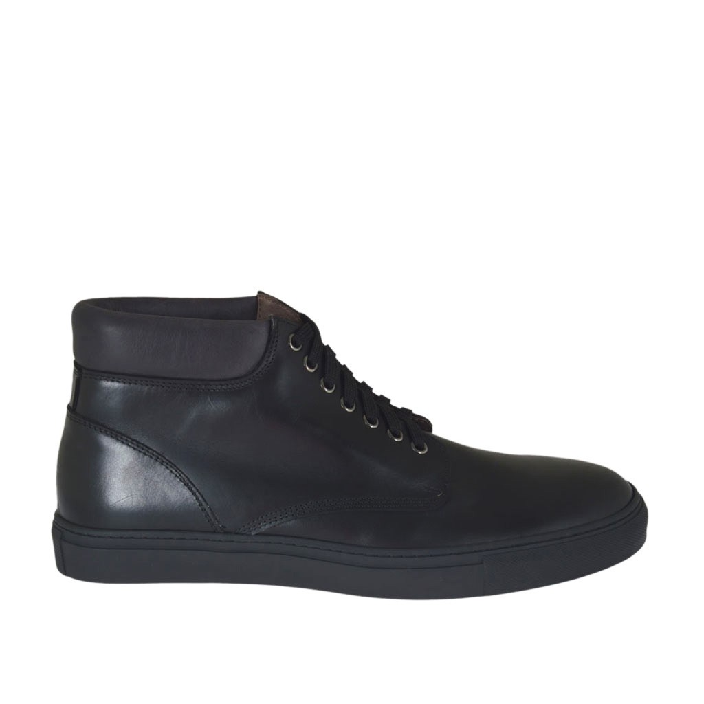 Knöchelhoher Freizeitschuh für Herren mit Schnürsenkeln aus schwarzem Leder