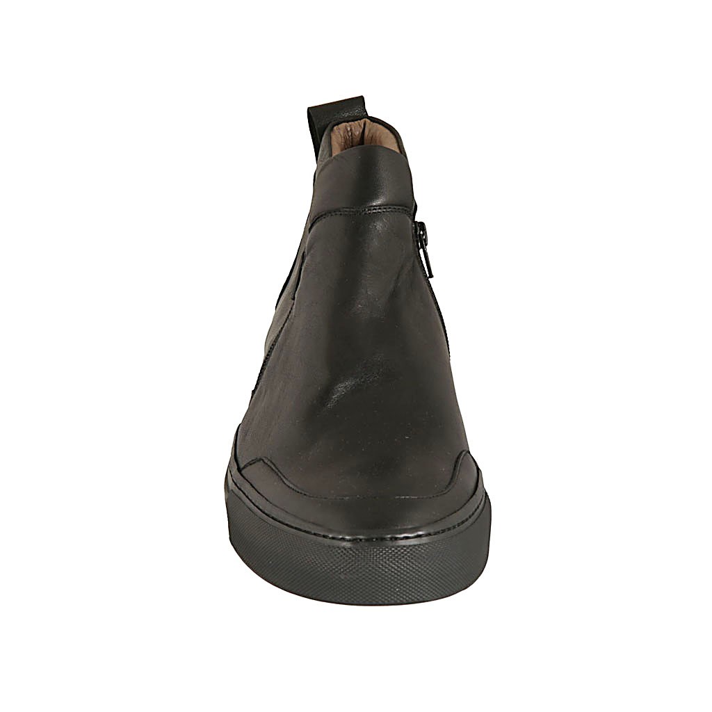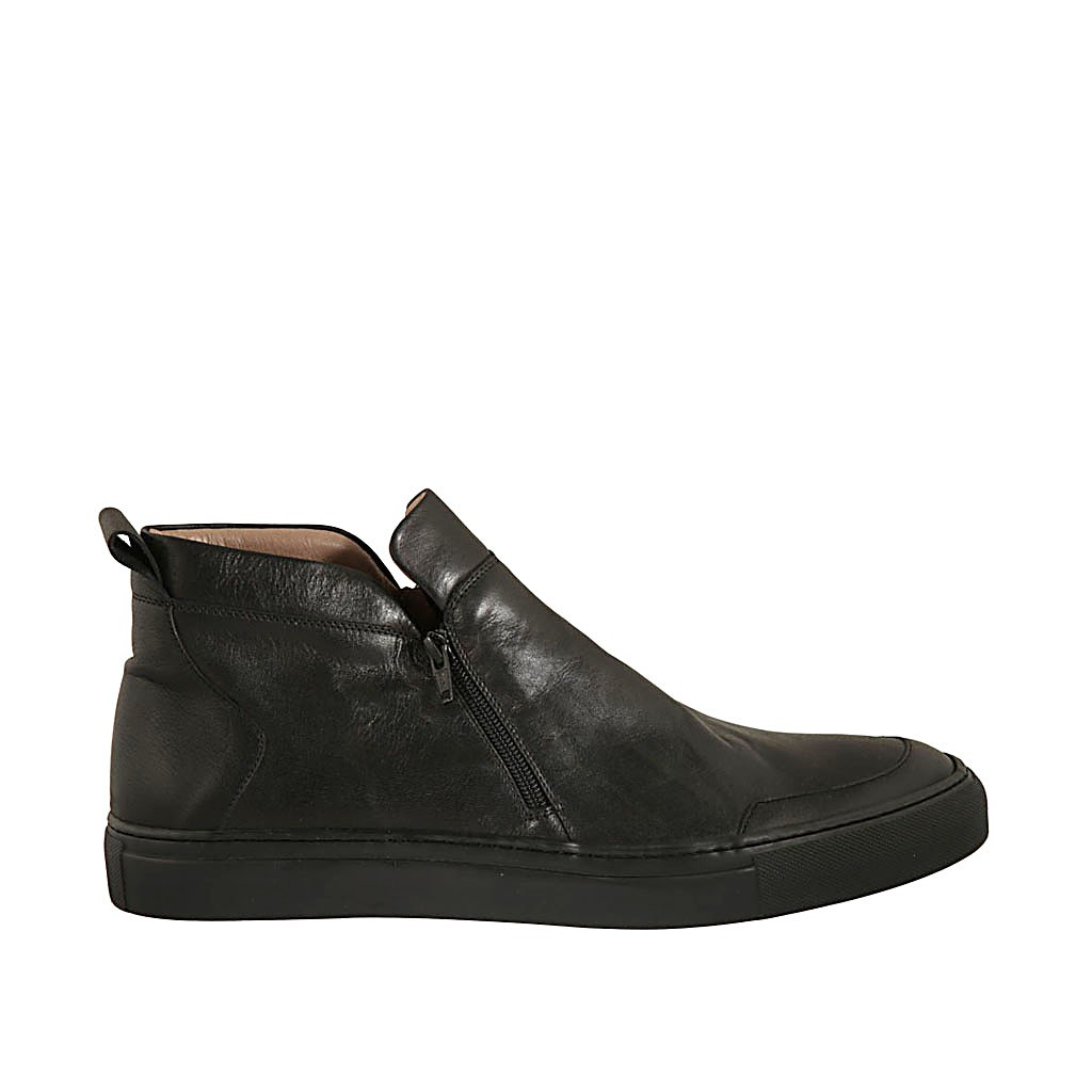 Freizeitschuh für Herren mit Reißverschlüssen aus schwarzem Leder