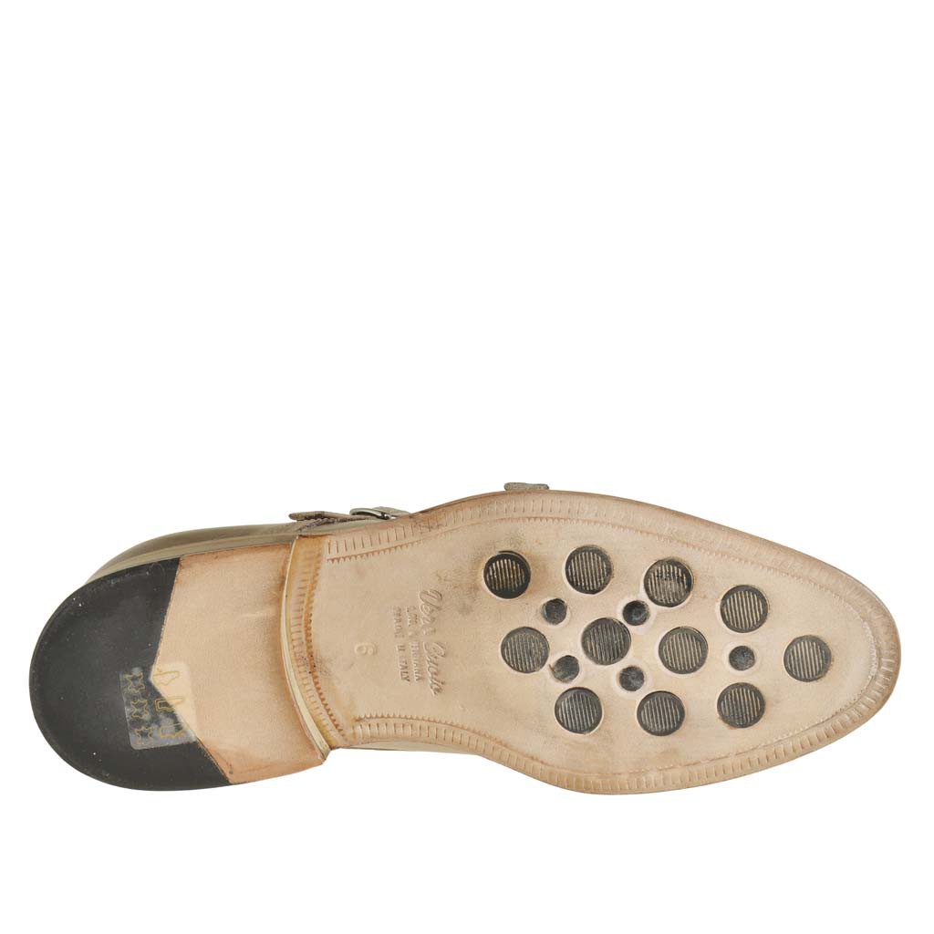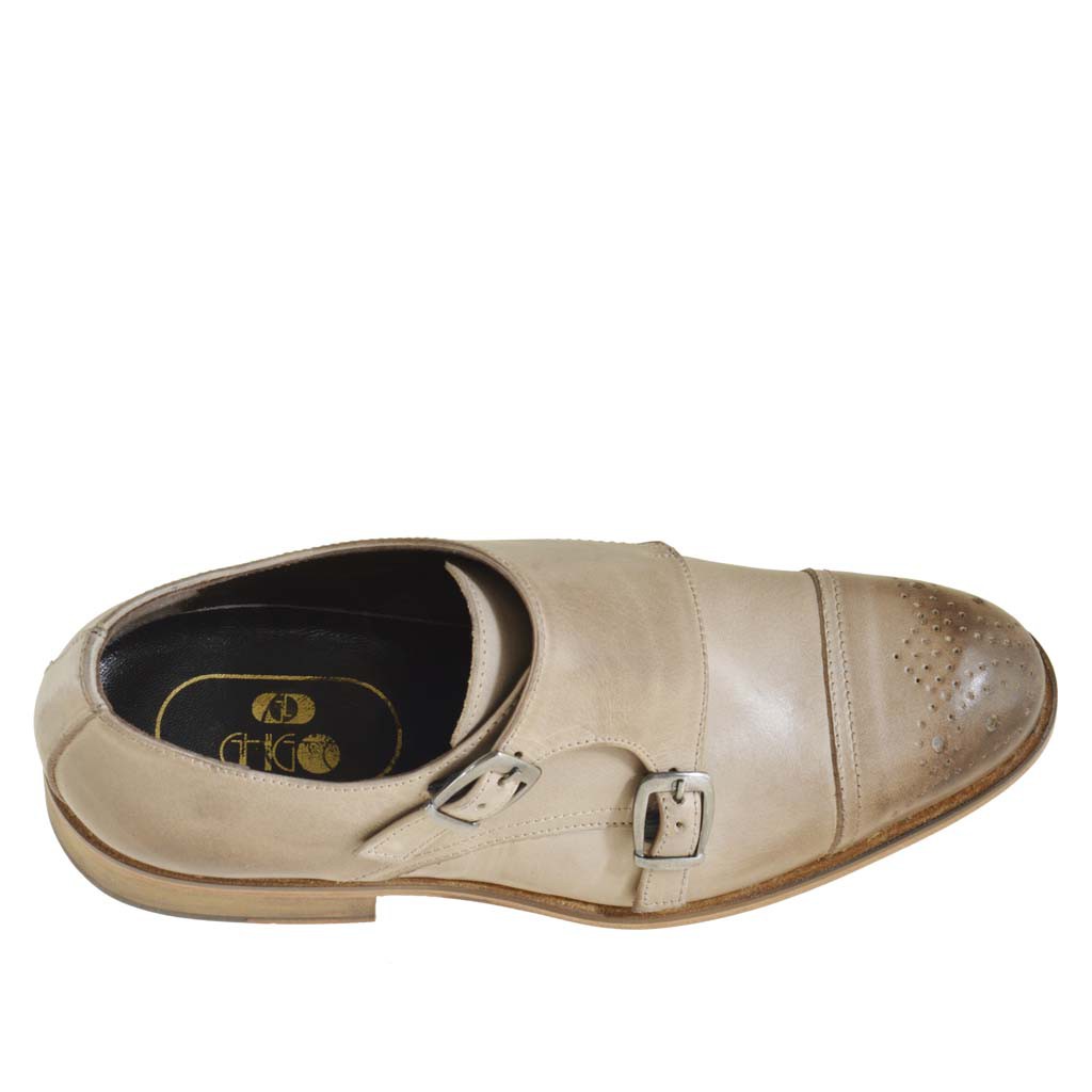 Elegante Herrenschuhe mit zwei Schnallen und Kappe aus beigem Leder