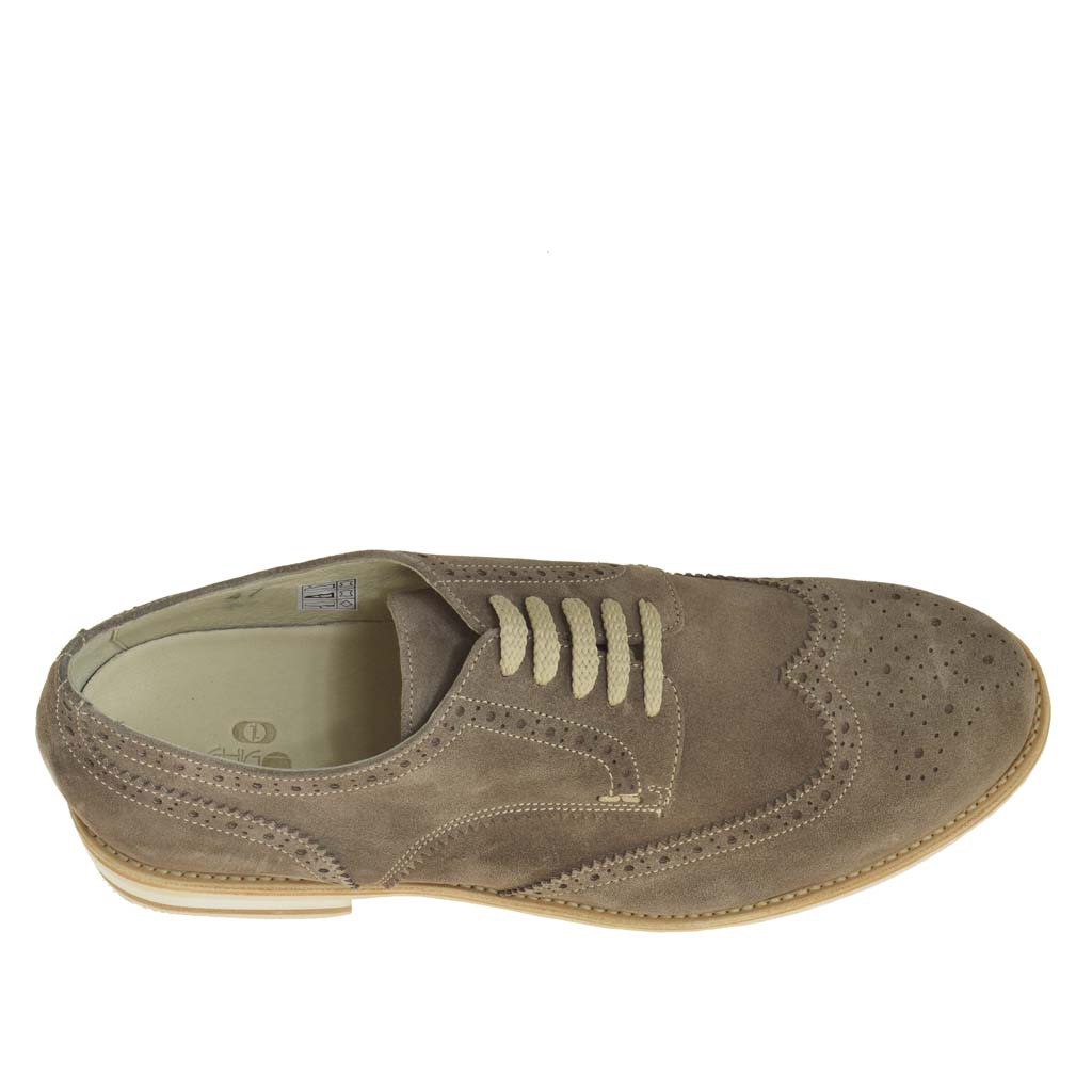 Freizeitschuh im Derbystil mit Schnürsenkel und Broguemuster für Herren aus sandbeigem Wildleder