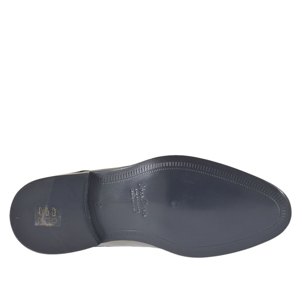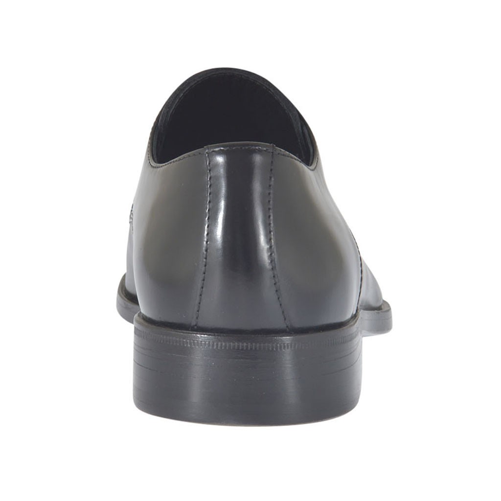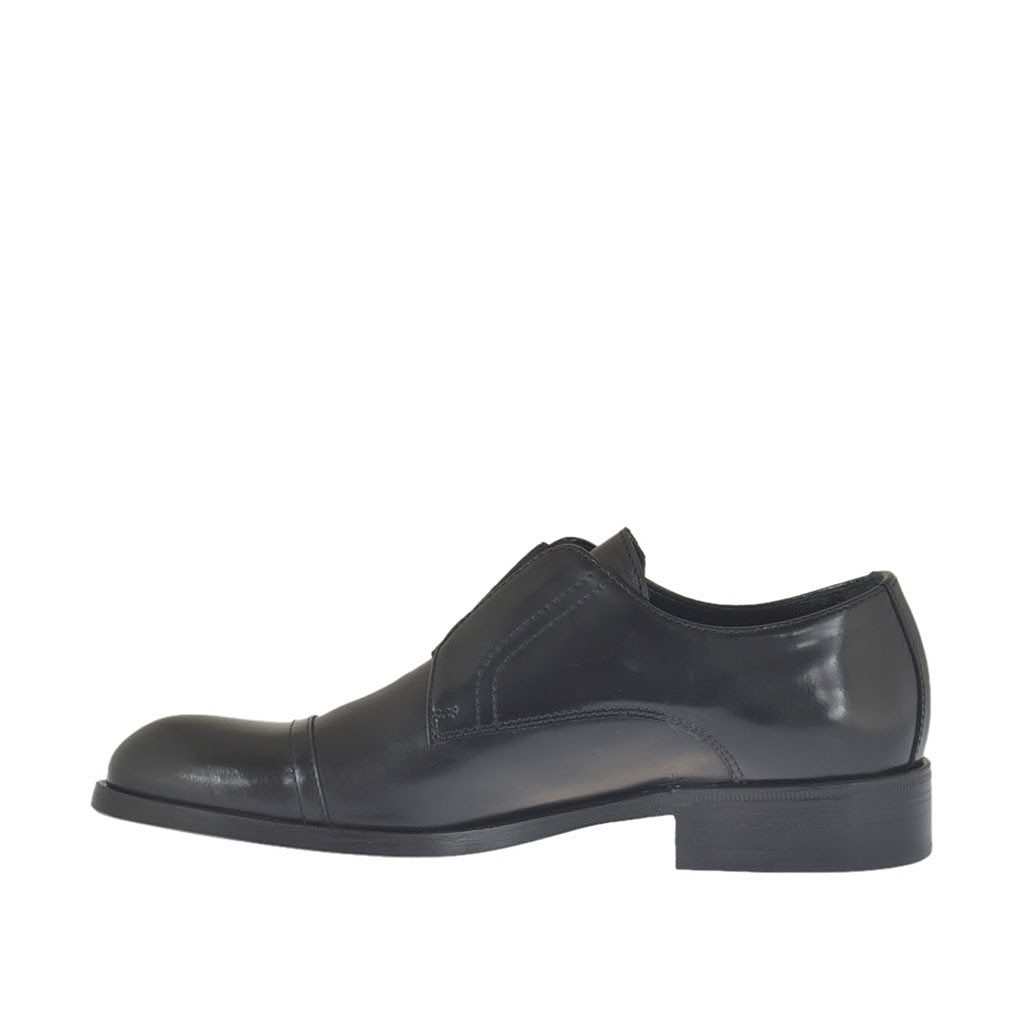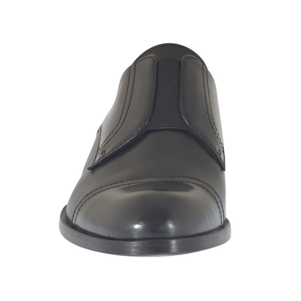 Herrenschuh mit Gummiband, aus schwarzem Leder und gebürstetem Leder, Ledersohle, Lederfutter. Erhältlich in kleinen und großen Größen.