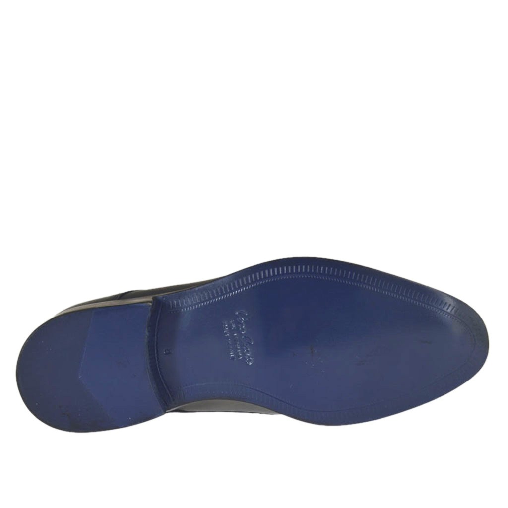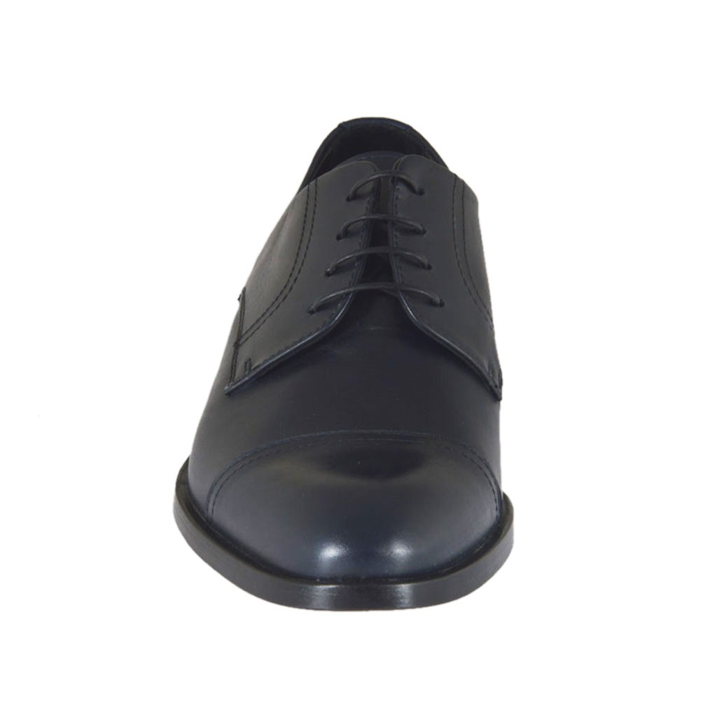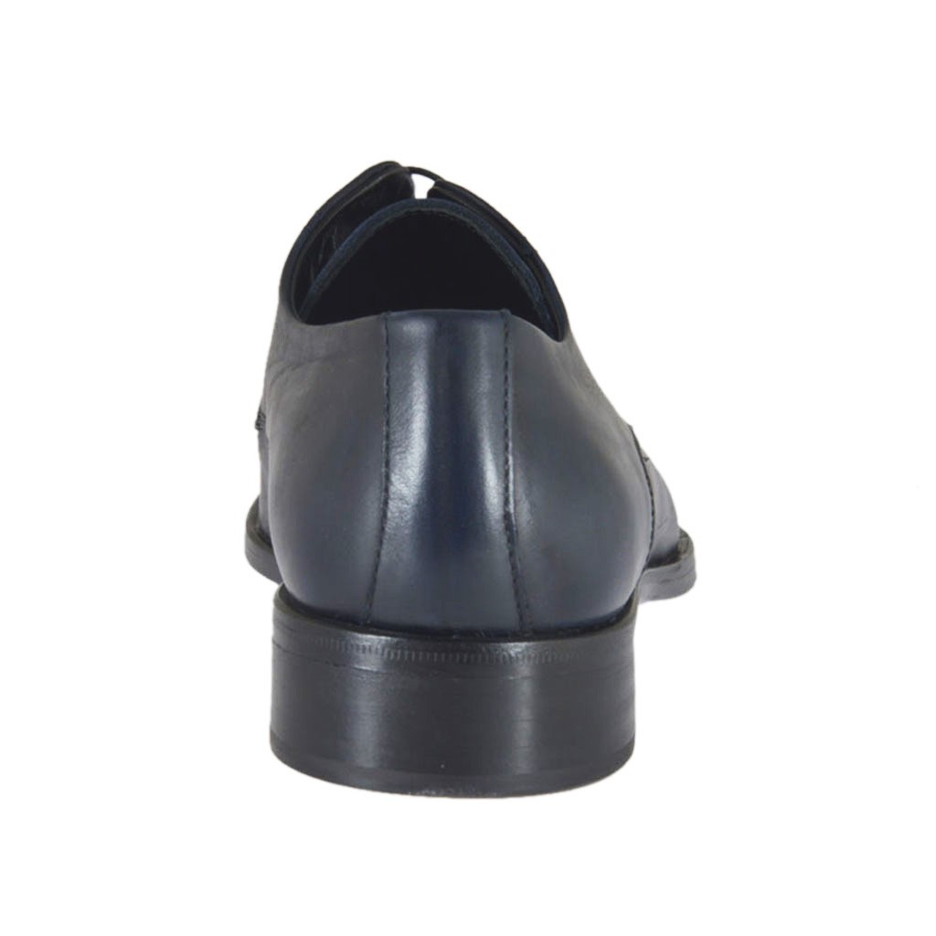 Eleganter Herrenderbyschuh mit Schnürsenkeln und Kappe aus blauem Leder