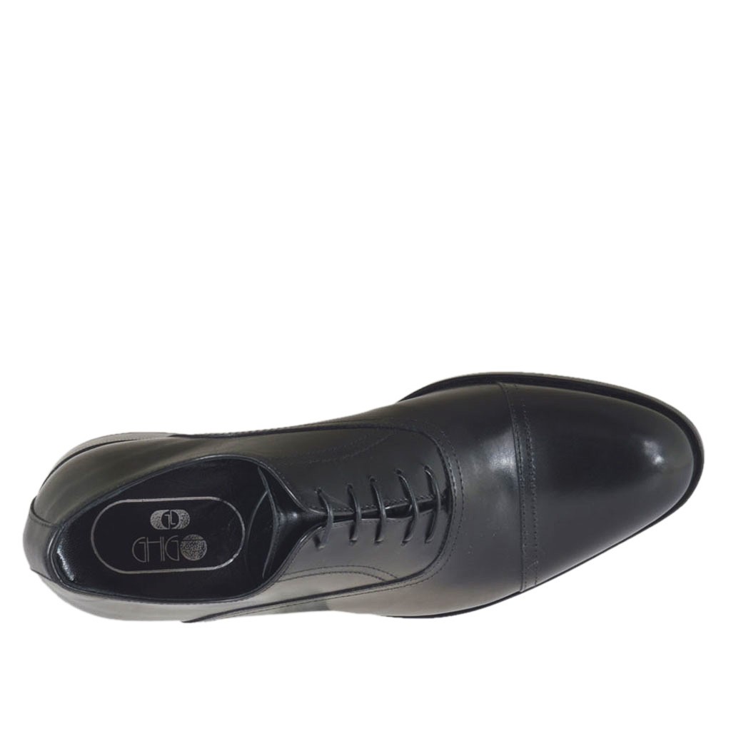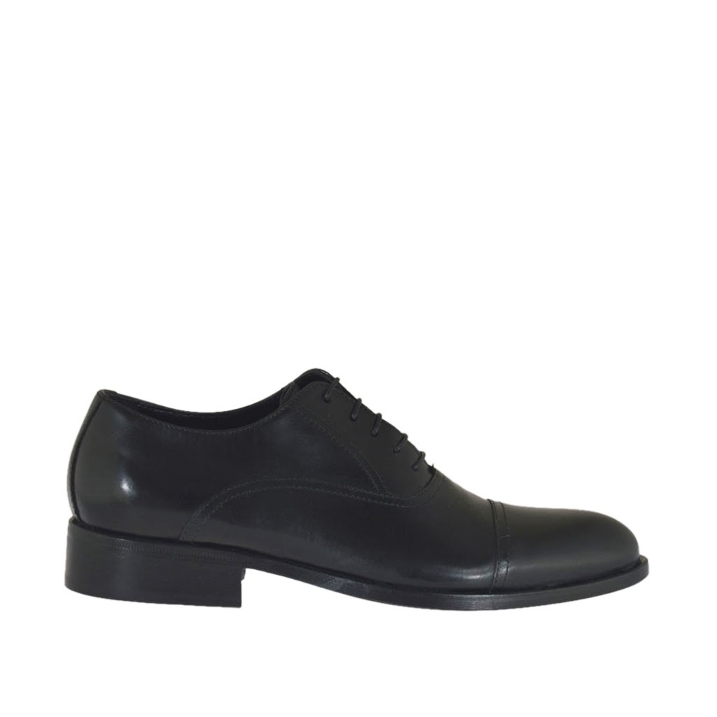 Eleganter Herrenoxfordschuh mit Schnürsenkeln und Kappe aus schwarzem Leder