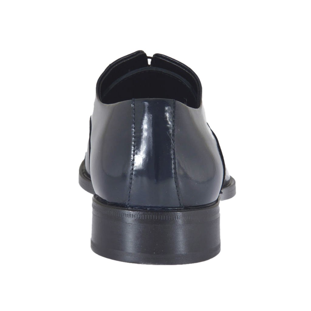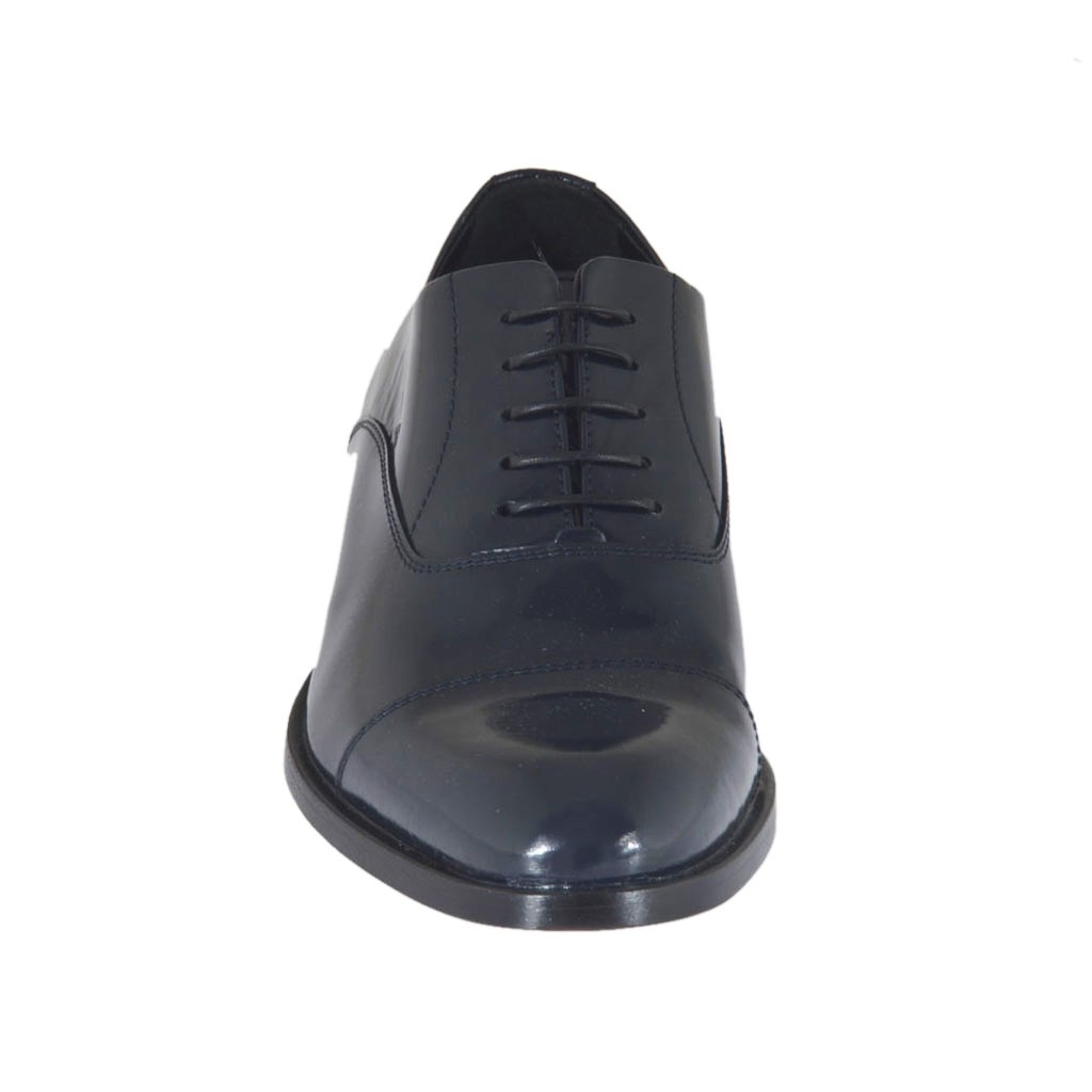 Eleganter Oxfordschuh mit Schnürsenkeln und Kappe für Herren aus blauem gebürstetem Leder