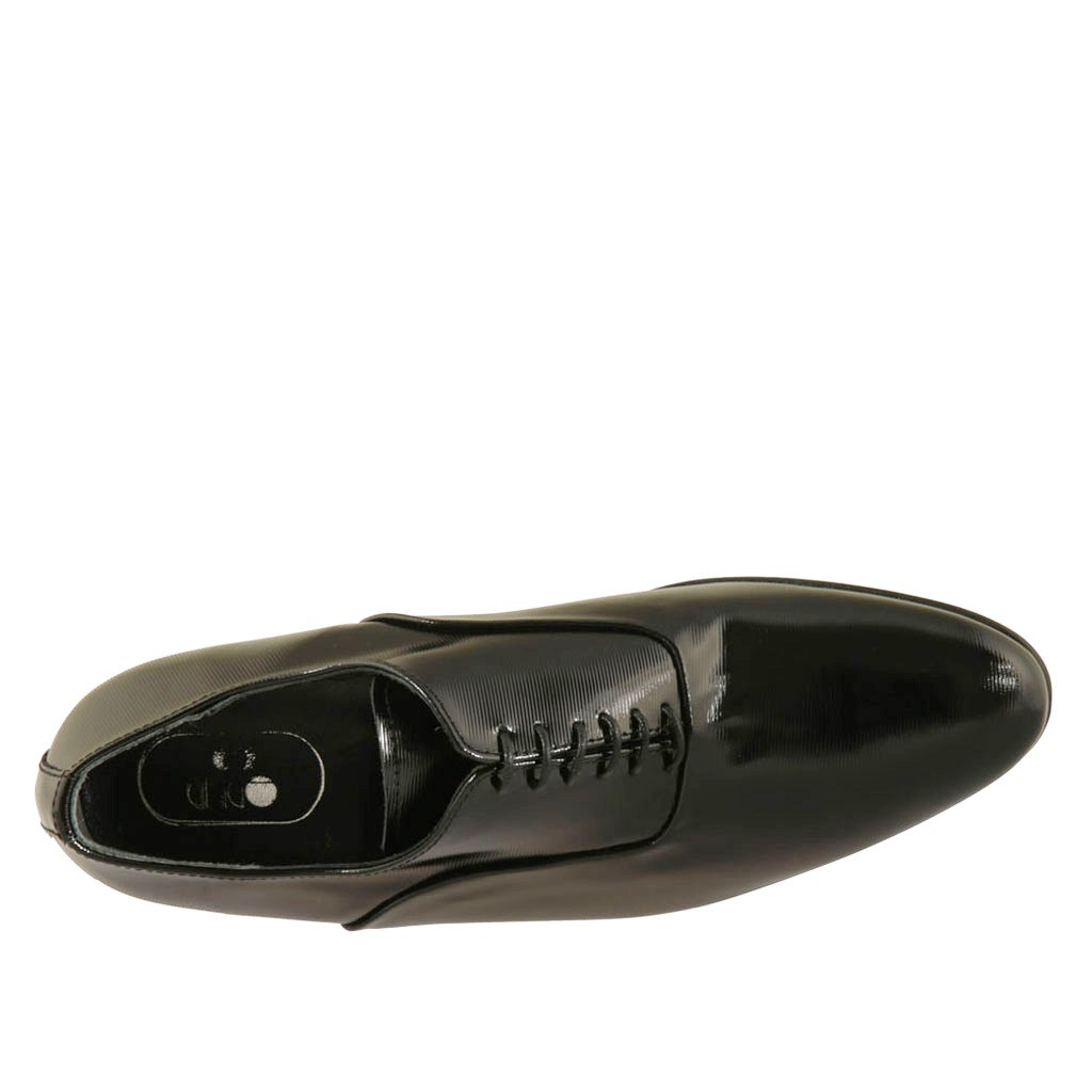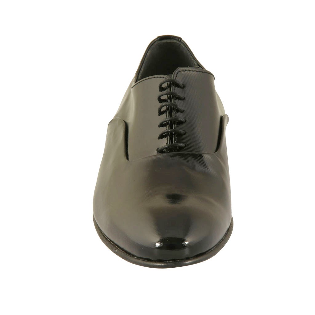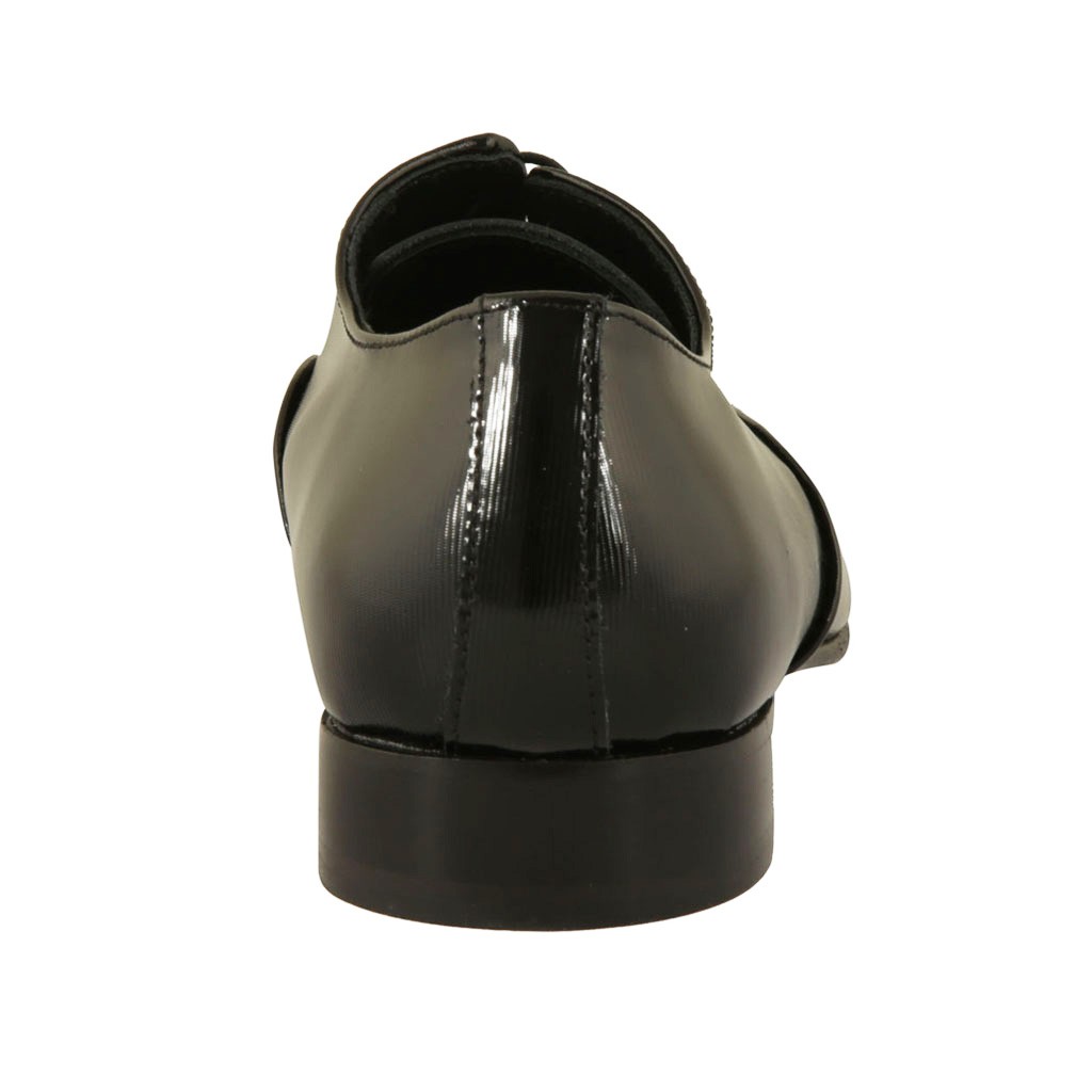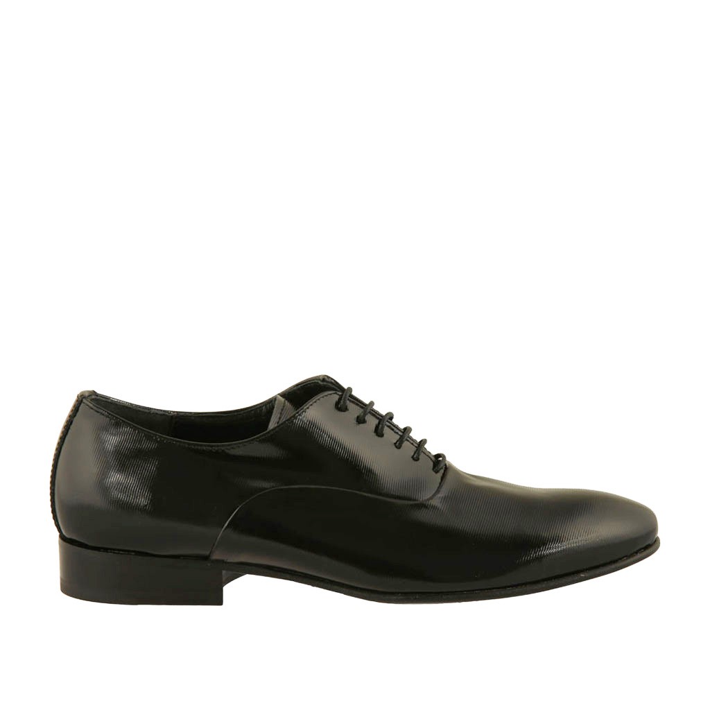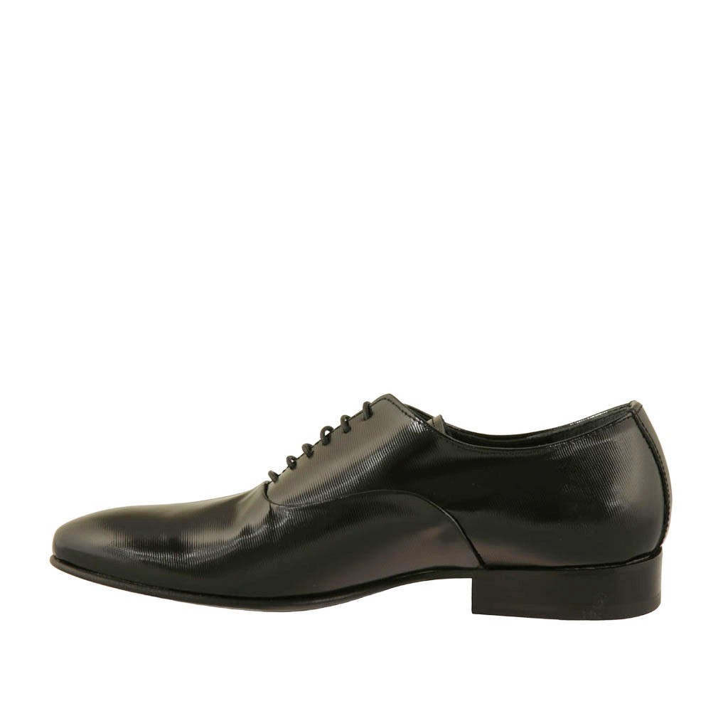 Eleganter Herrenoxfordschuh mit Schnürsenkeln aus schwarzem bedrucktem Lackleder