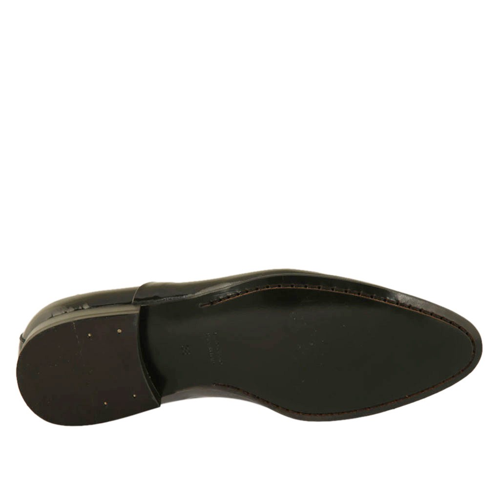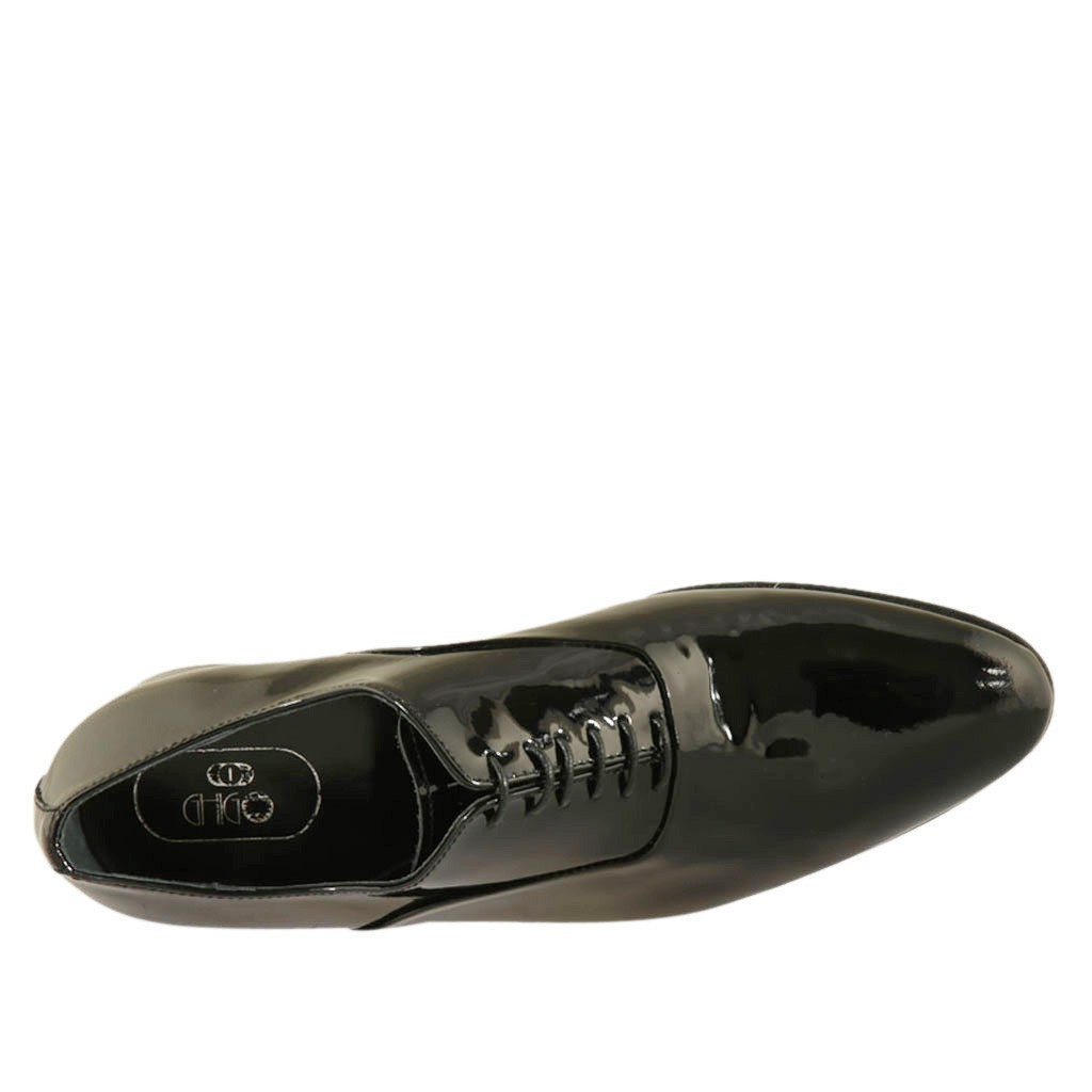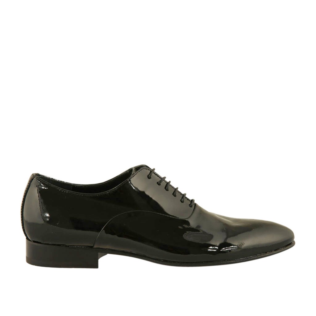 Eleganter Herrenoxfordschuh mit Schnürsenkeln aus schwarzem glattem Lackleder