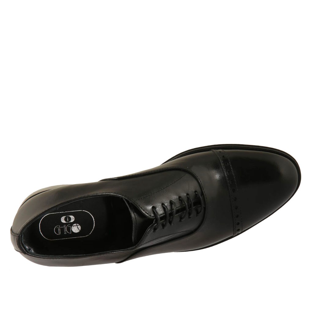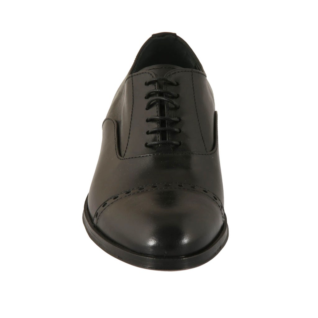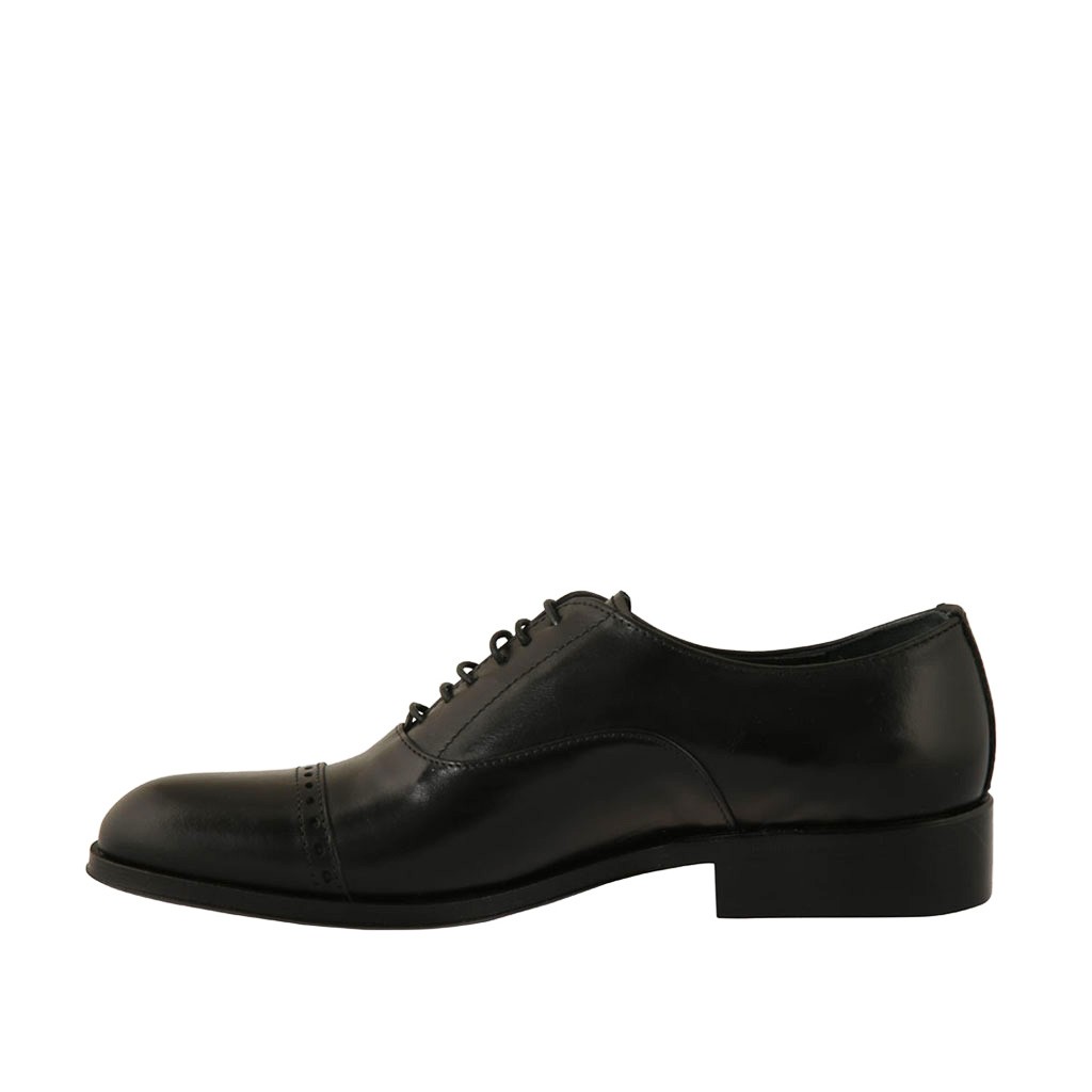 Herrenoxfordschuh mit Schnürsenkeln und Kappe aus schwarzem Leder