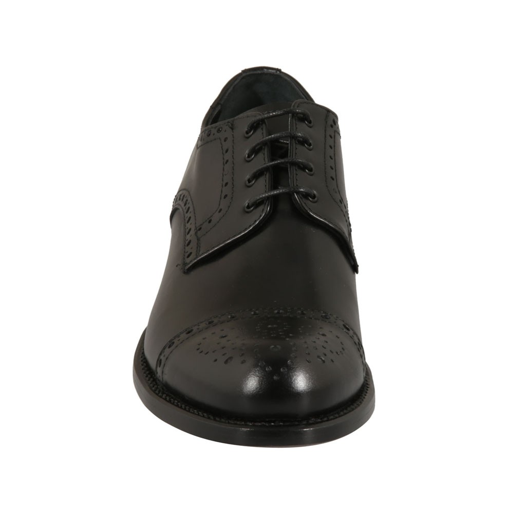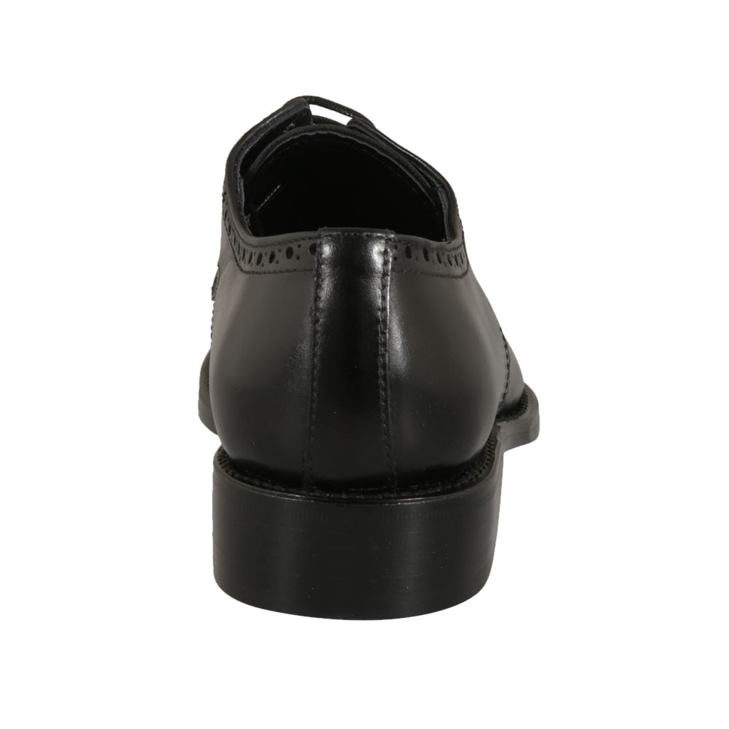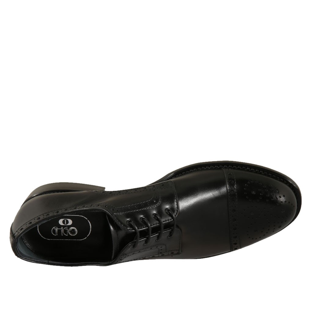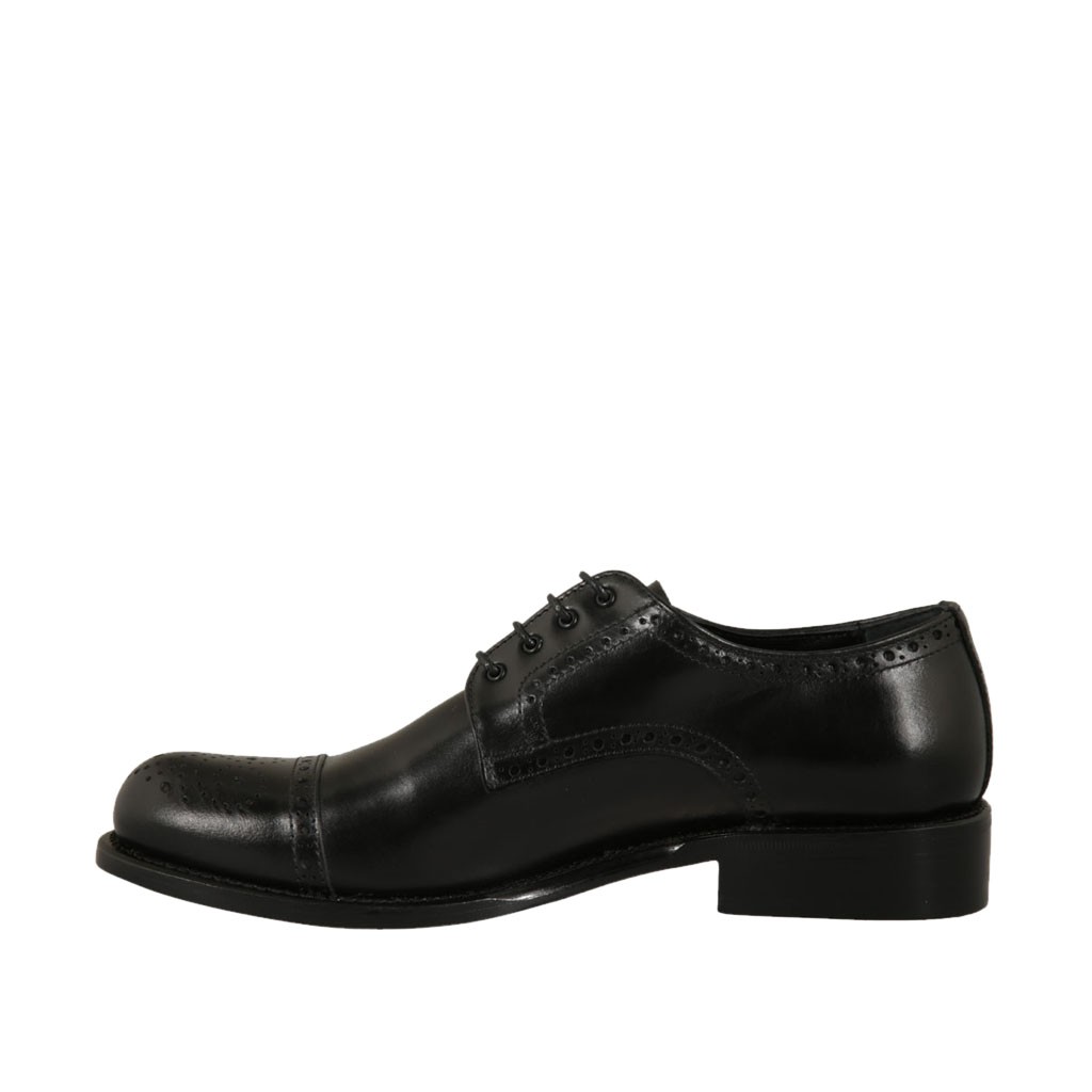 Herrenderbyschuh mit Schnürsenkeln und mit Blumenmuster perforierter Kappe aus schwarzem Leder