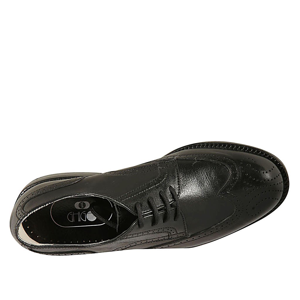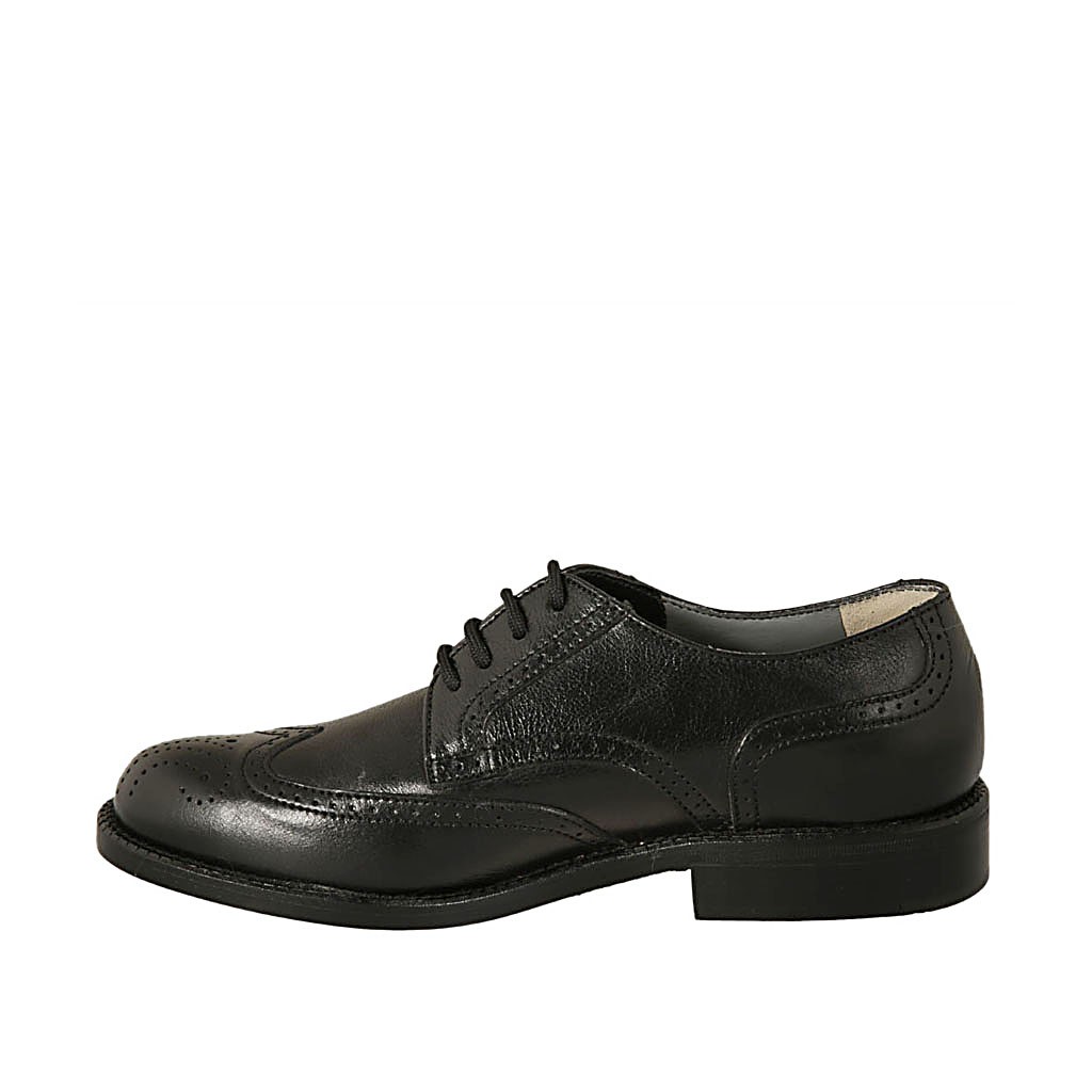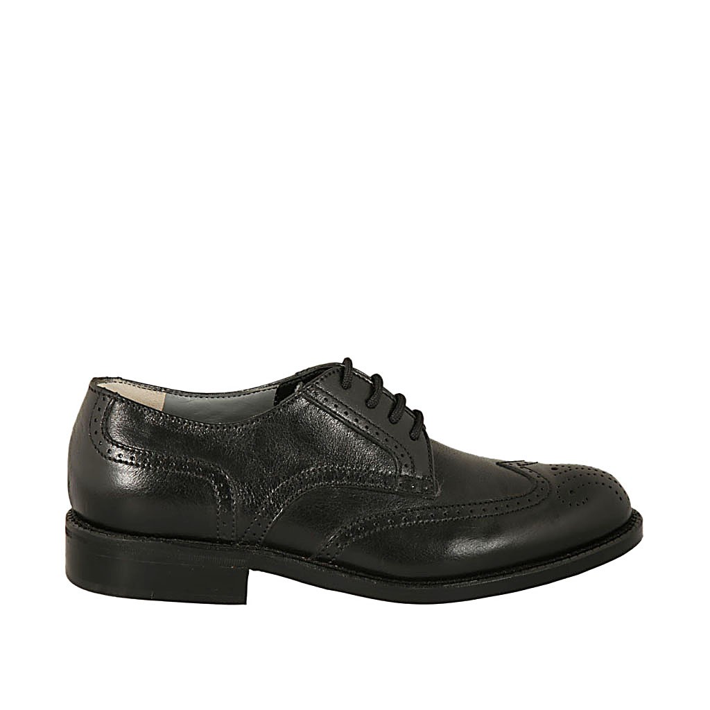 Eleganter Herrenderbyschuh aus schwarzem Leder mit Schnüren und Broguedekoration