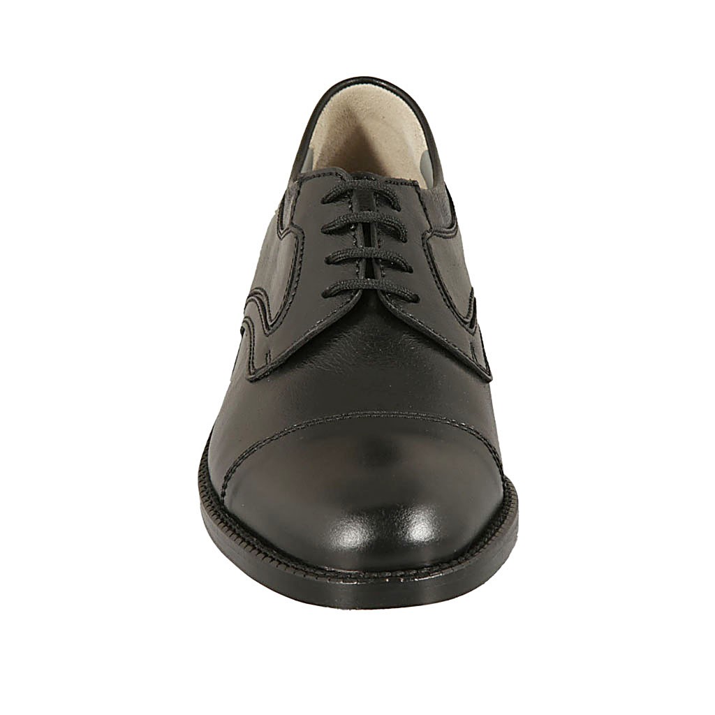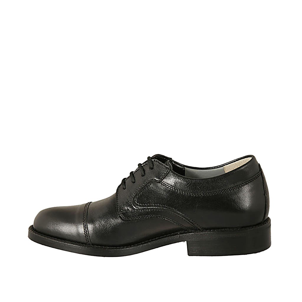 Derbyschuh mit Schnürsenkeln und Kappe aus schwarzem Leder für Herren