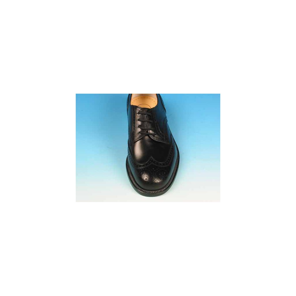 Derbyschuh mit Schnürsenkeln mit Dekoration für Herren, aus schwarzem Leder, Ledersohle, Lederfutter.