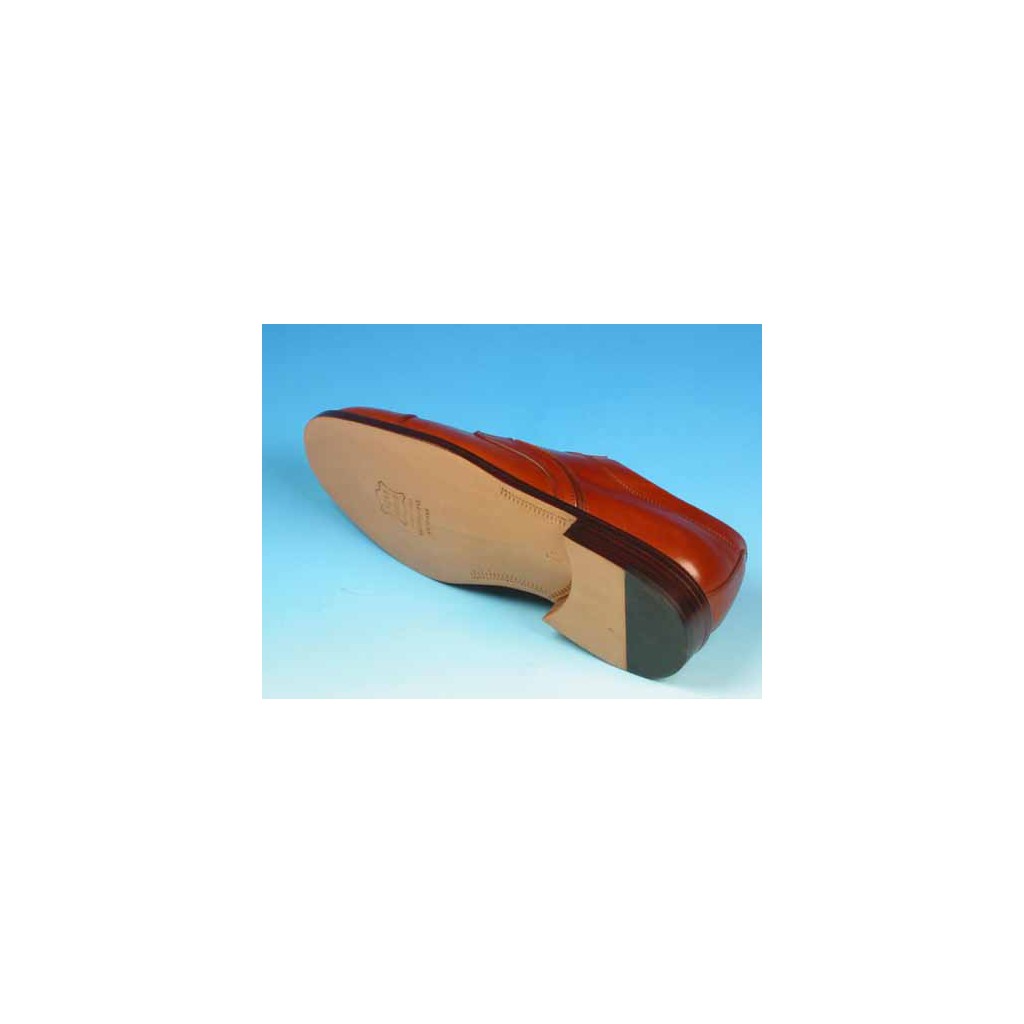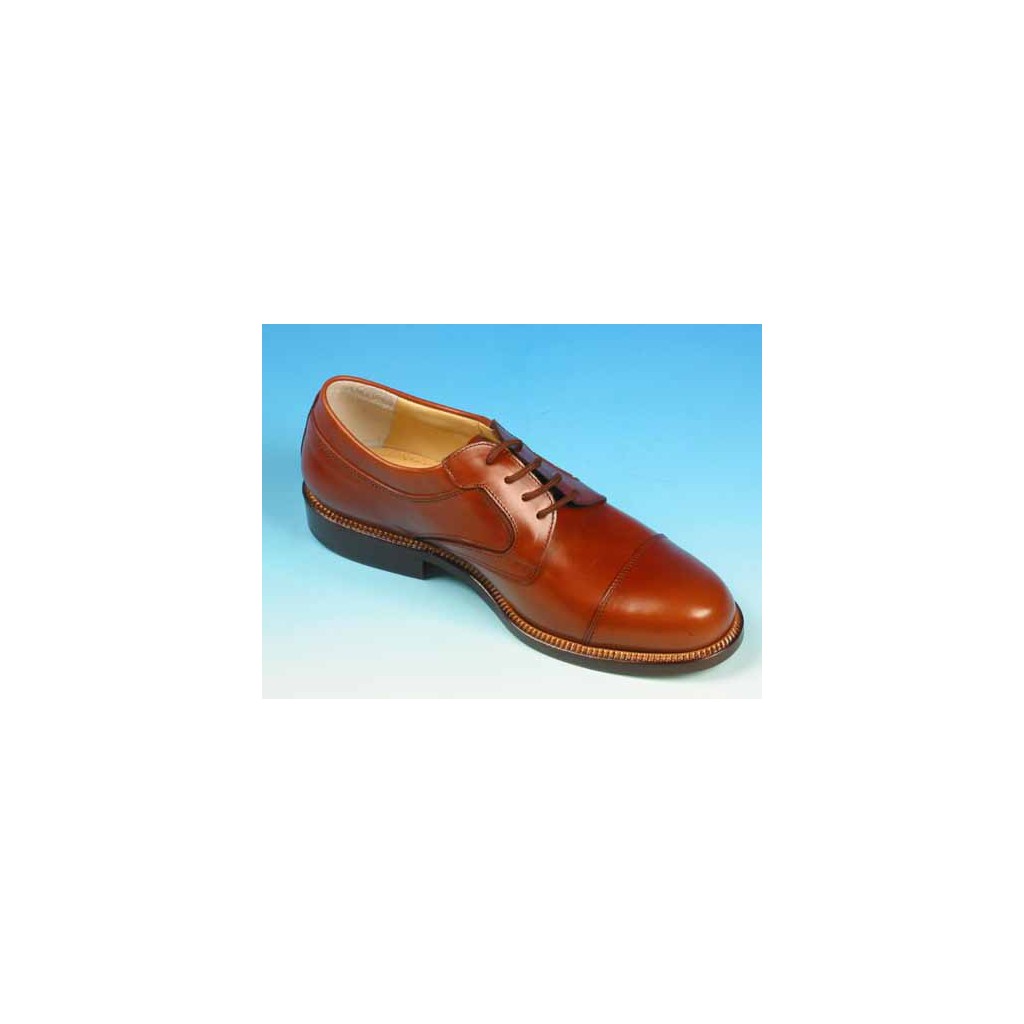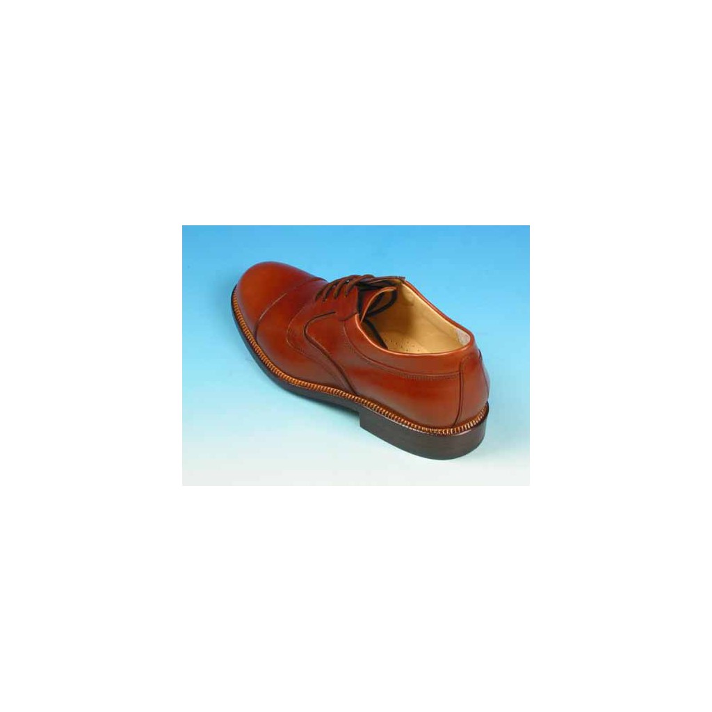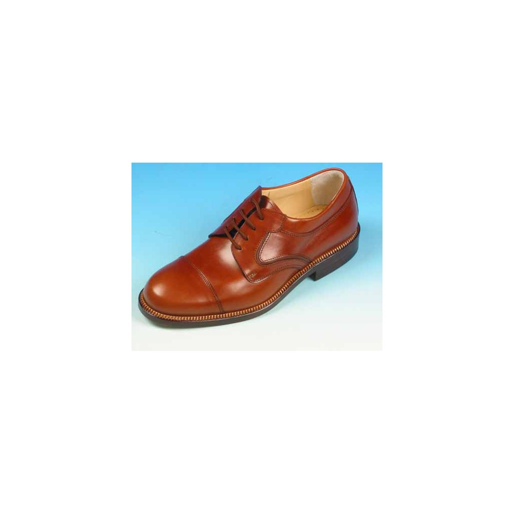 Schuh mit Schnürsenkeln, aus hellbraunfarbigem Leder, Ledersohle , Lederfutter.
