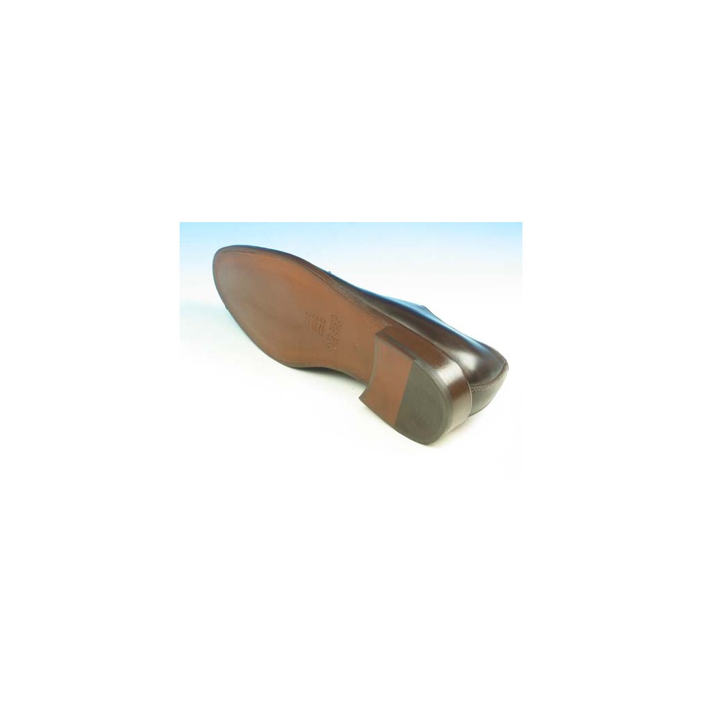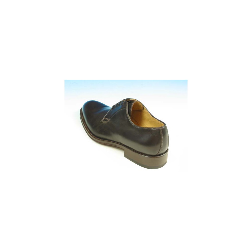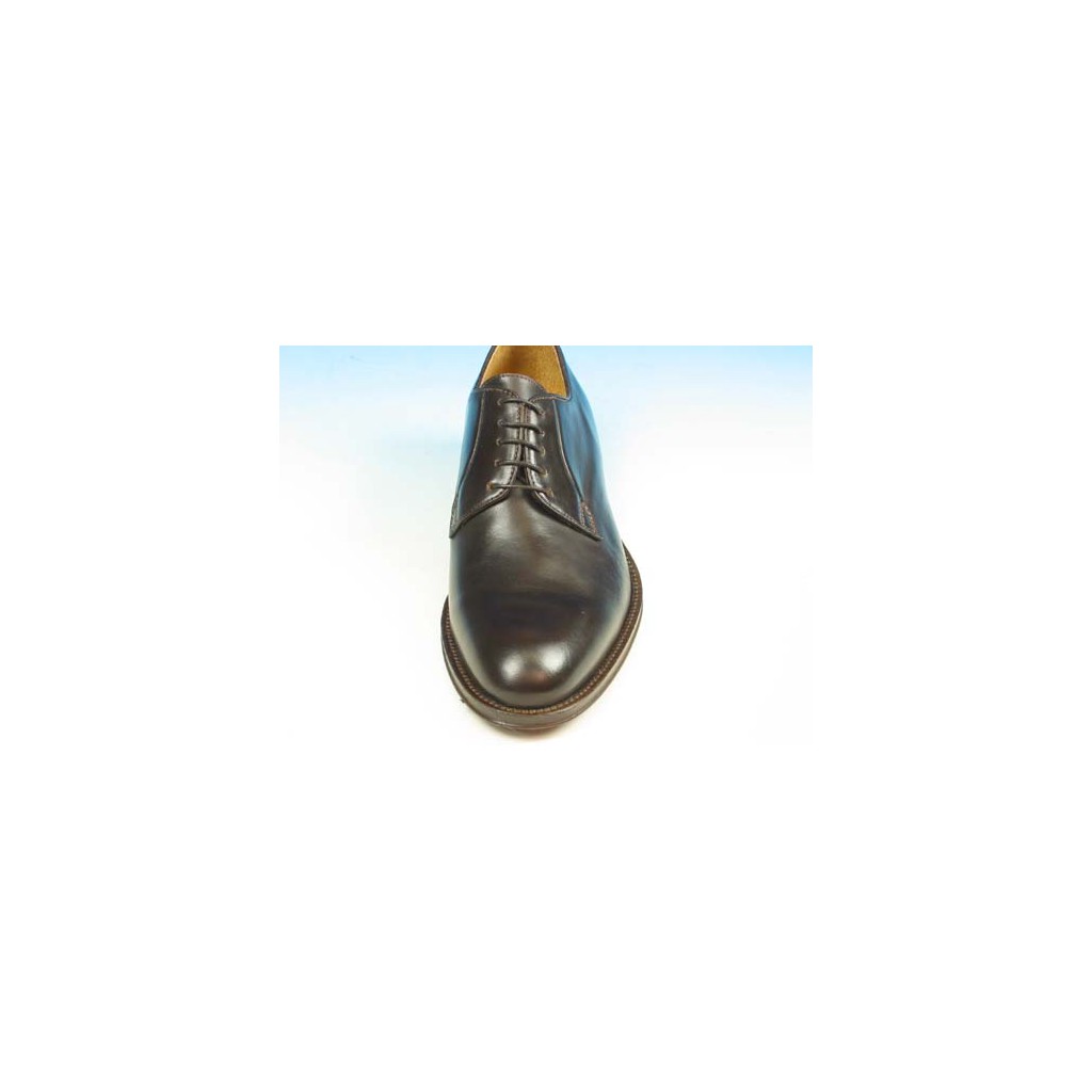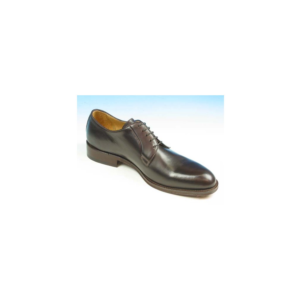 Derbyherrenschuh mit Schnürsenkeln, aus dunkelbraunem Leder, Ledersohle, Lederfutter.
