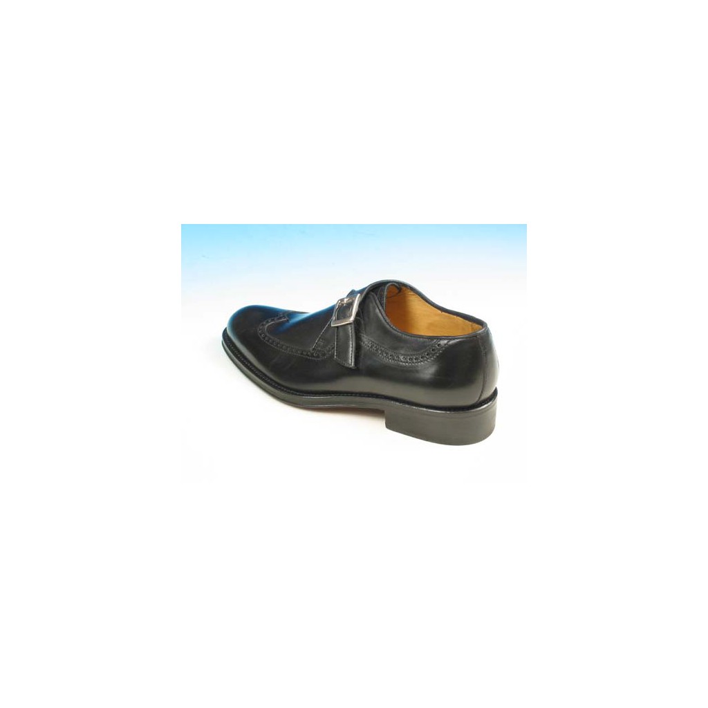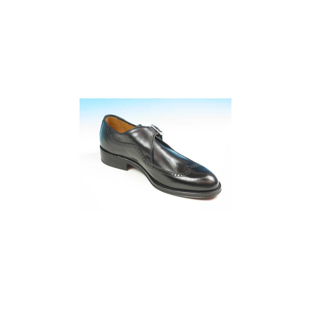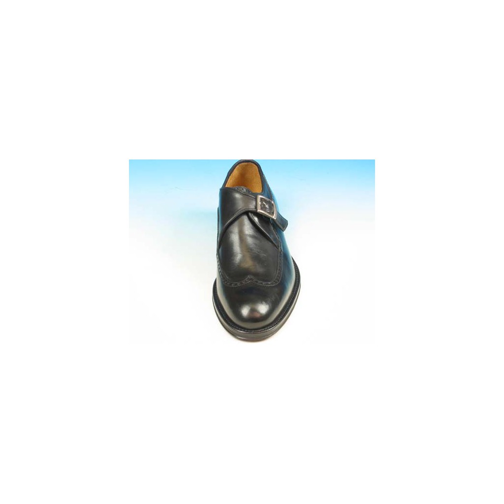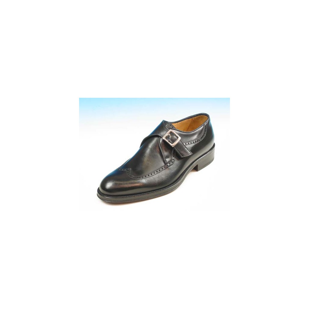 Eleganter Herrenschuh mit Schnalle aus schwarzem Leder, Ledersohle, Lederfutter.