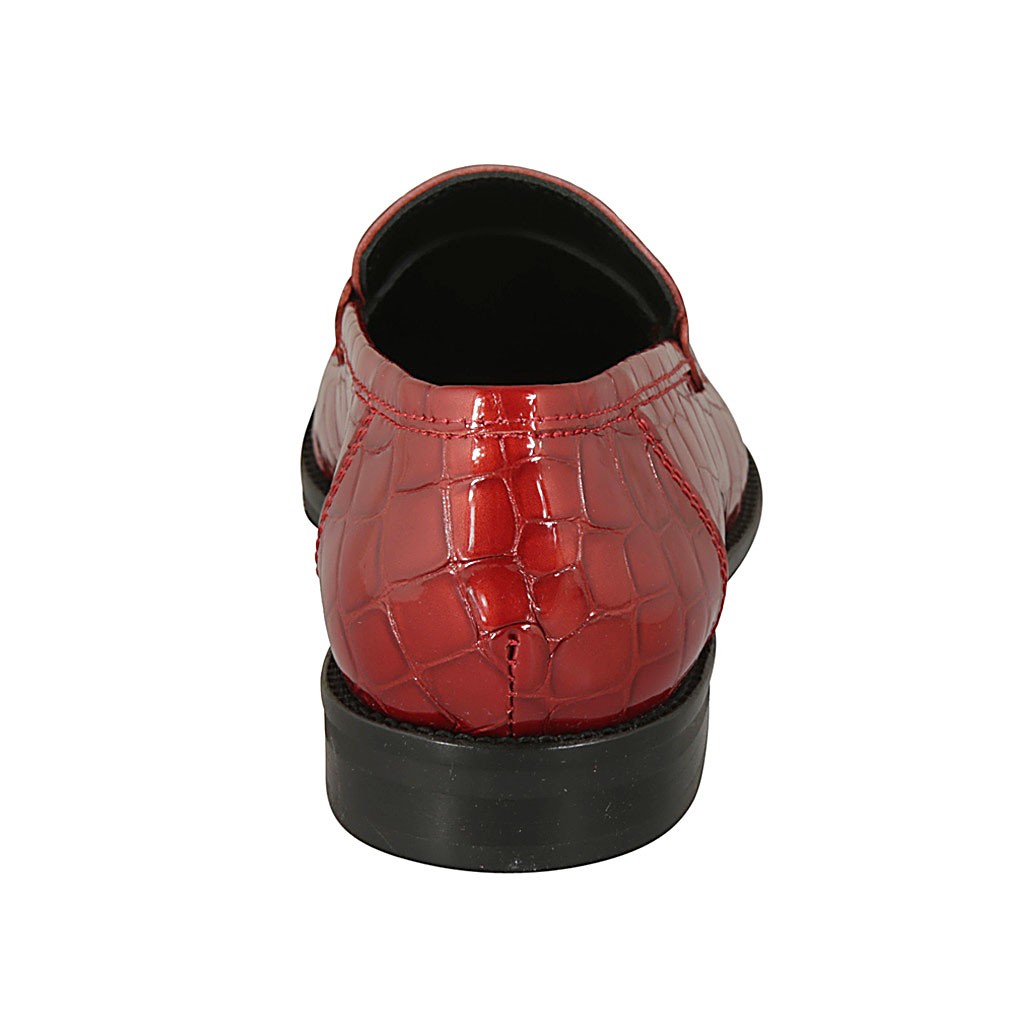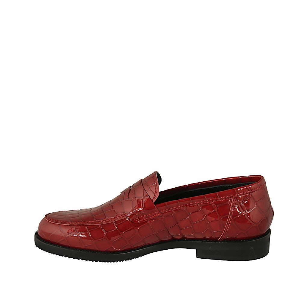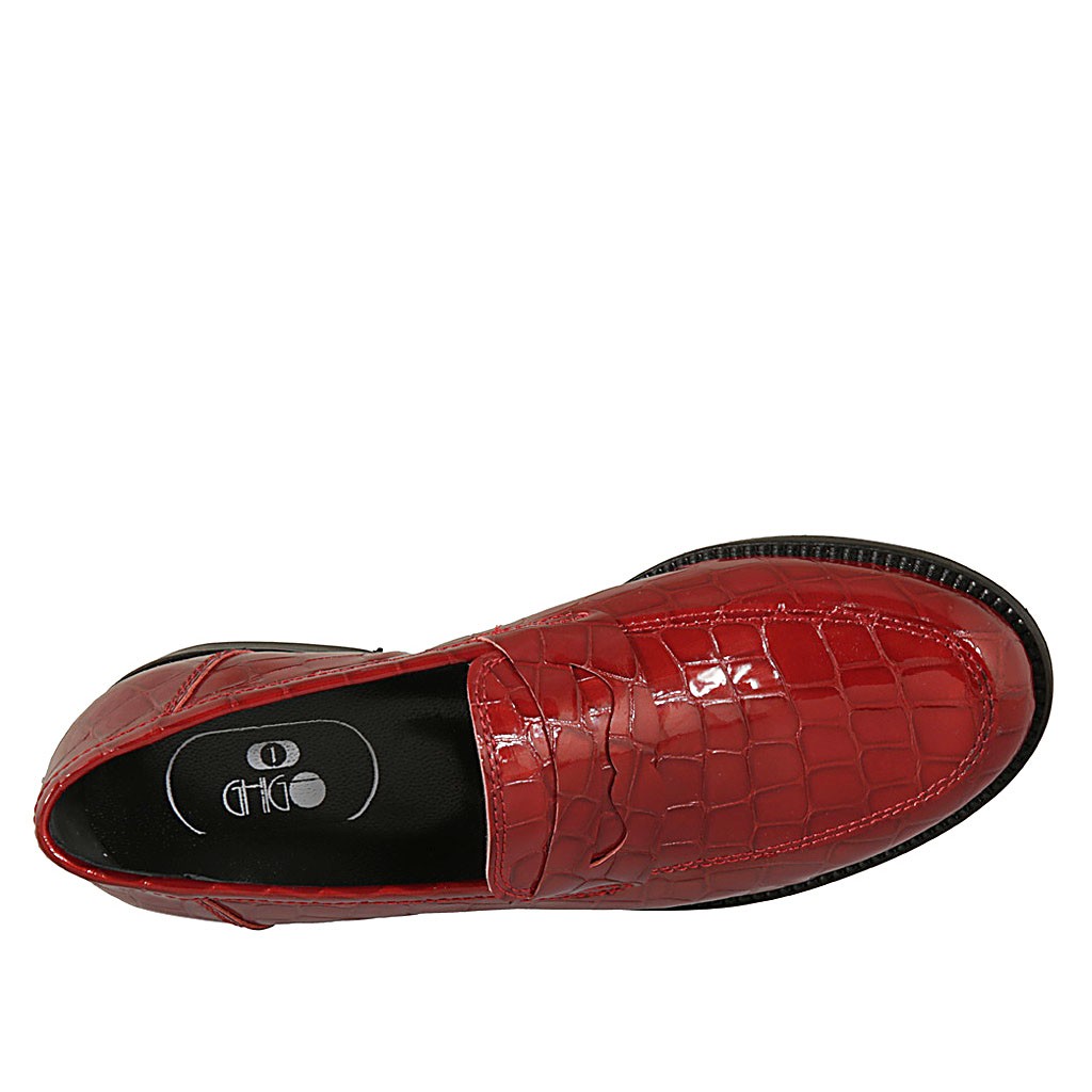 Damenmokassin aus rotem bedrucktem Lackleder mit Absatz 2