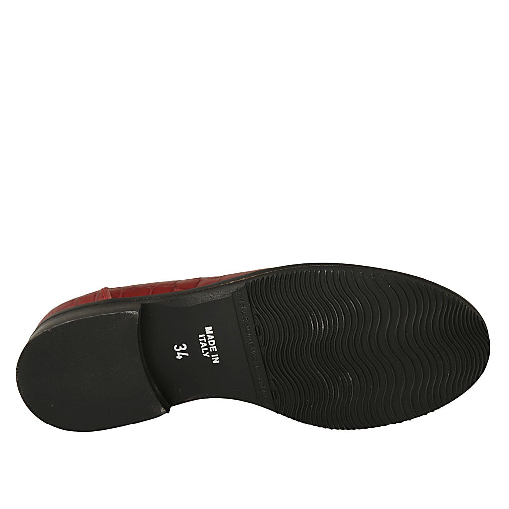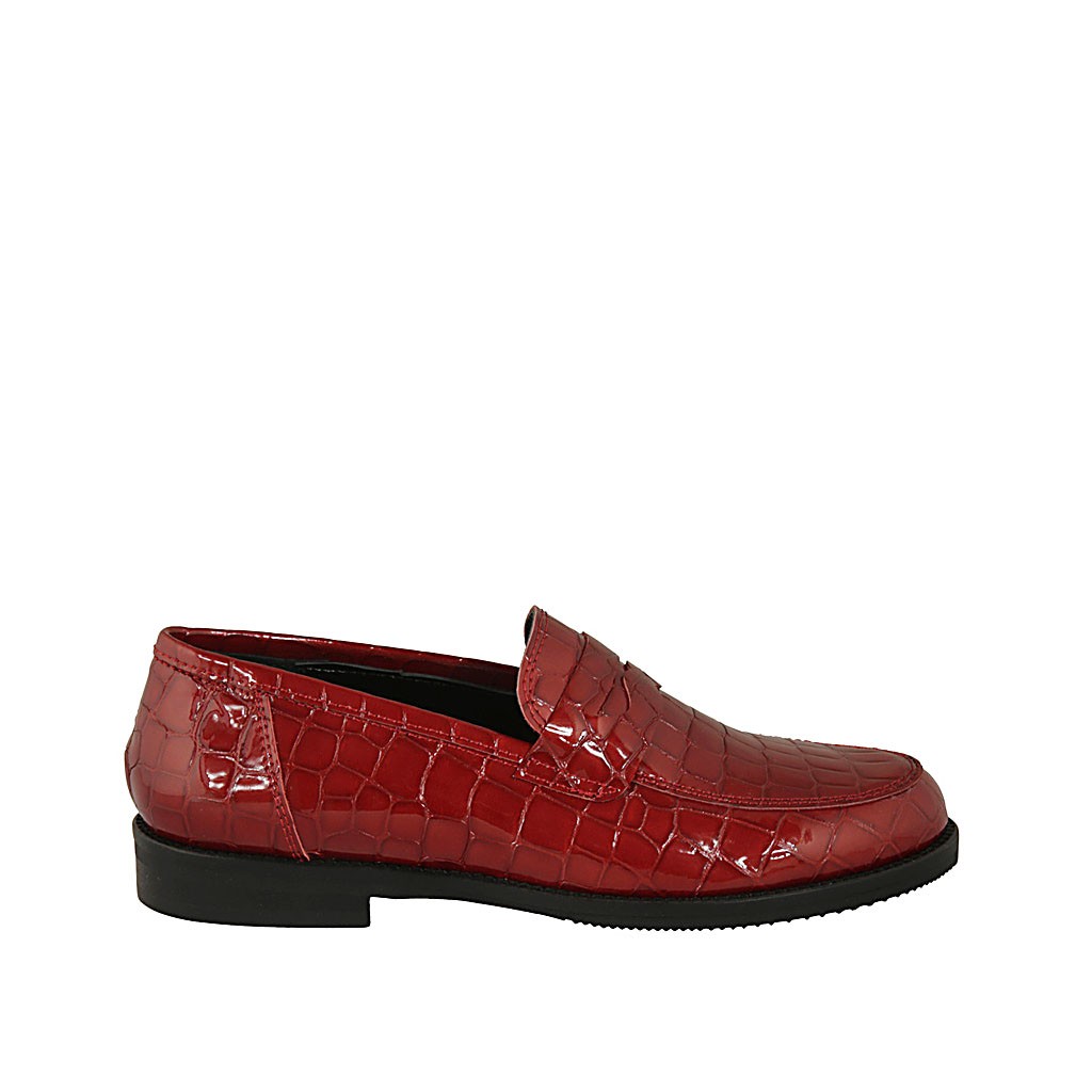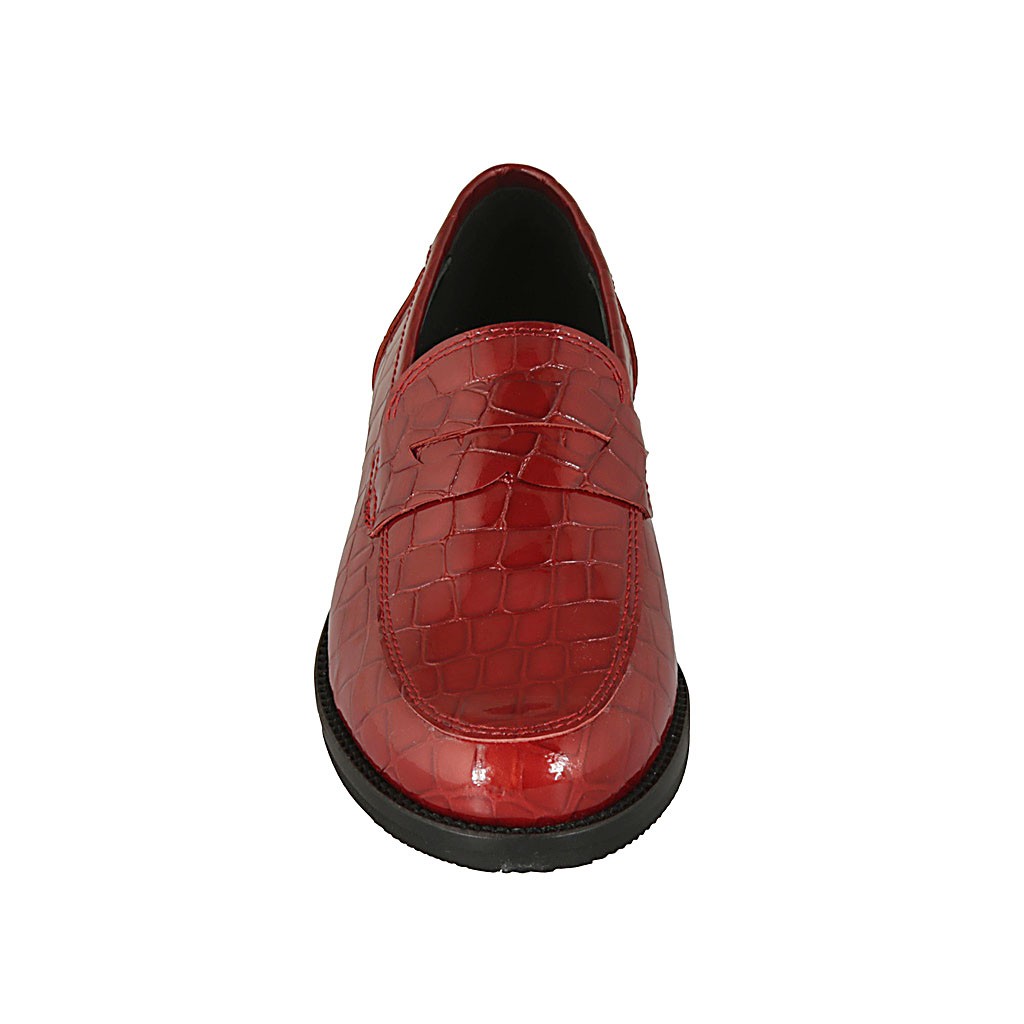 Damenmokassin aus rotem bedrucktem Lackleder mit Absatz 2