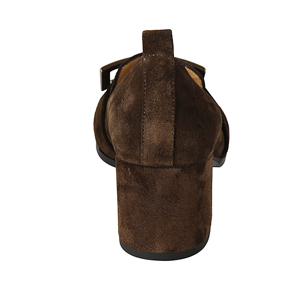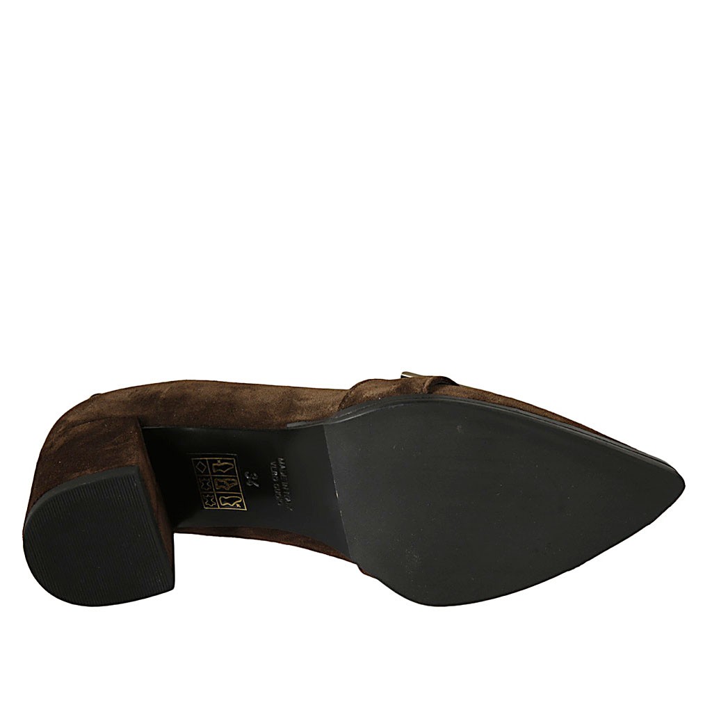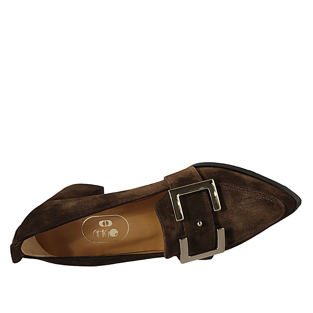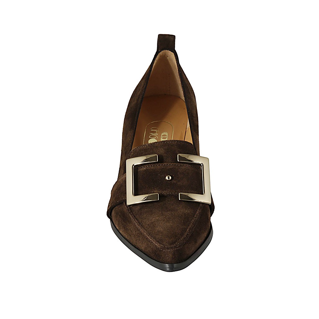 Damenmokassin mit Schnalle aus hellbraunem Wildleder Absatz 5