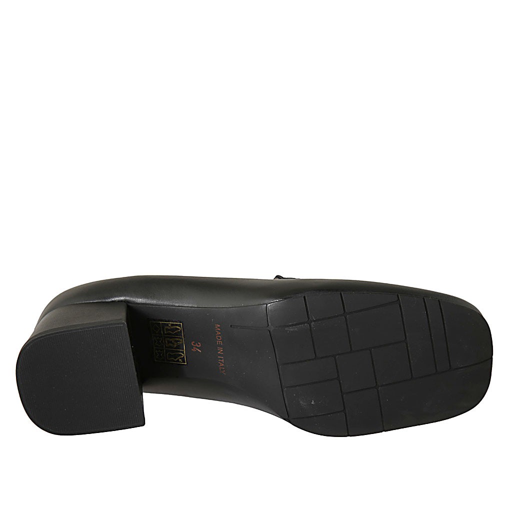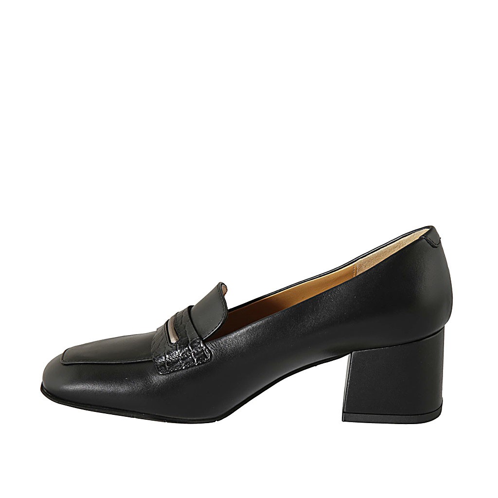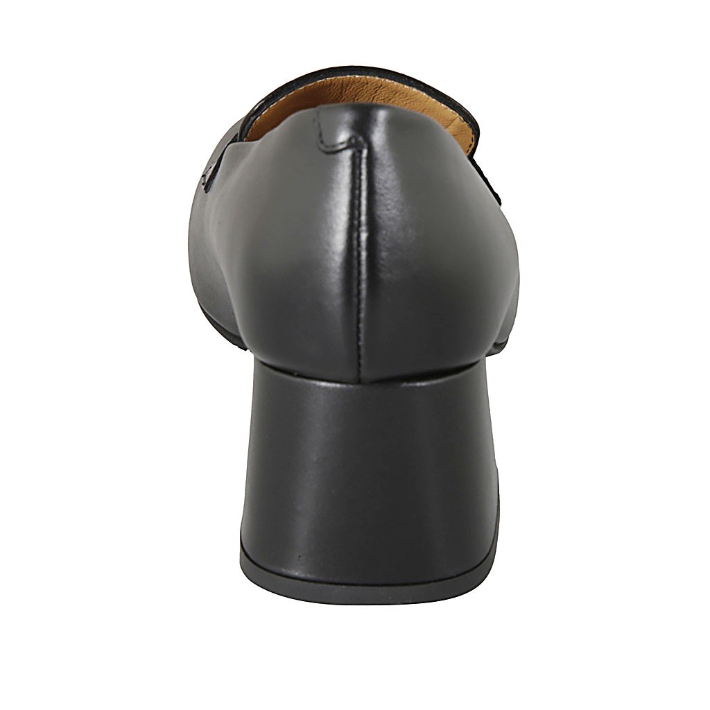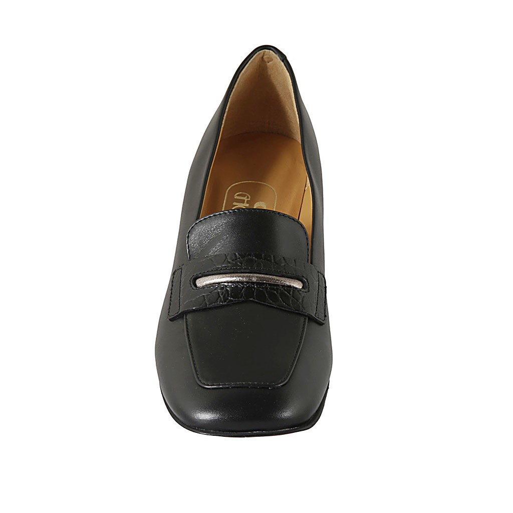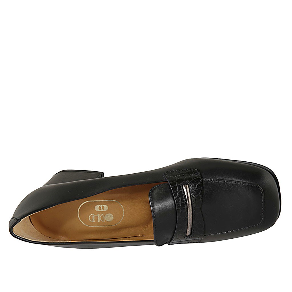 Damenmokassin aus schwarzem Leder und bedrucktem Leder Absatz 5
