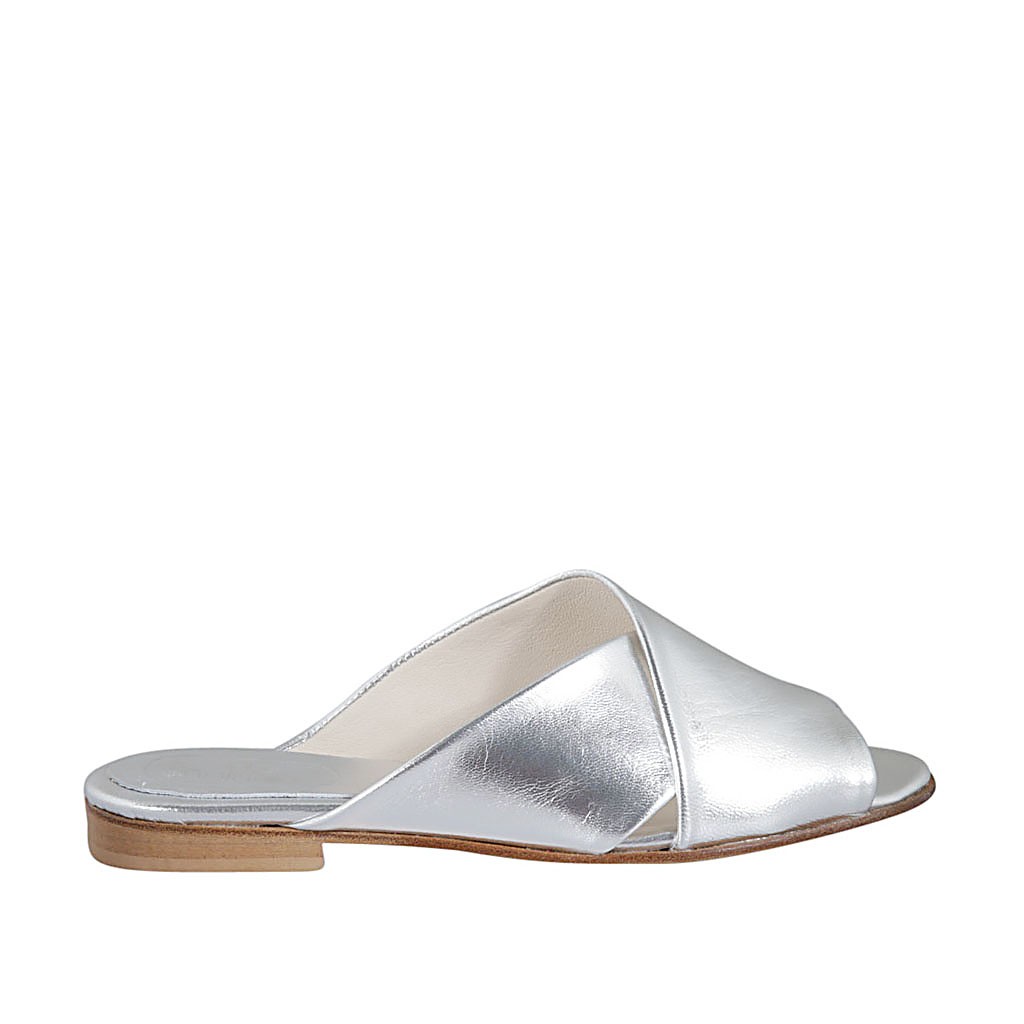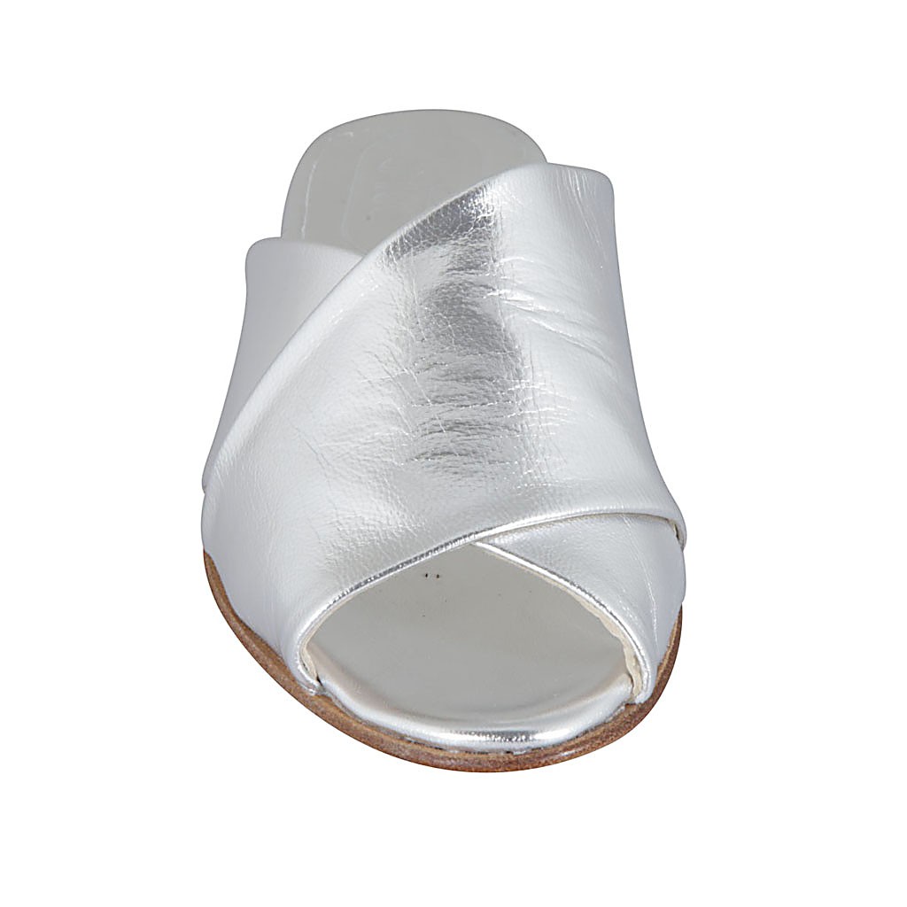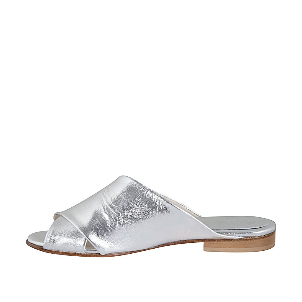 Offene Damenpantoletten aus silbernem laminiertem Leder Absatz 1