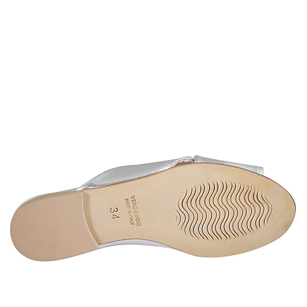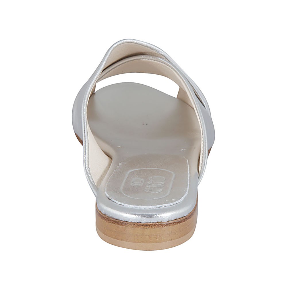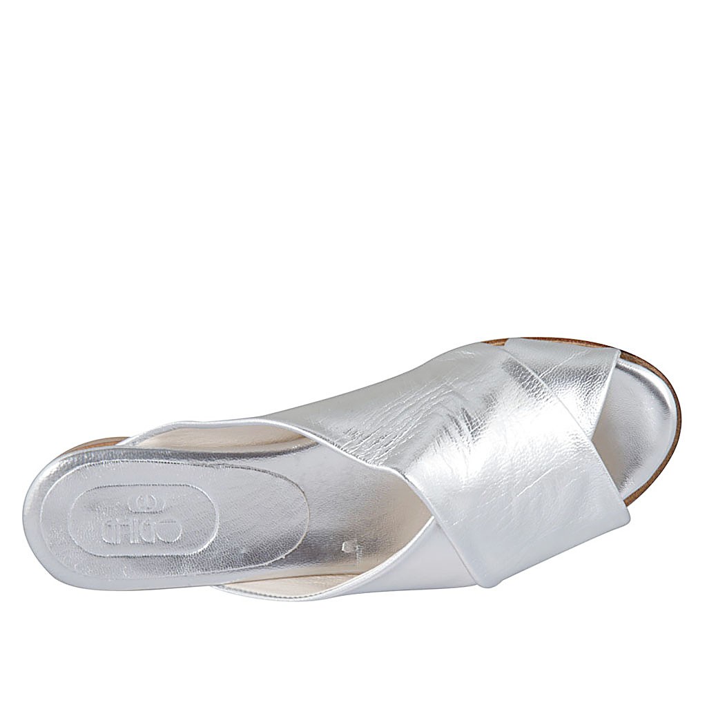 Offene Damenpantoletten aus silbernem laminiertem Leder Absatz 1