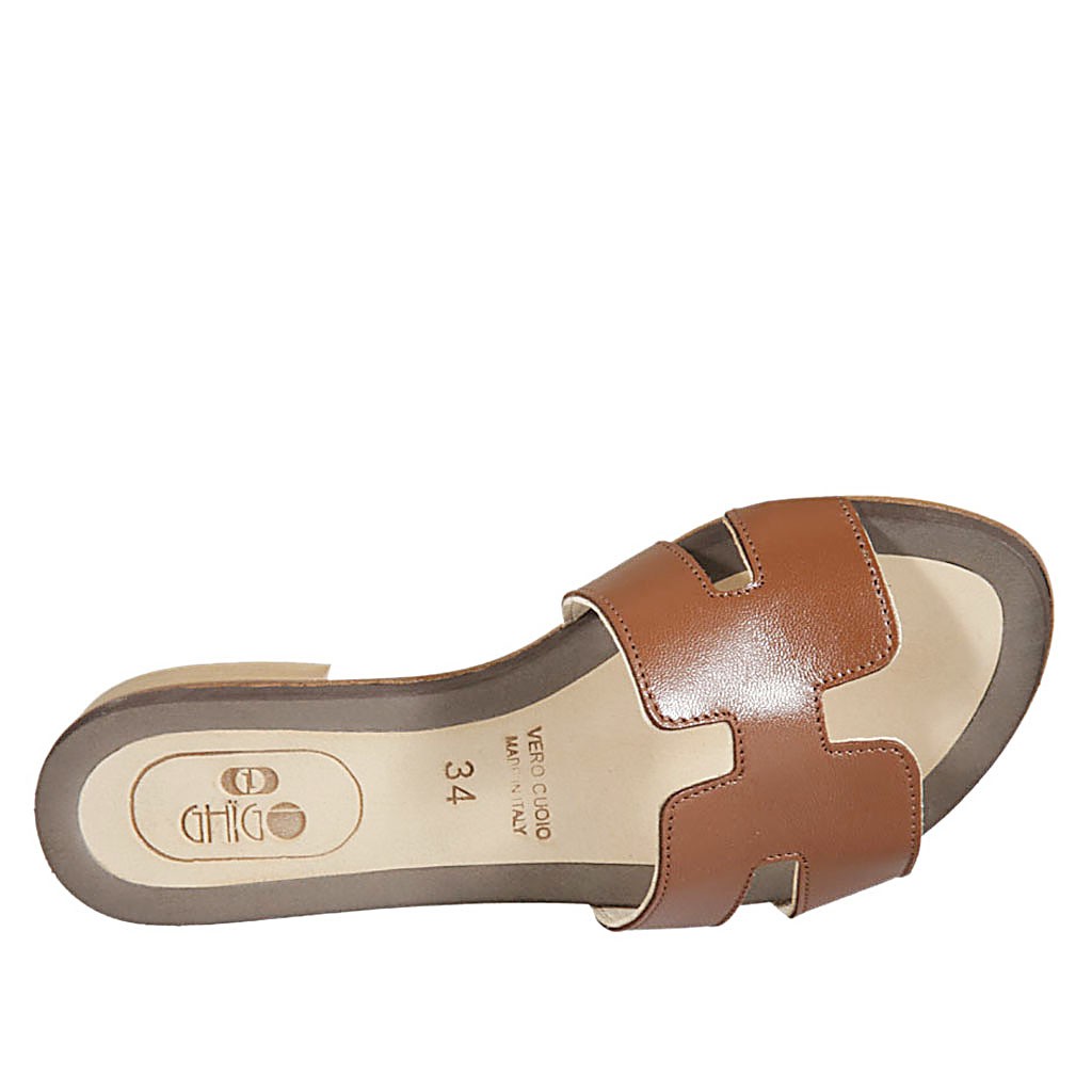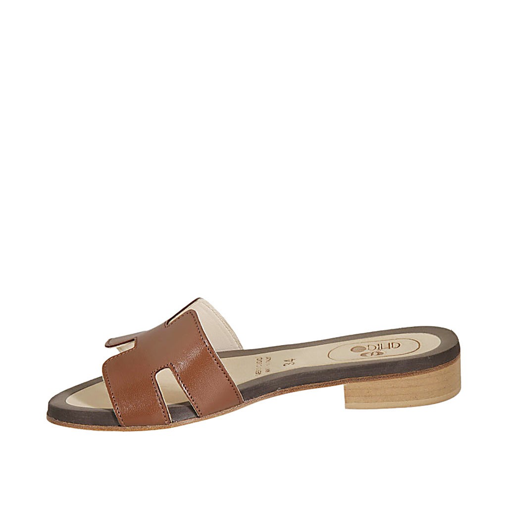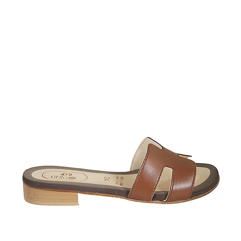 Damenpantolette aus hellbraunem Leder Absatz 2