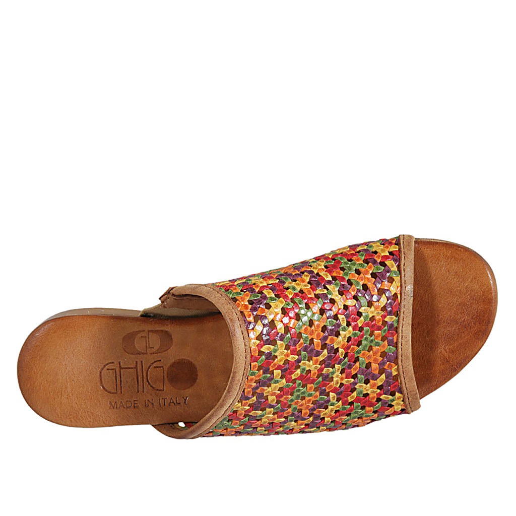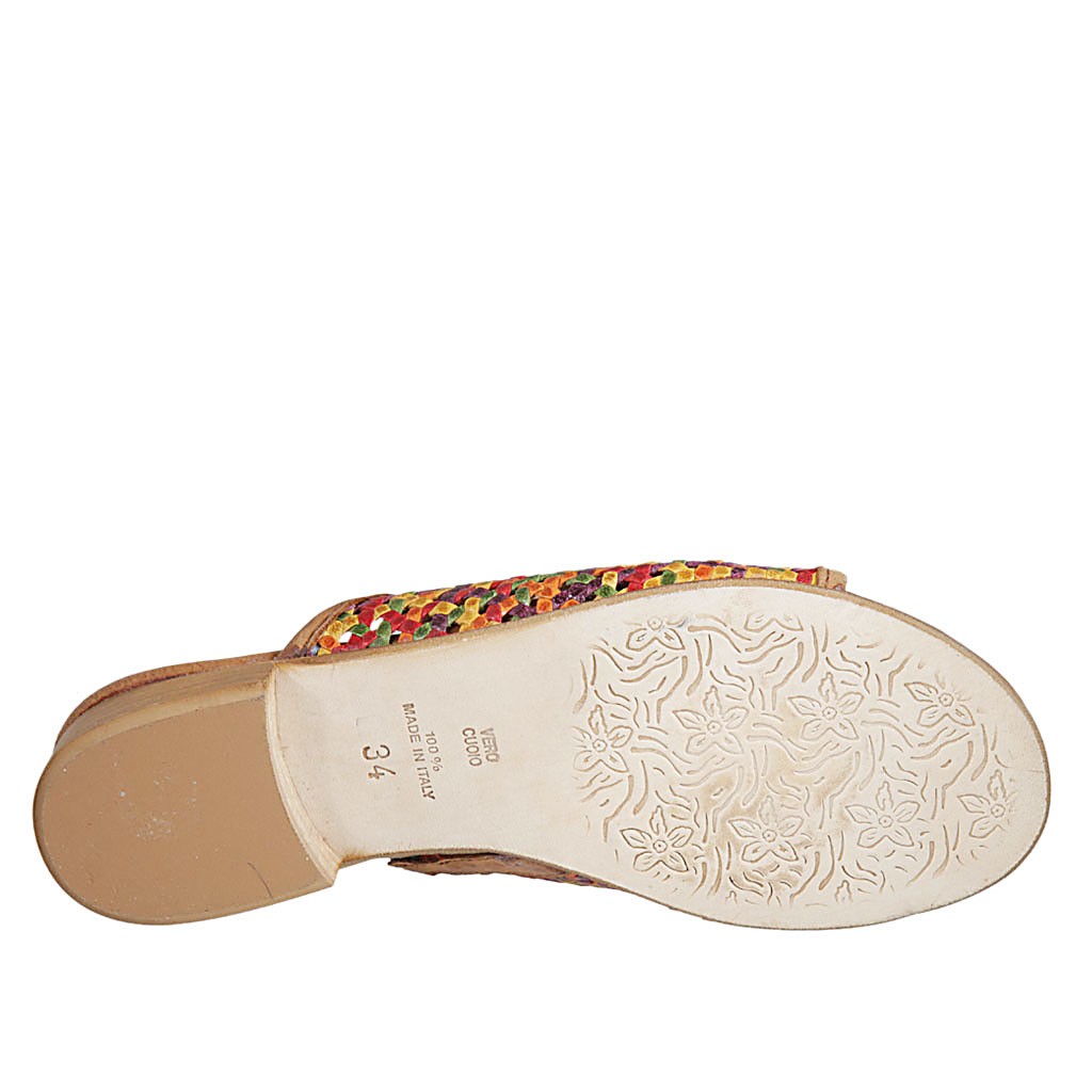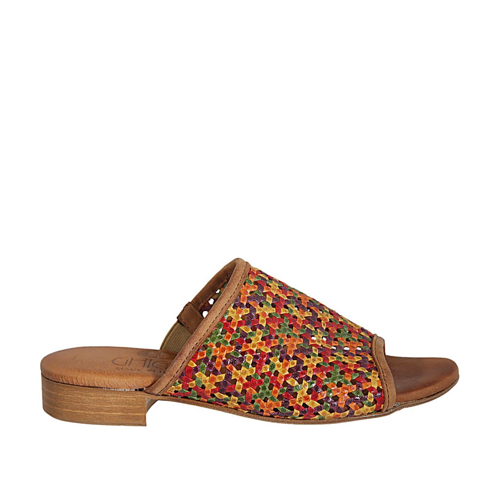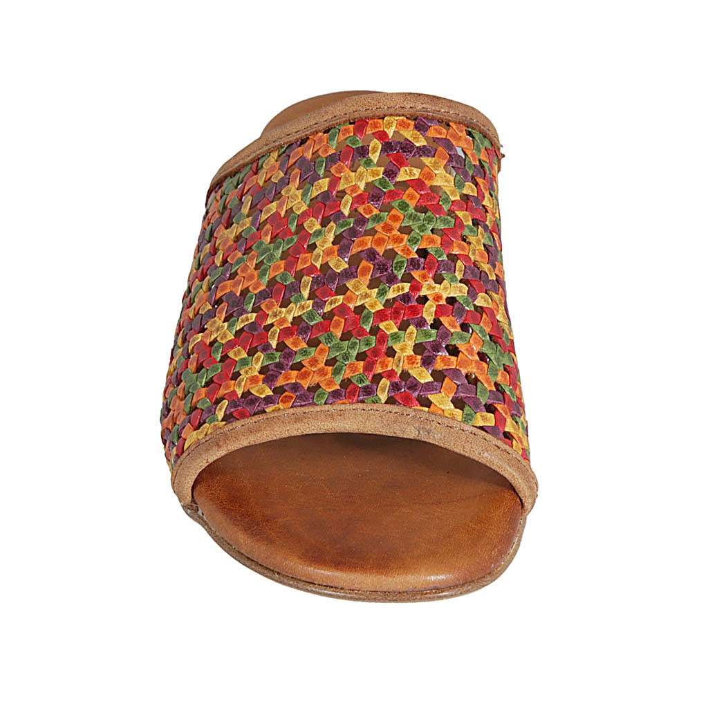 Damenpantolette mit Gummiband aus buntem geflochtenem Leder Absatz 2