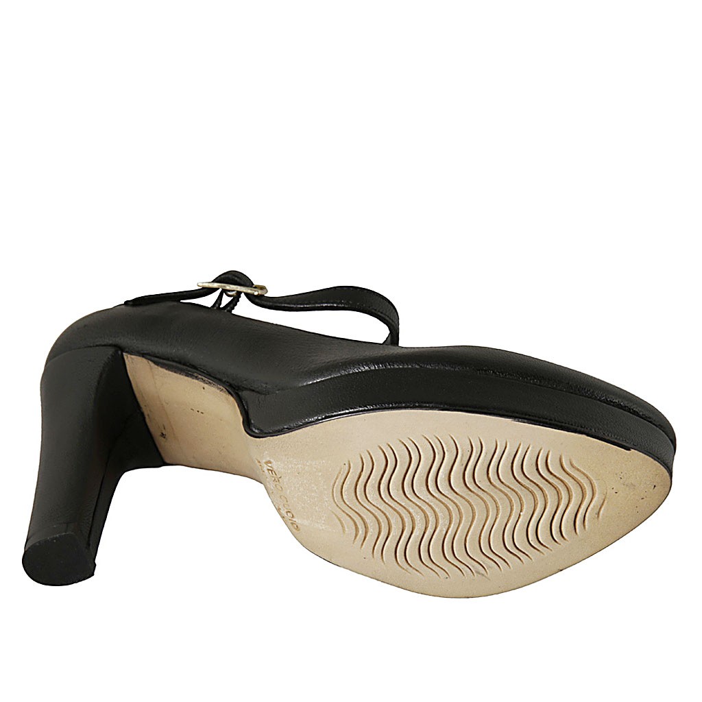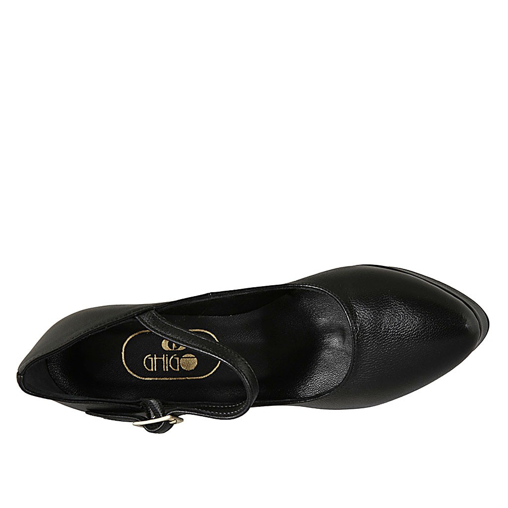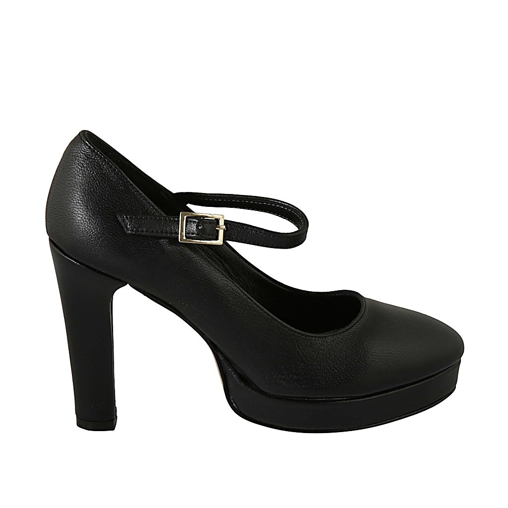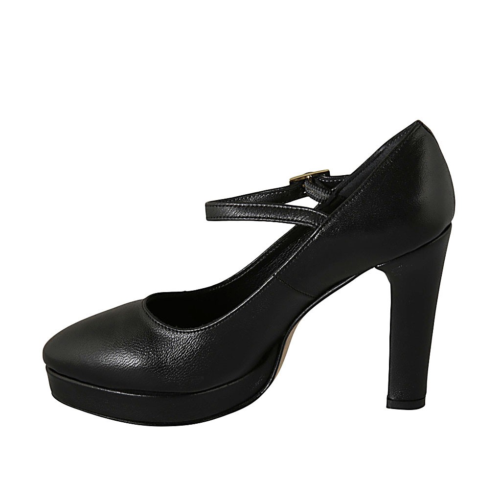 Spitzer Damenpump mit Riem und Plateau aus schwarzem Leder mit Absatz 10