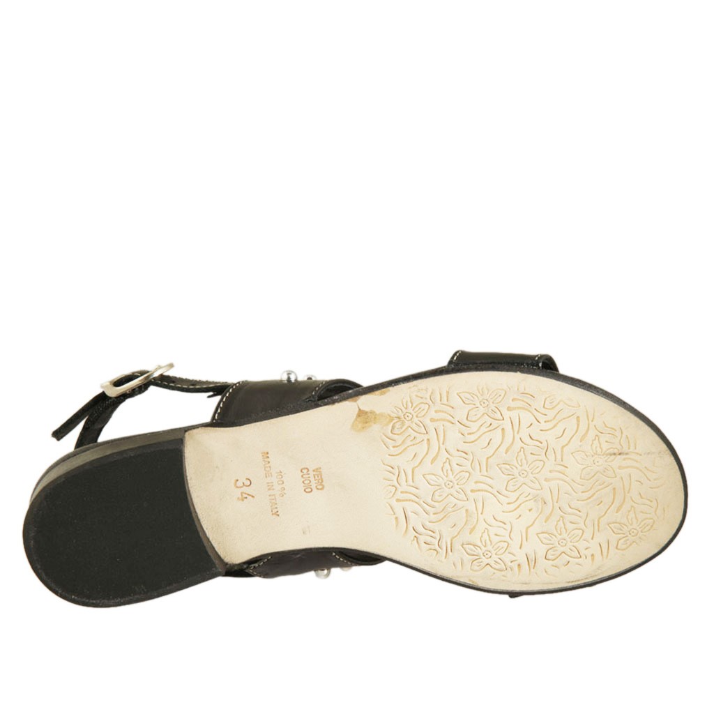 Damensandale mit Nieten aus schwarzem Leder Absatz 2