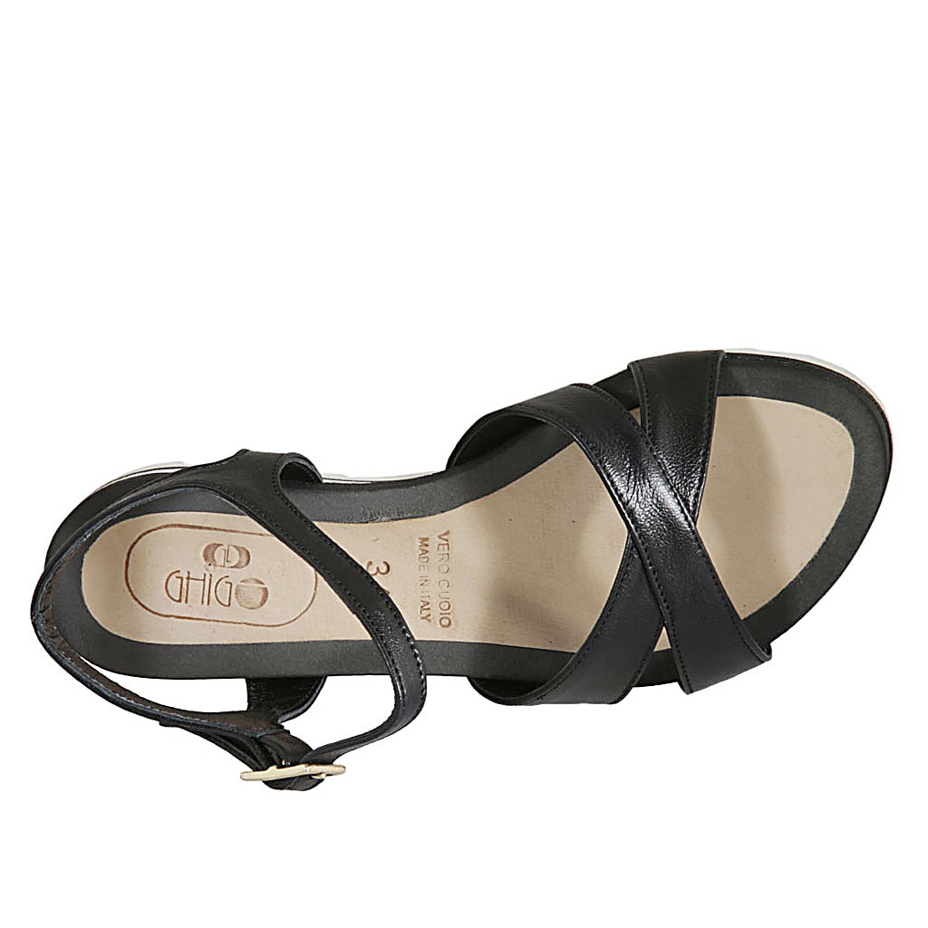 Damenriemsandale aus schwarzem Leder Keilabsatz 2