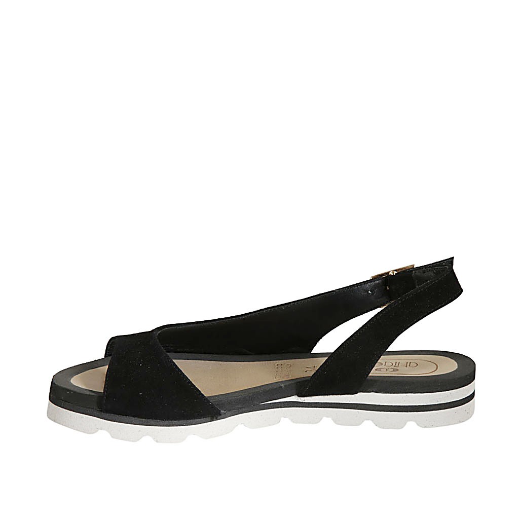 Damensandale aus schwarzem Wildleder Keilabsatz 2