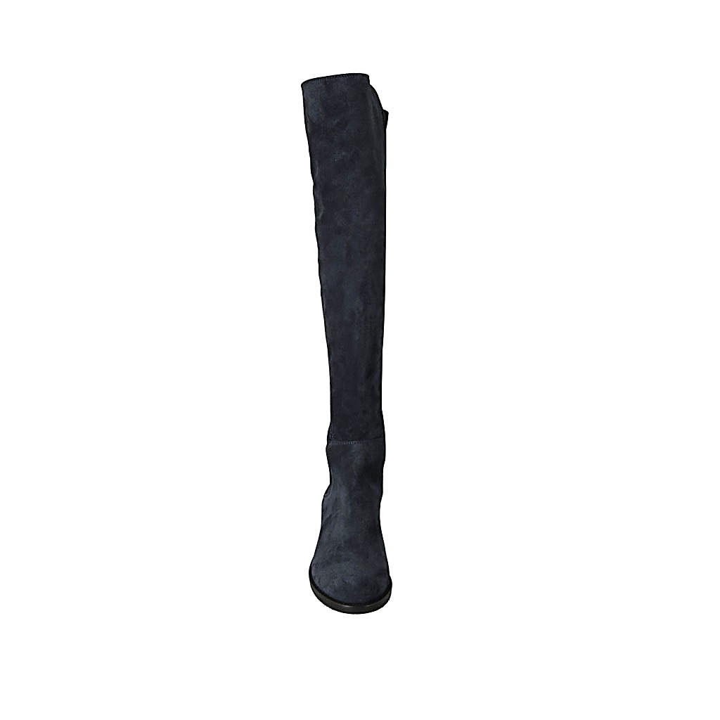 Damenstiefel aus blauem Wildleder und elastischem Material Absatz 3